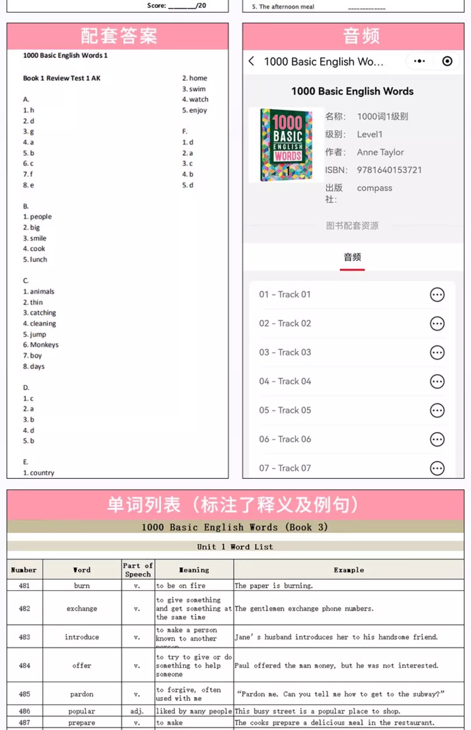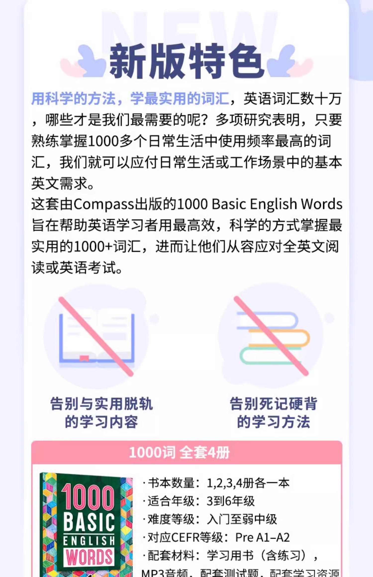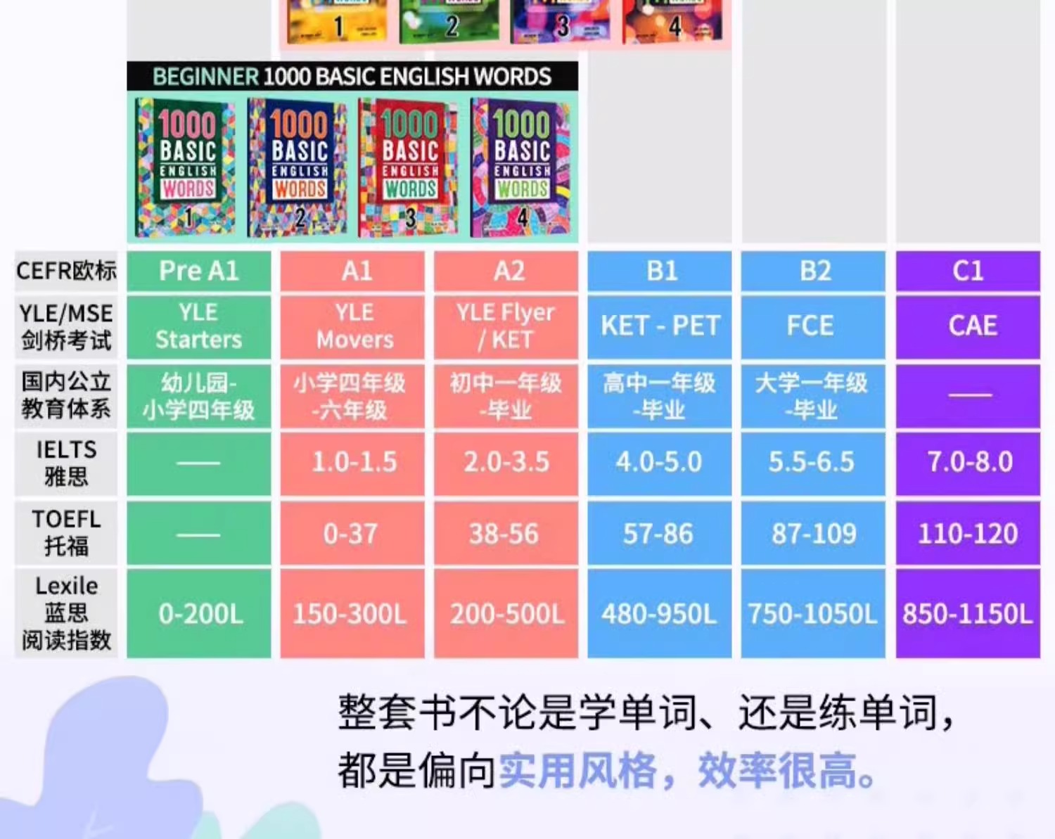 【书】原版 1000Basic English Words 1-4级 小学英语核心词汇1000词