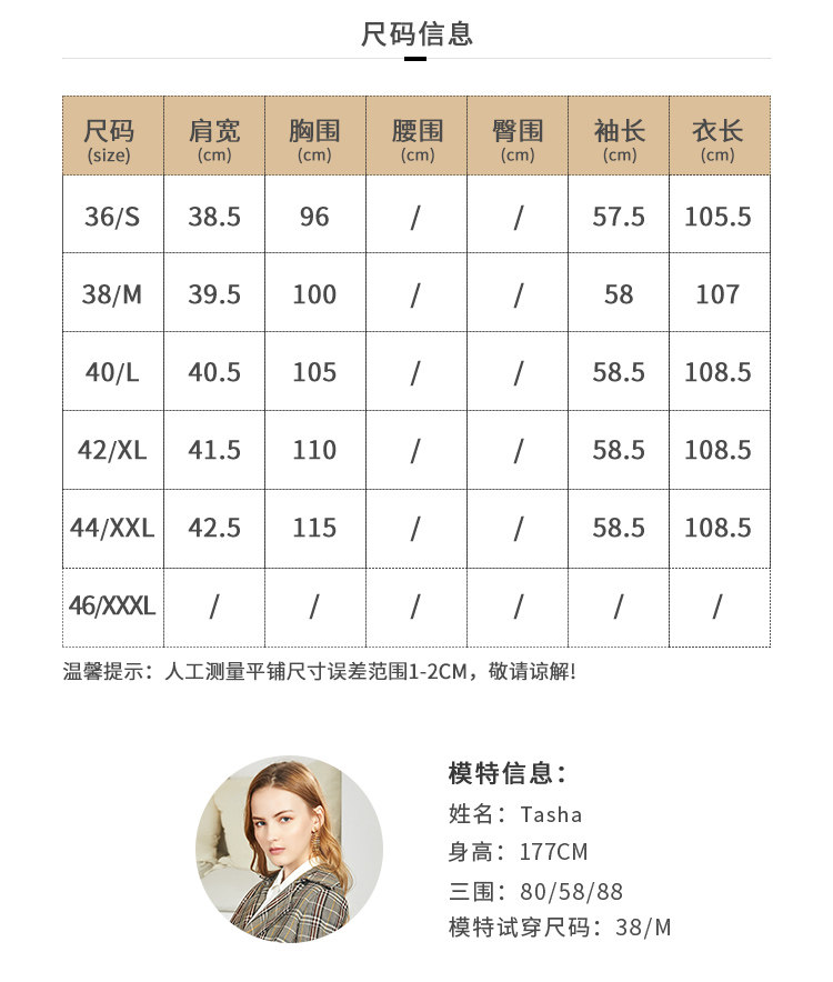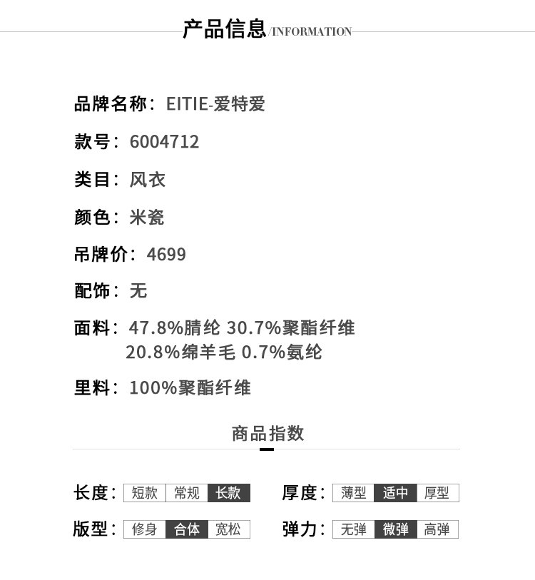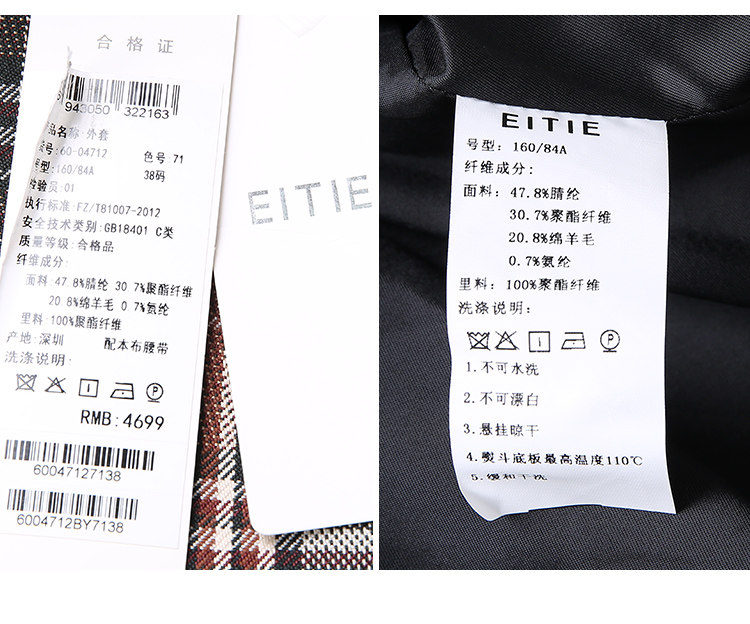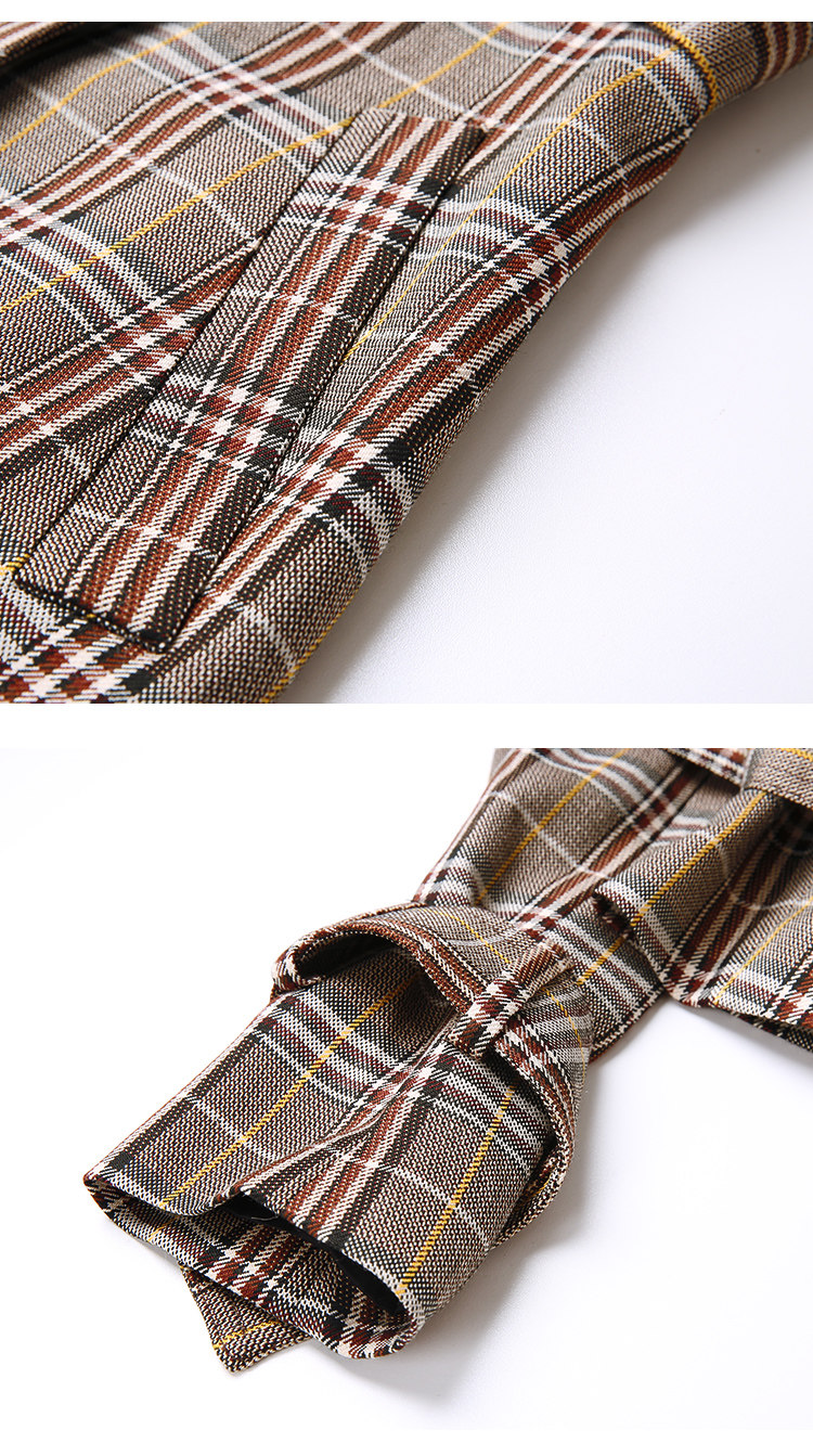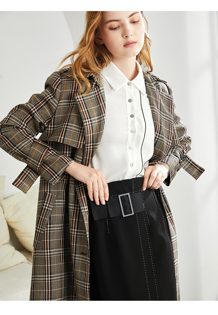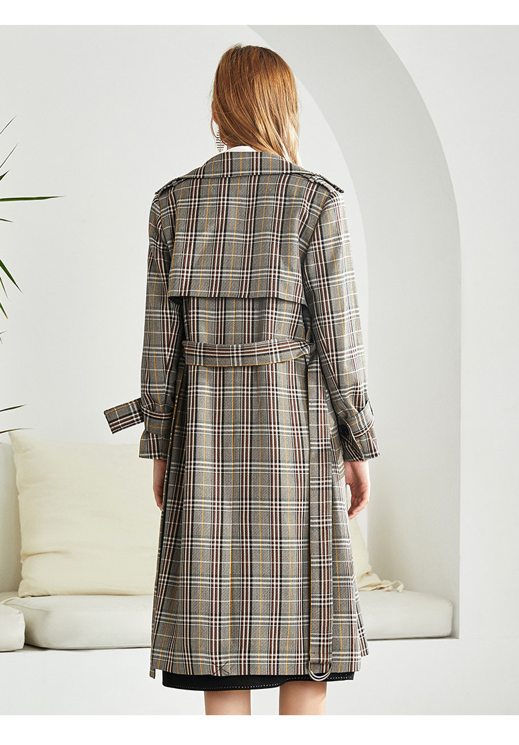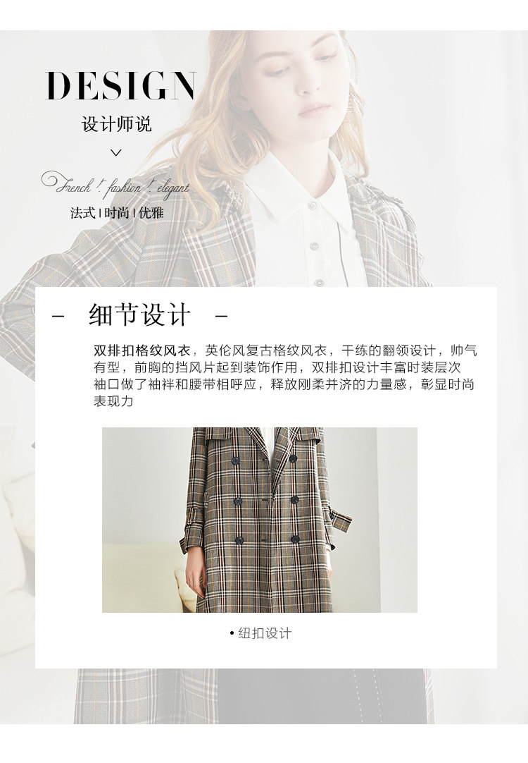 EITIE爱特爱秋季新款时尚洋气复古英伦格纹双排扣风衣外套女6004712