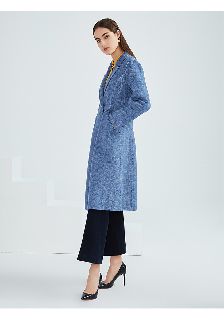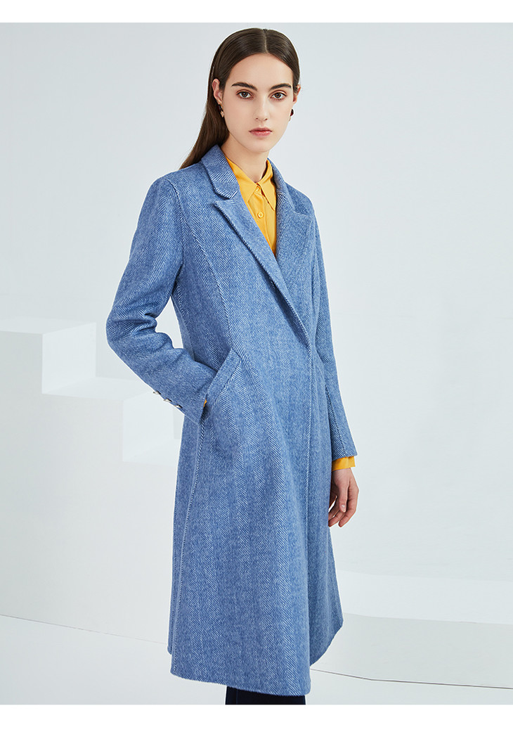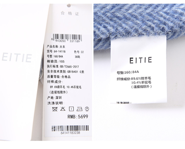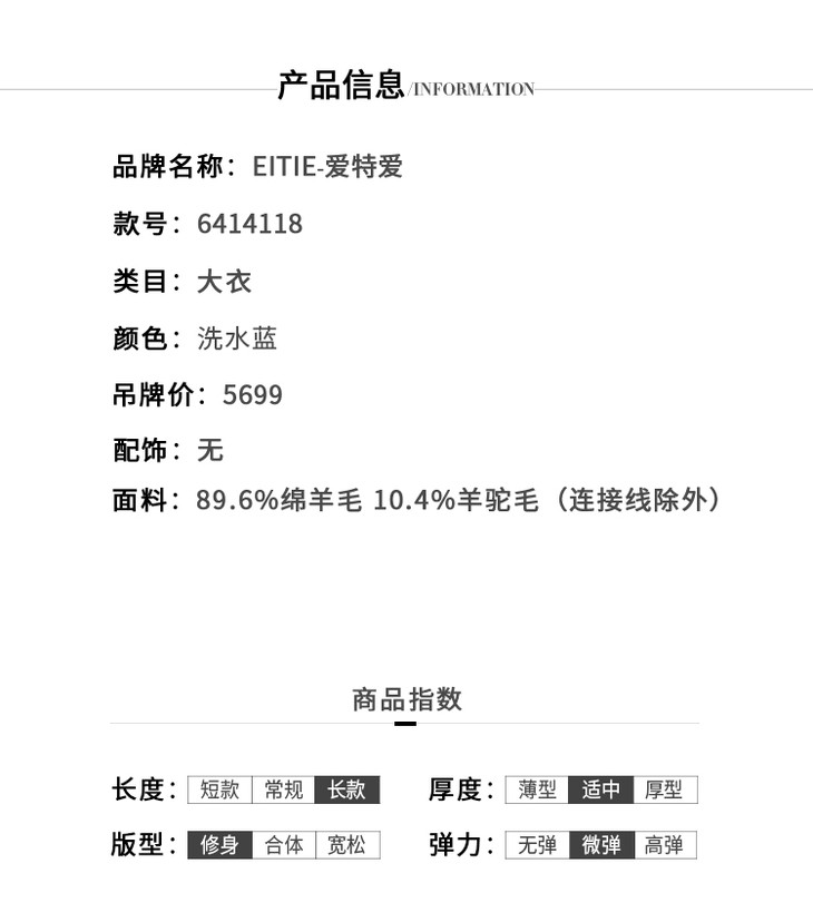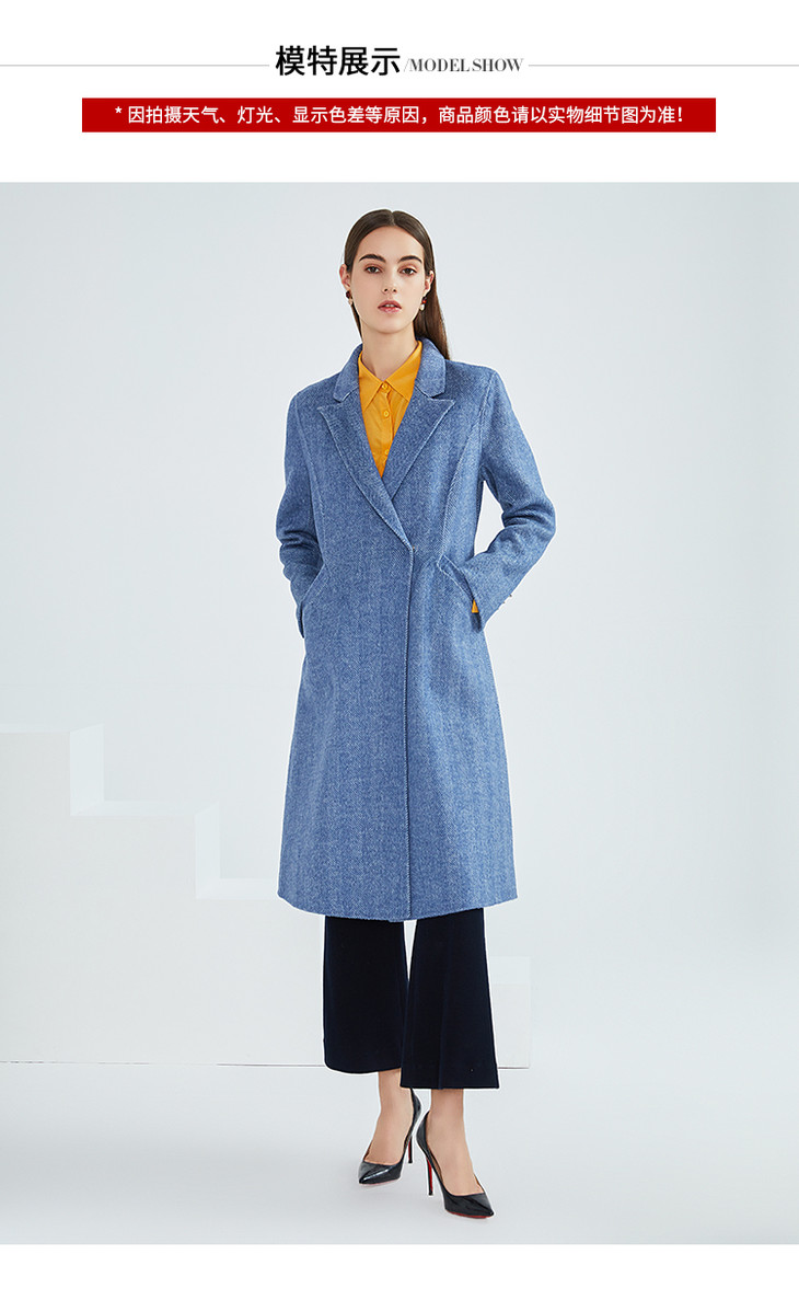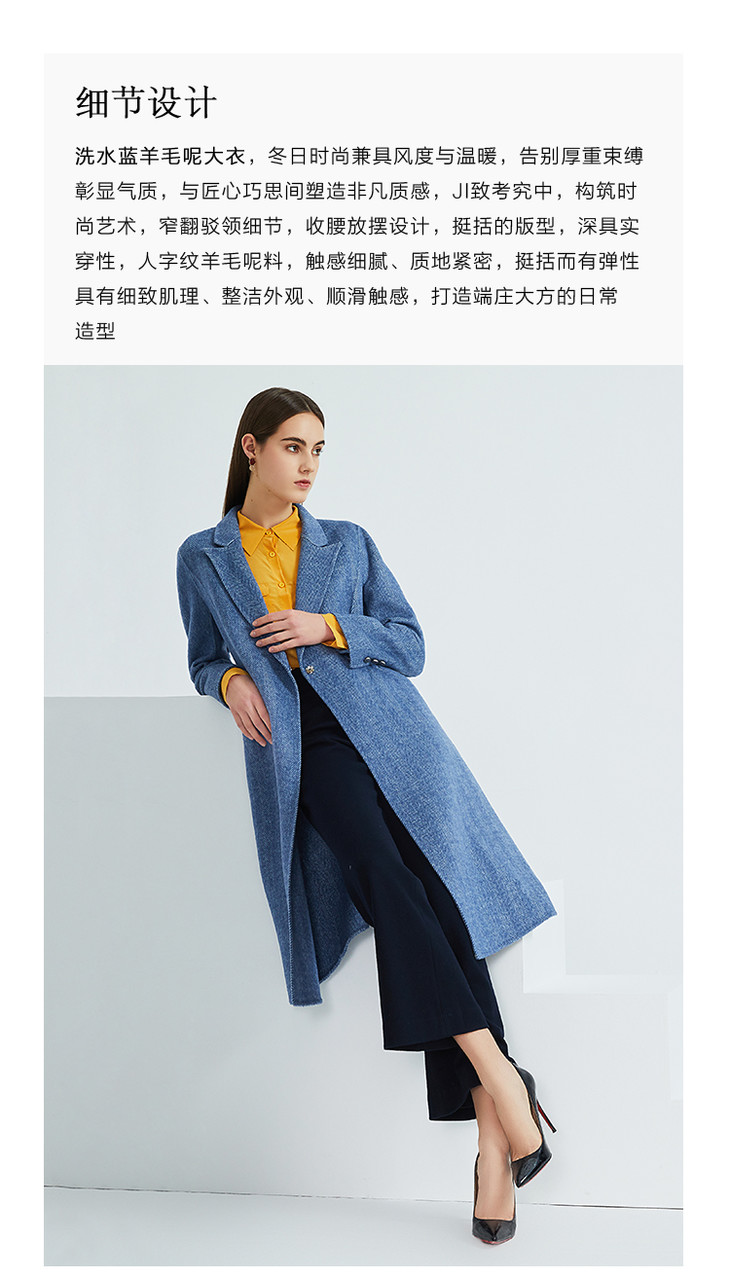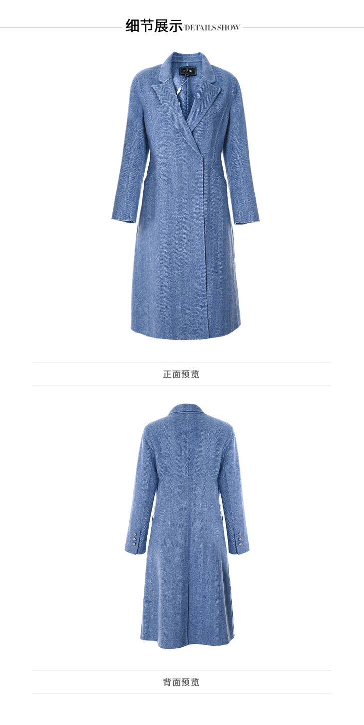 EITIE爱特爱冬季新款经典气质翻领收腰显瘦羊毛呢大衣外套女6414118