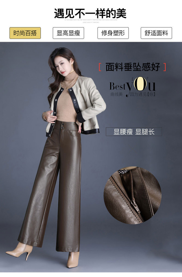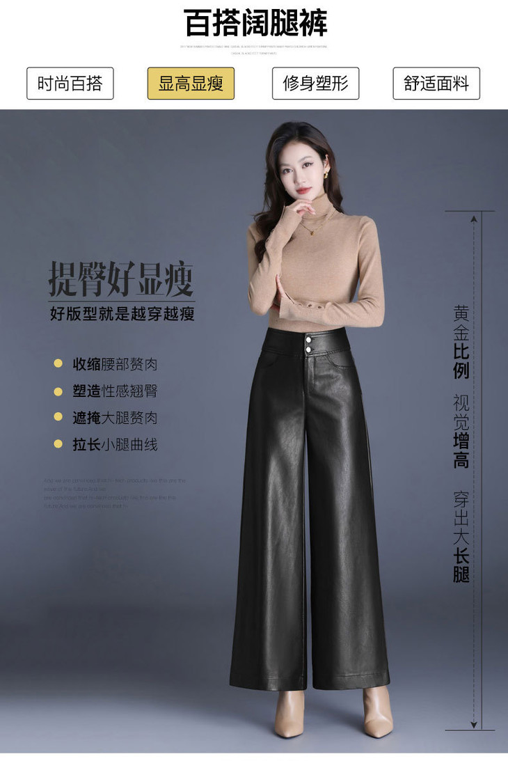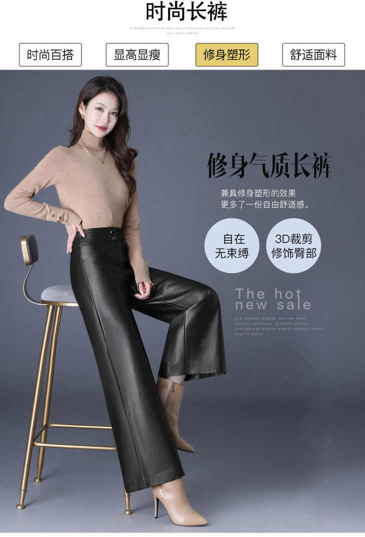 时尚皮裤气质阔脚,大脚阔腿裤妈妈长裤 QQ1711