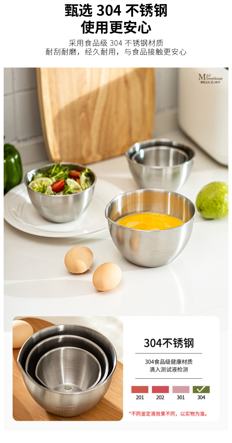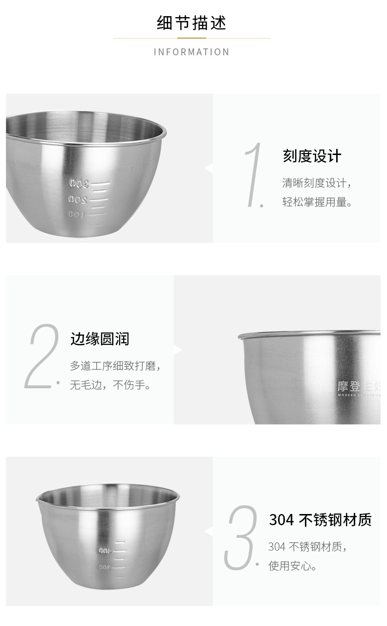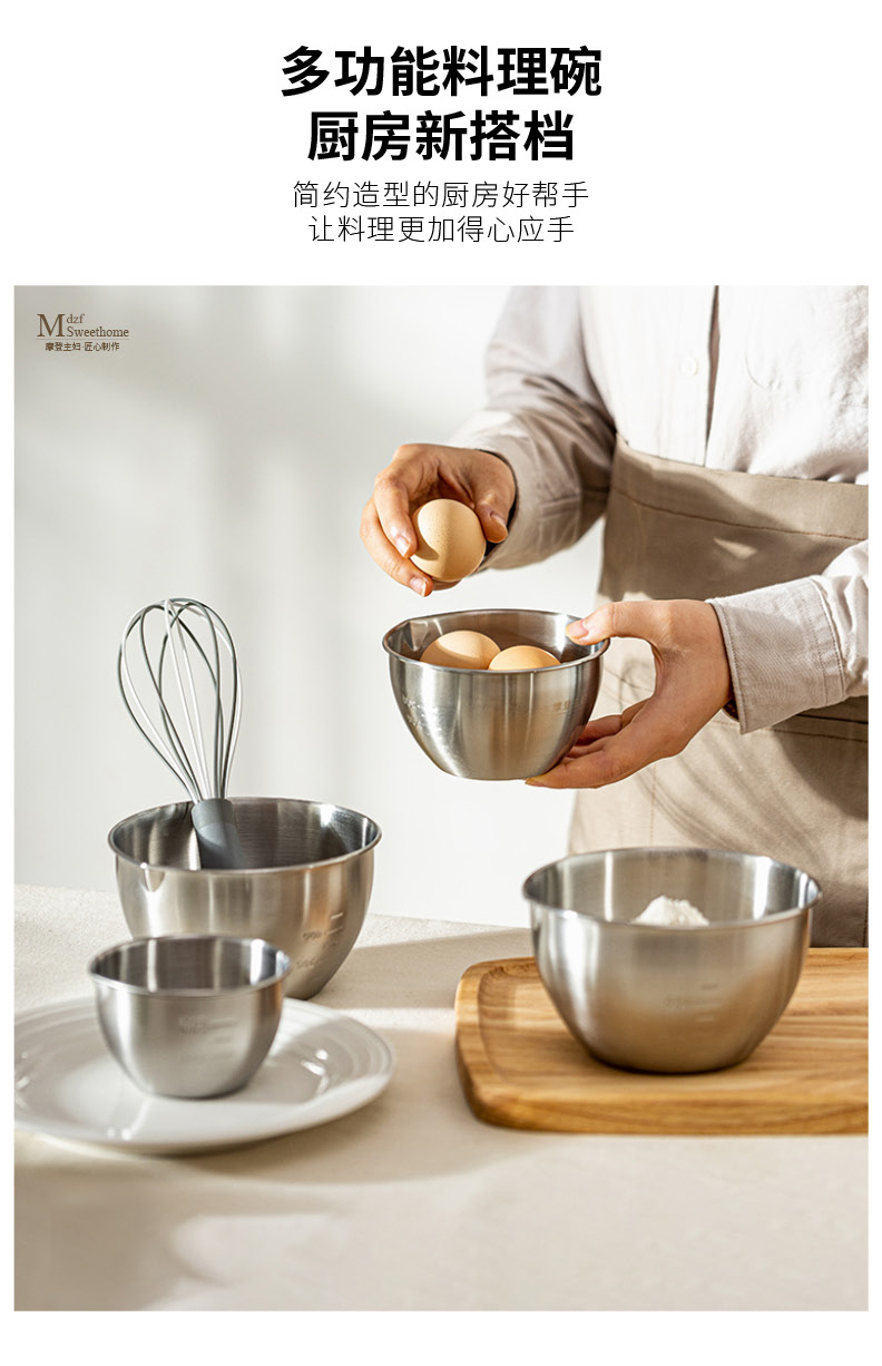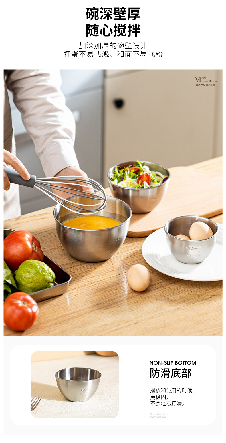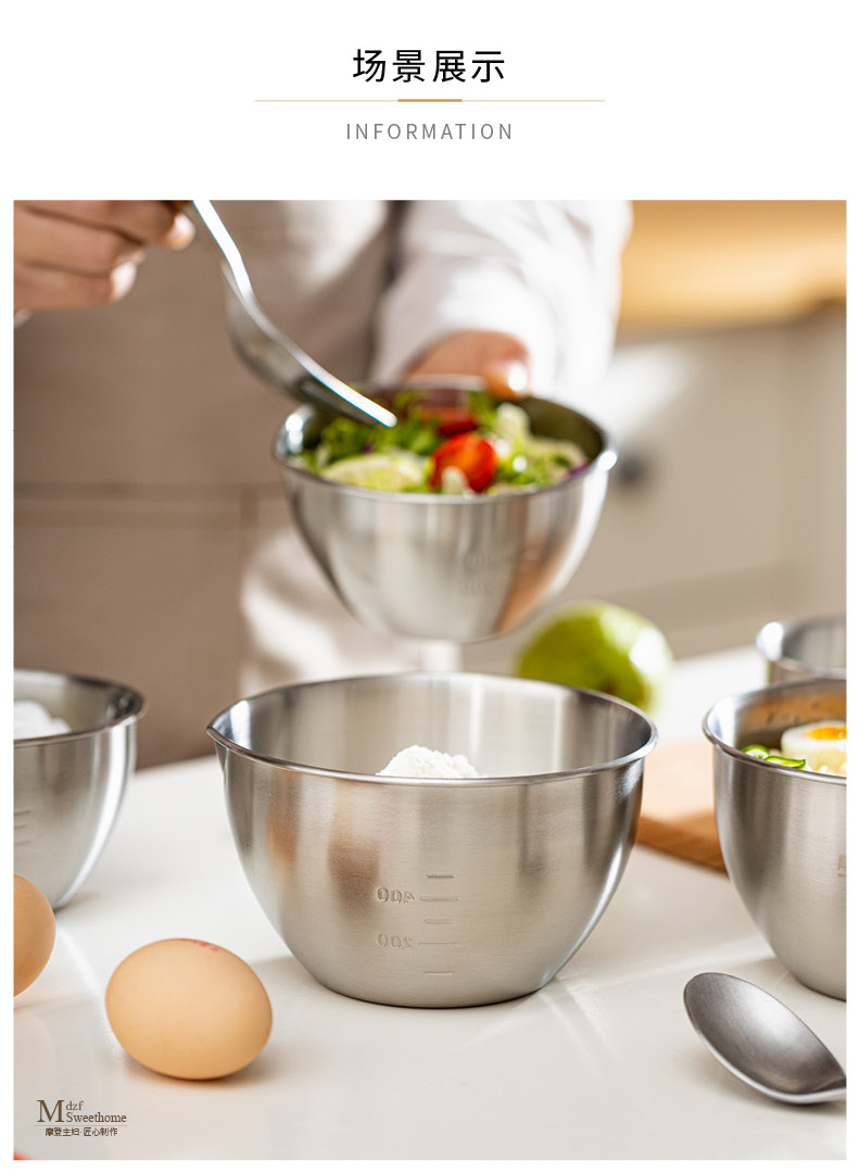 摩登主妇304不锈钢料理碗带刻度厨房和面打蛋碗烘焙碗备菜沙拉碗