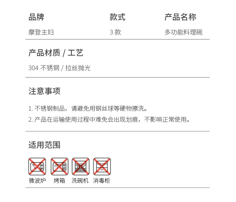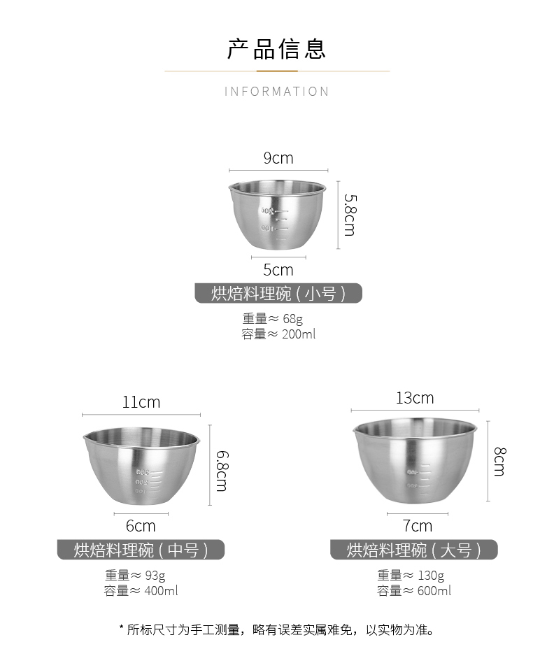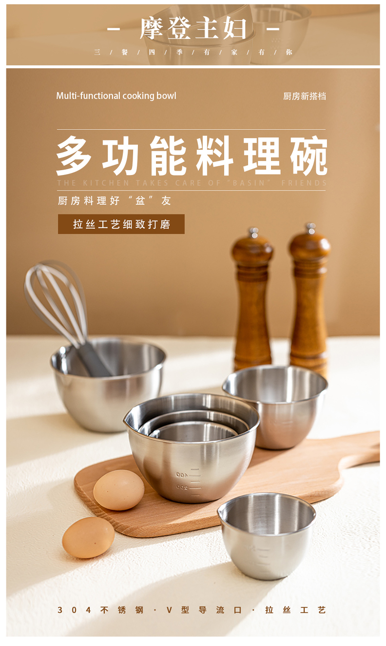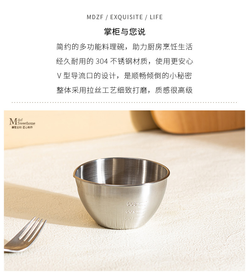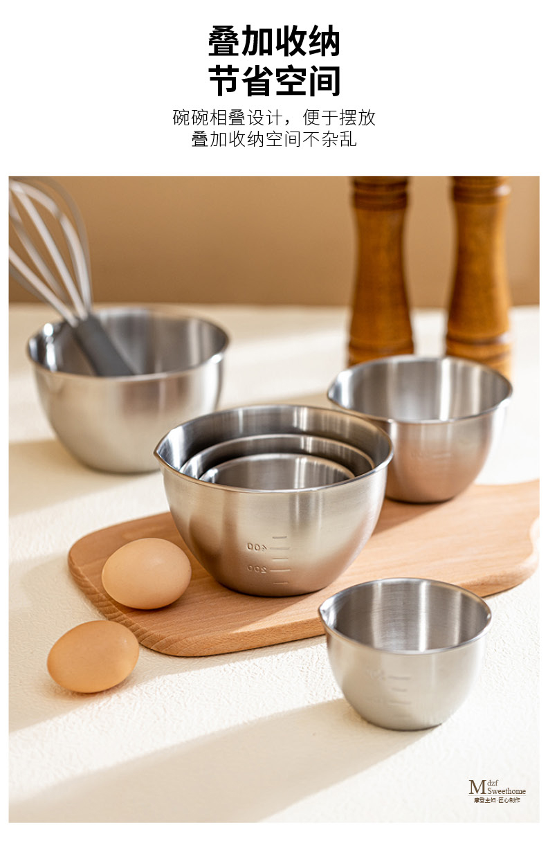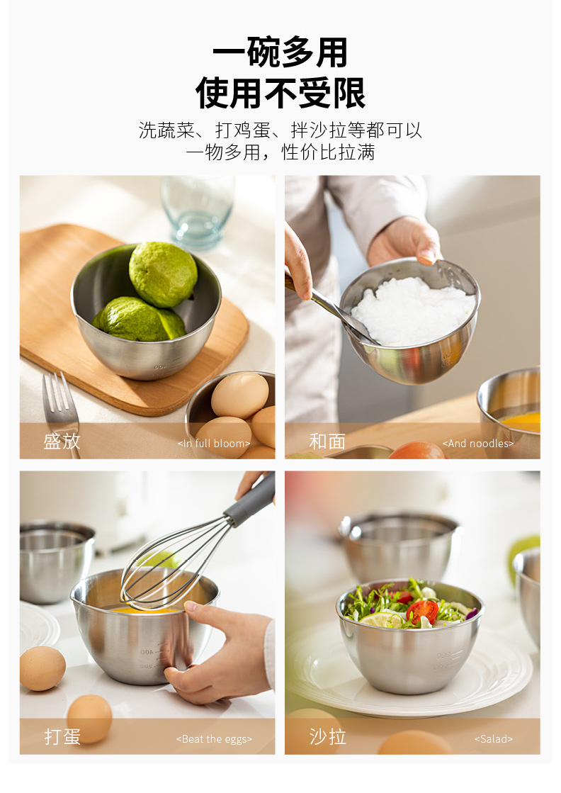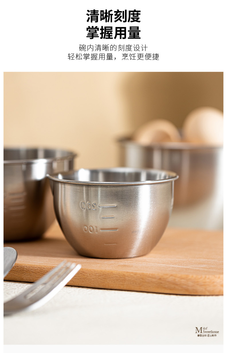 摩登主妇304不锈钢料理碗带刻度厨房和面打蛋碗烘焙碗备菜沙拉碗