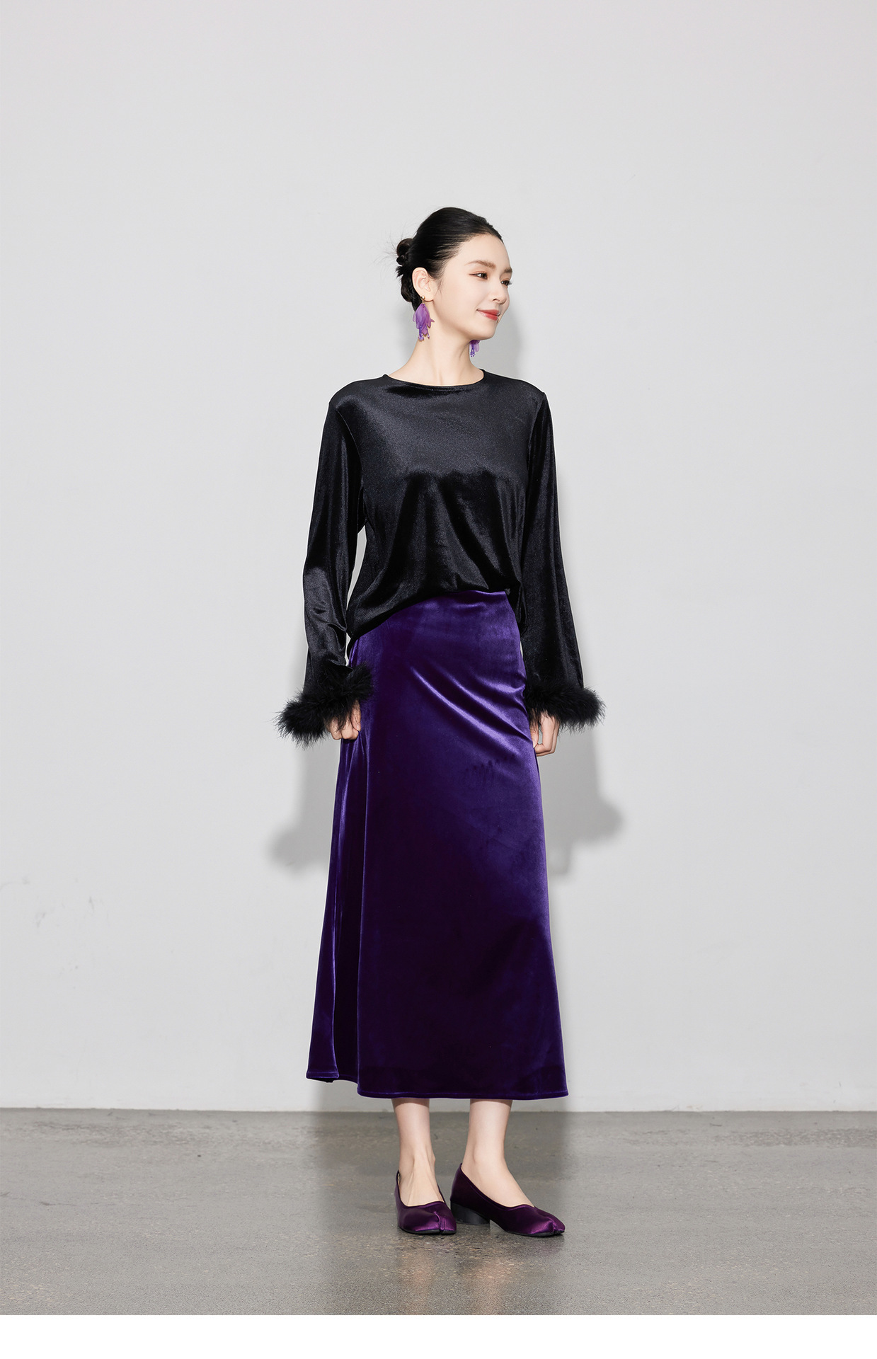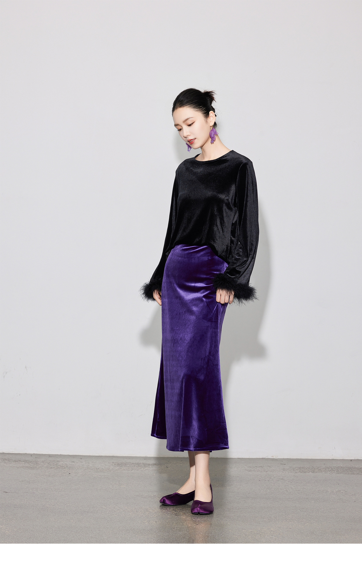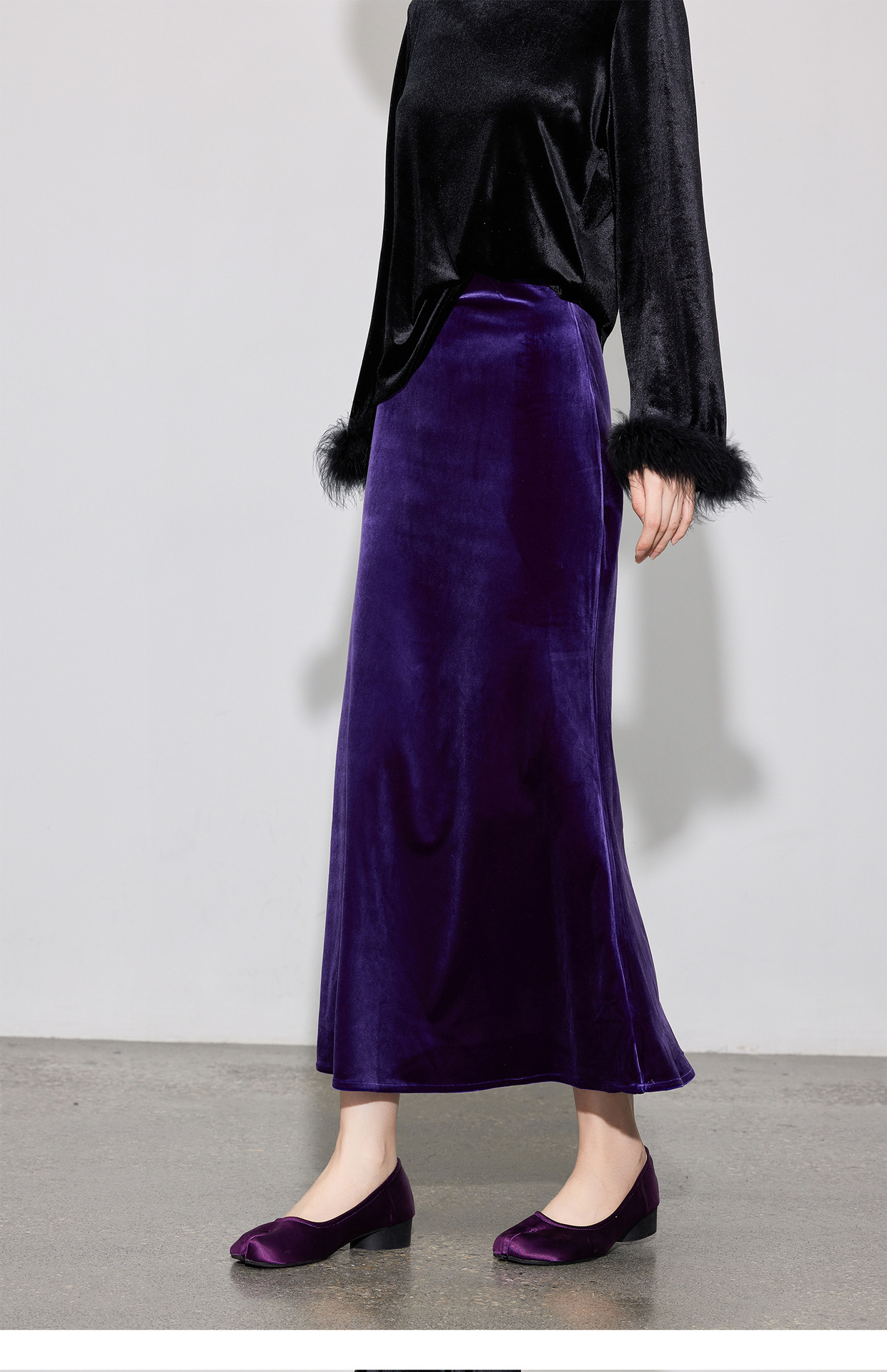 丁摩 春秋新款松紧高腰丝绒半身裙复古修身a字长裙女5ZF-670