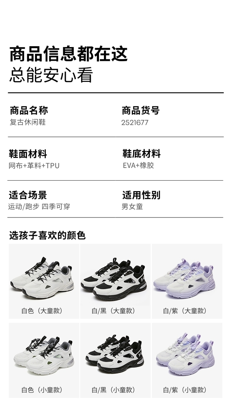 【12月-特惠福利】Under Armour安德玛儿童透气网孔镂空跑鞋2521677 超低折扣