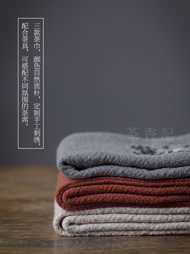 四款茶巾,颜色自然质朴,定制手工刺绣,