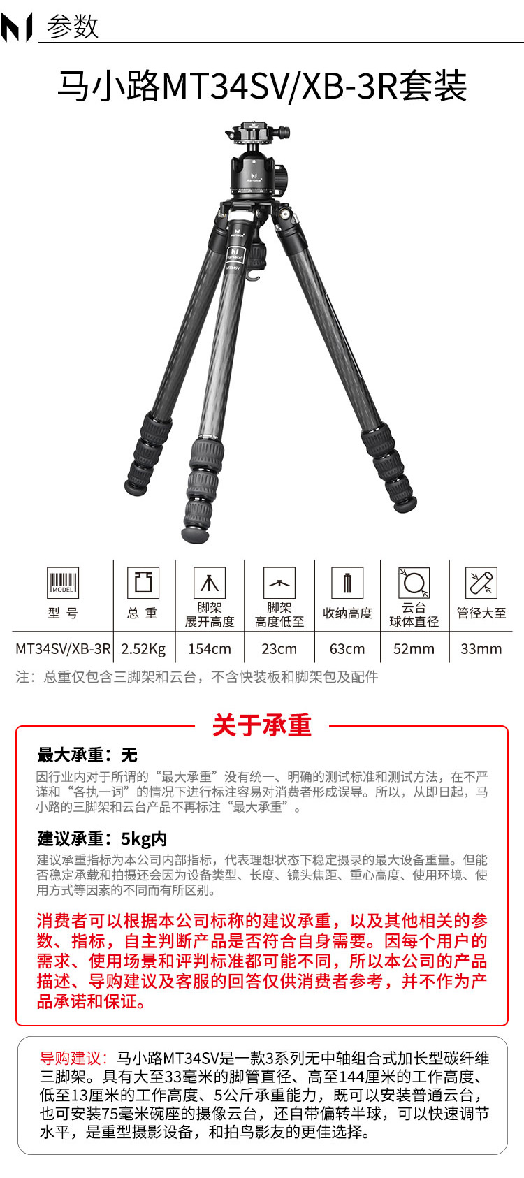 马小路Marsace MT34SV XB-3R三脚架套装摄像拍鸟 最大管径33MM