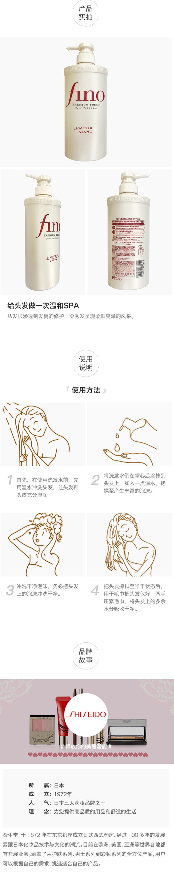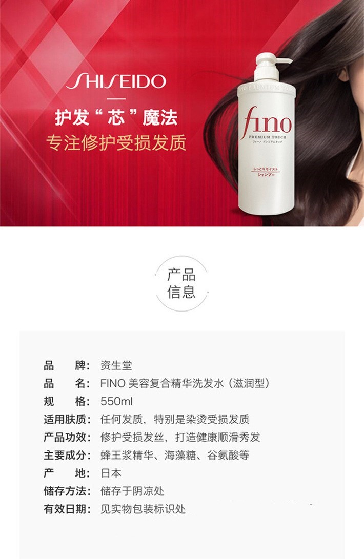 【门店直发】资生堂 Fino 复合精华洗发水/护发素(滋润型)550ml