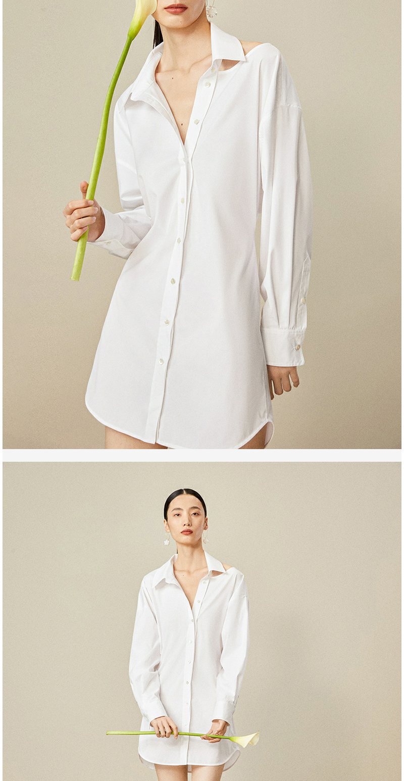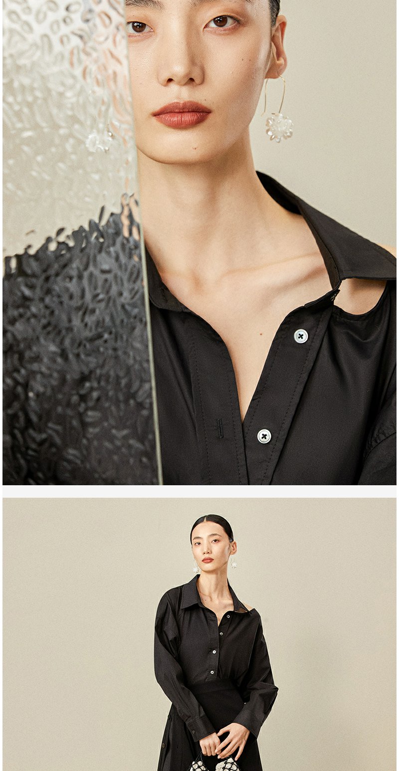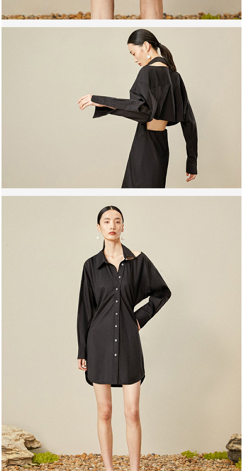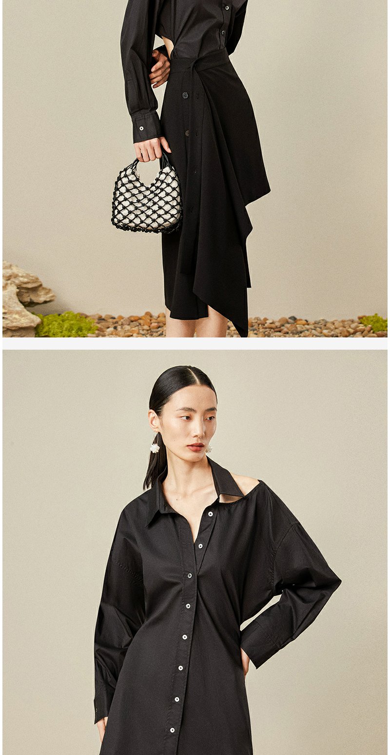 西嘉C+IMPRESS/西嘉日本进口面料 原创露肩衬衫裙中长连衣裙小众设计