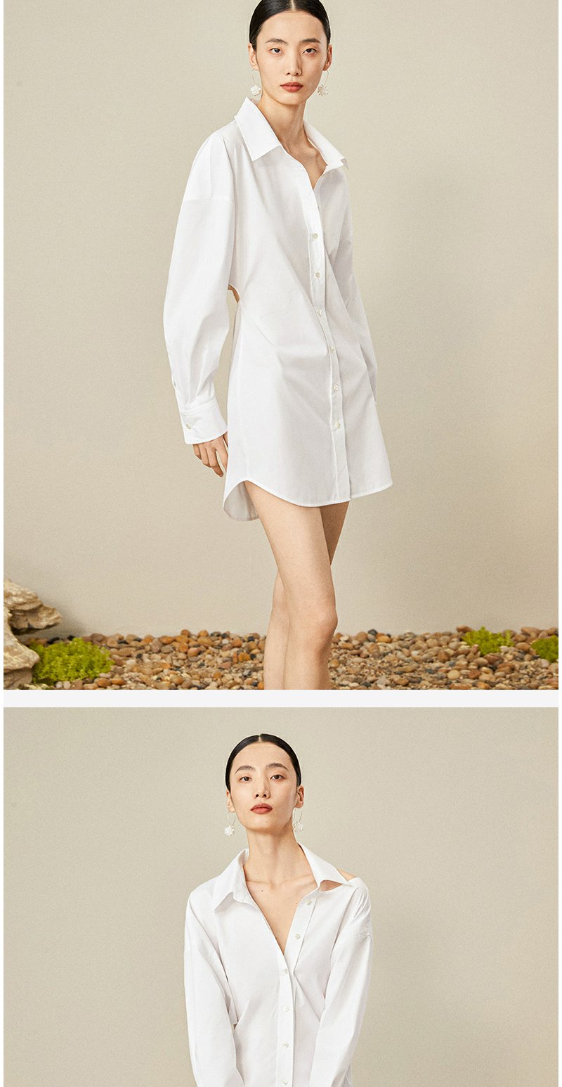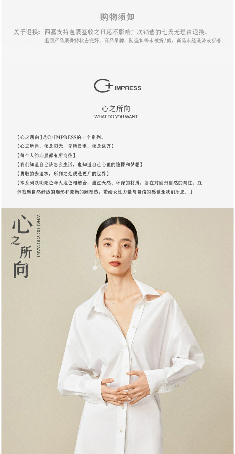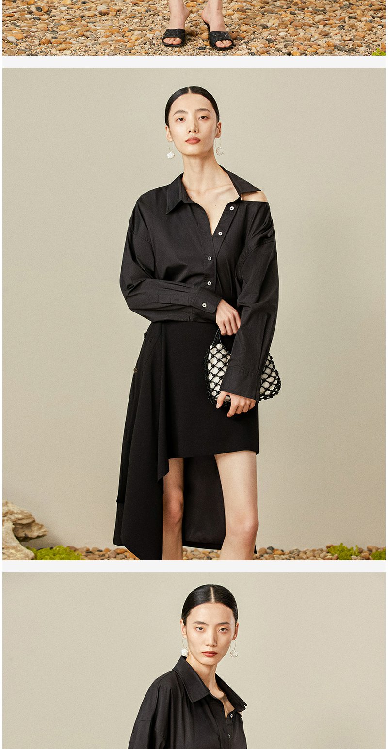 西嘉C+IMPRESS/西嘉日本进口面料 原创露肩衬衫裙中长连衣裙小众设计