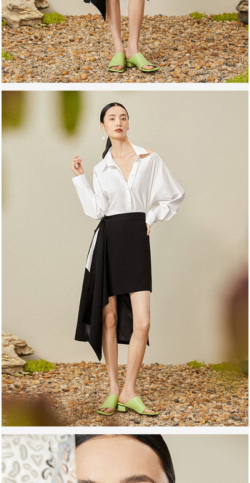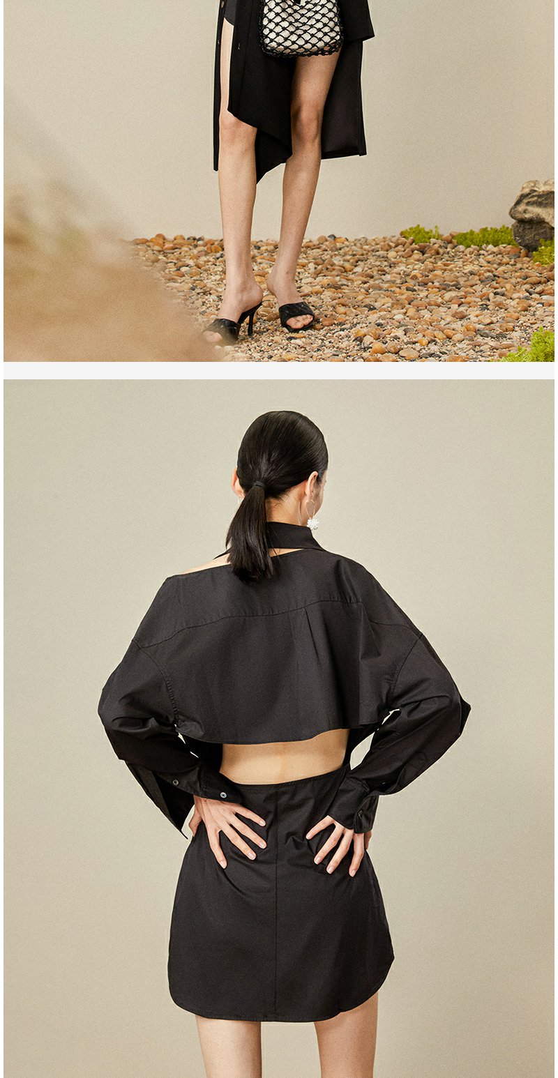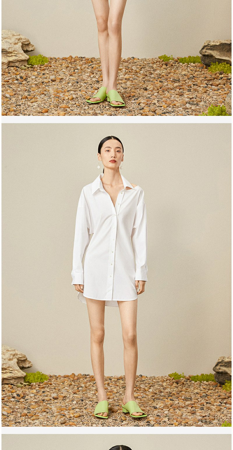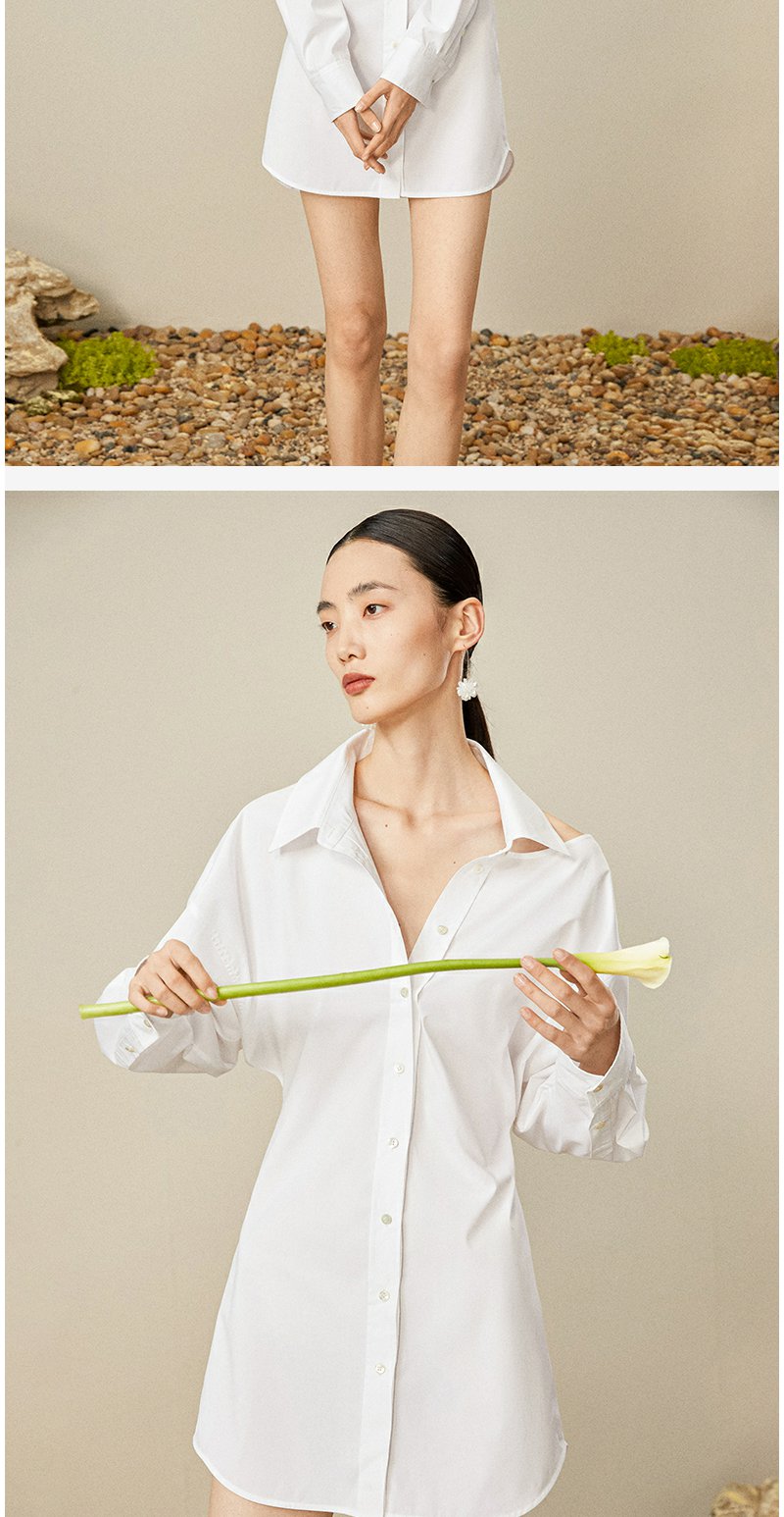 西嘉C+IMPRESS/西嘉日本进口面料 原创露肩衬衫裙中长连衣裙小众设计