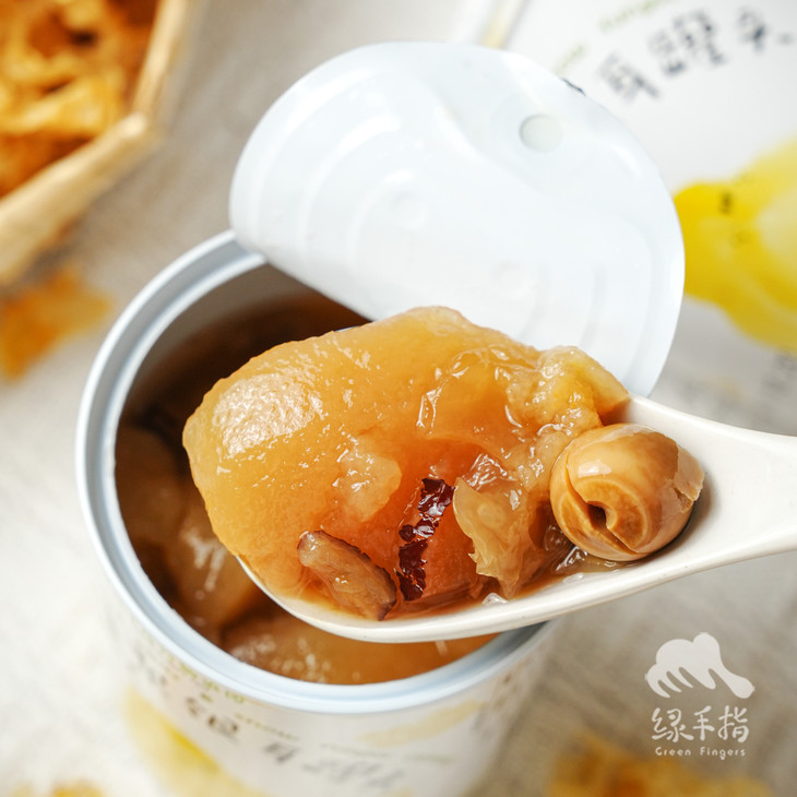 大鱼大肉吃多了也需要滋润一下,绿家自有工厂加工的烤梨银耳罐头,梨子清甜、银耳滋润,加上红枣、莲子、百合、枸杞,生态配料下足料,开罐即食,省时省力。