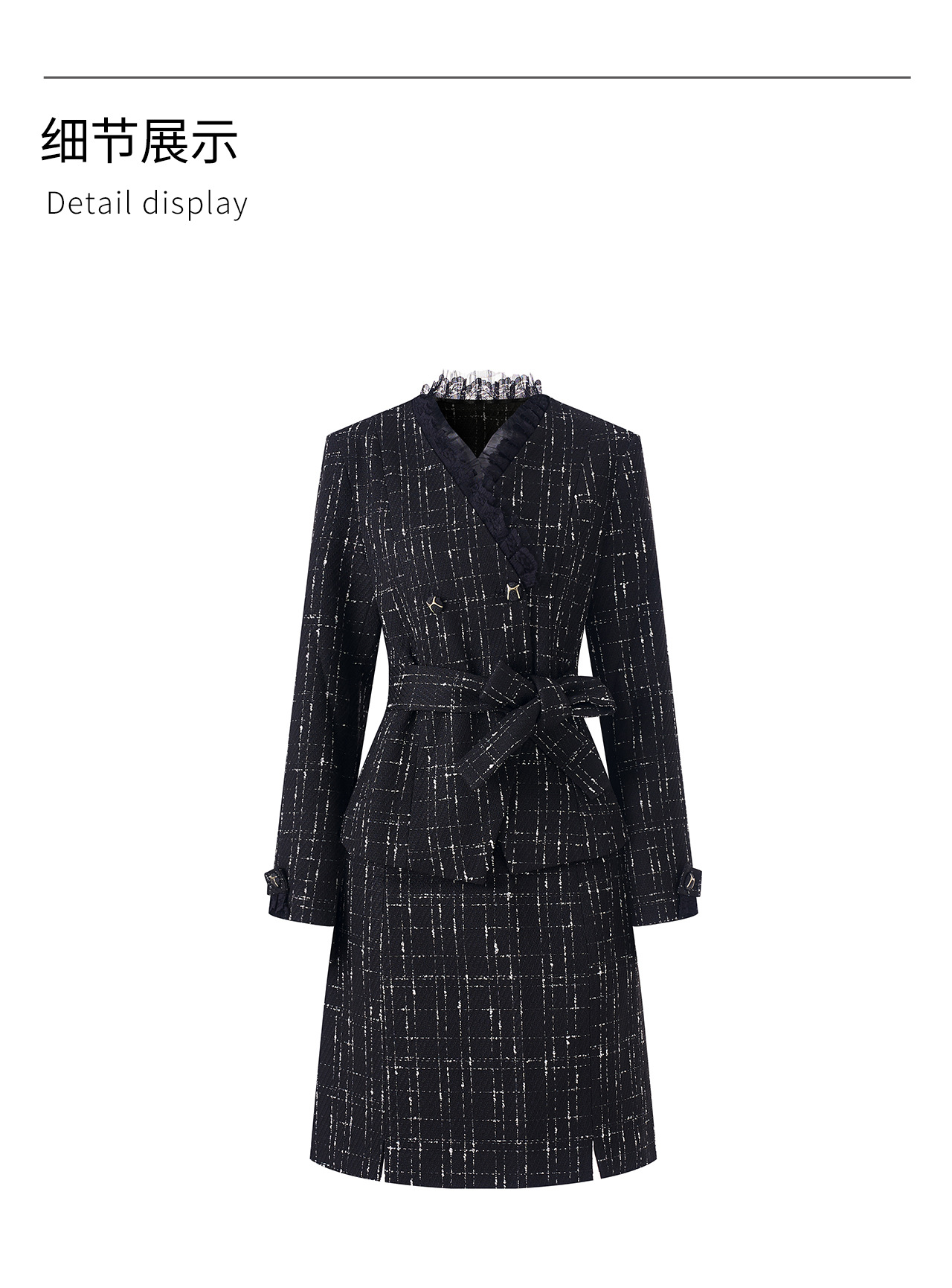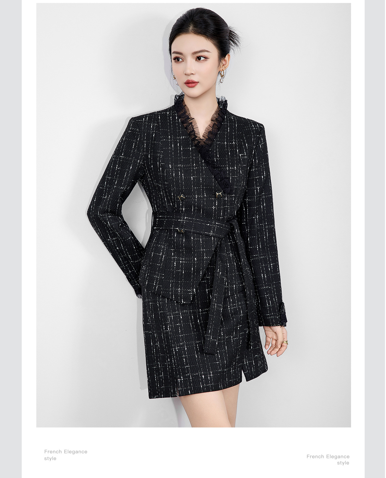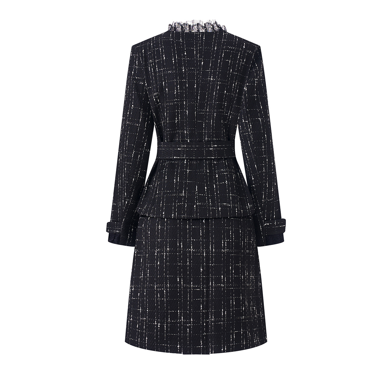 「高货wl」全新升级【铂金会员441/天猫599/差价158】(99236)洛诗琳2025秋冬小香风格纹蕾丝拼接外套高腰半裙两件套