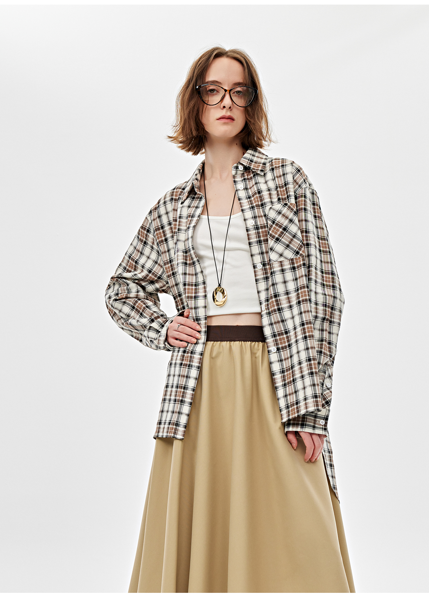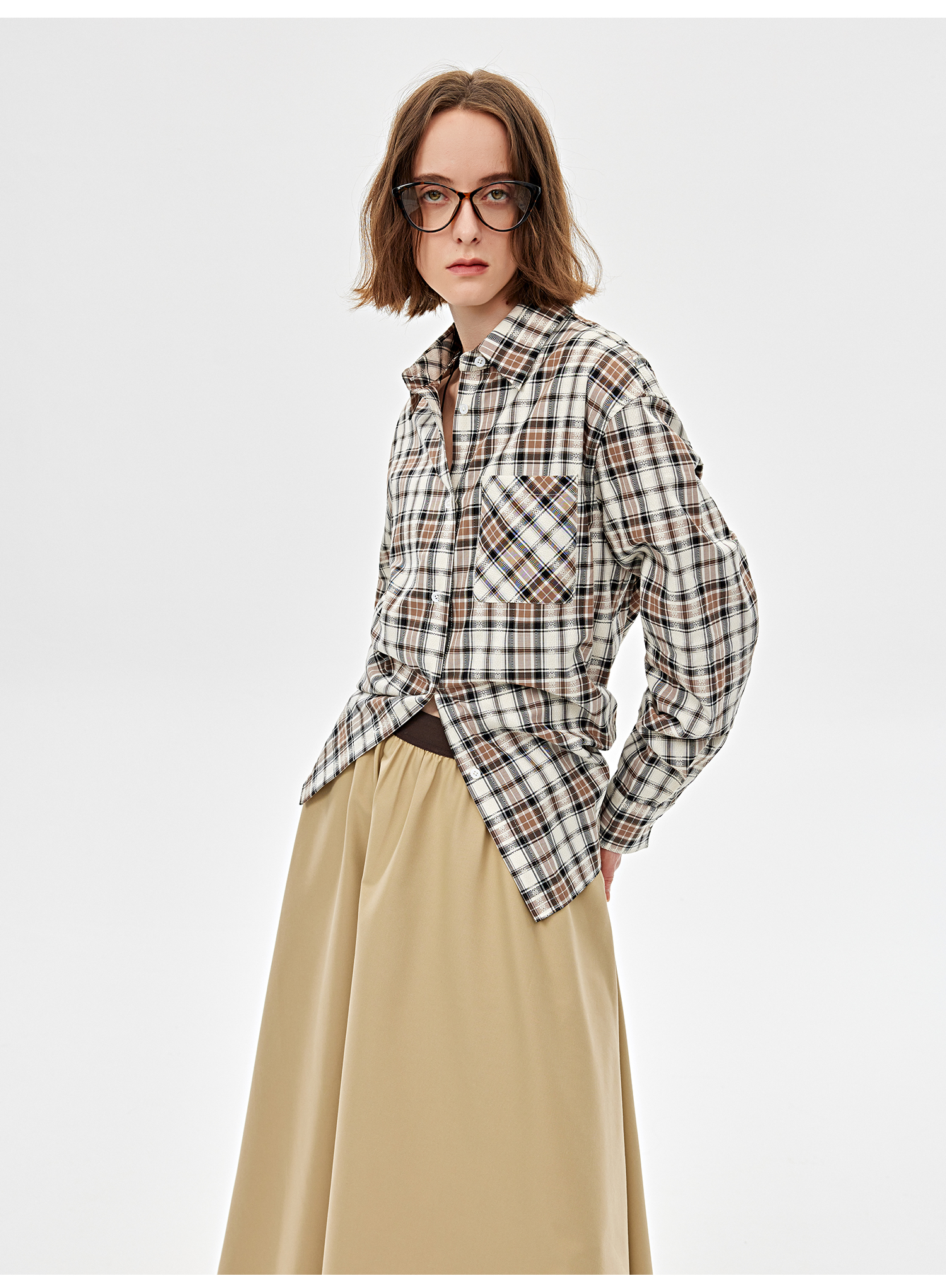 西嘉全棉正反两穿格子衬衫女2025春季新款小众设计感休闲通勤上衣(CS2501030)
