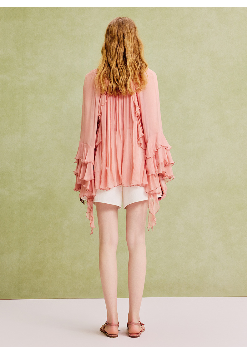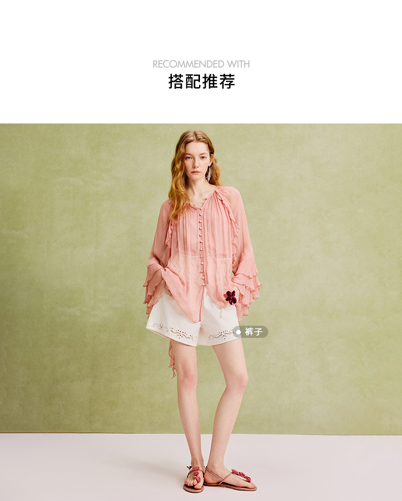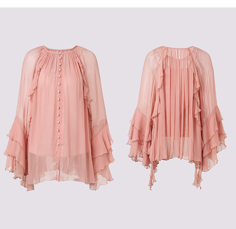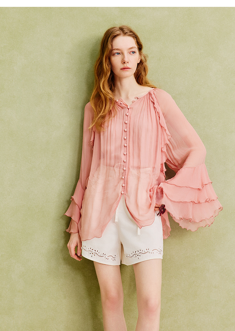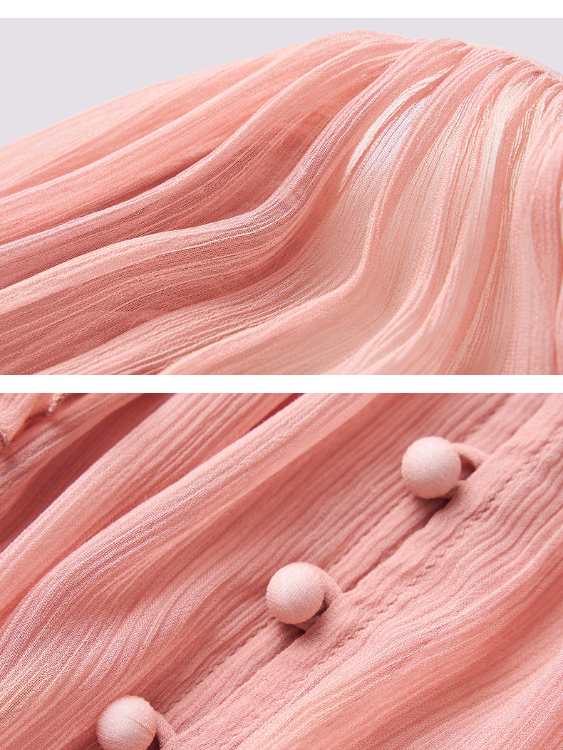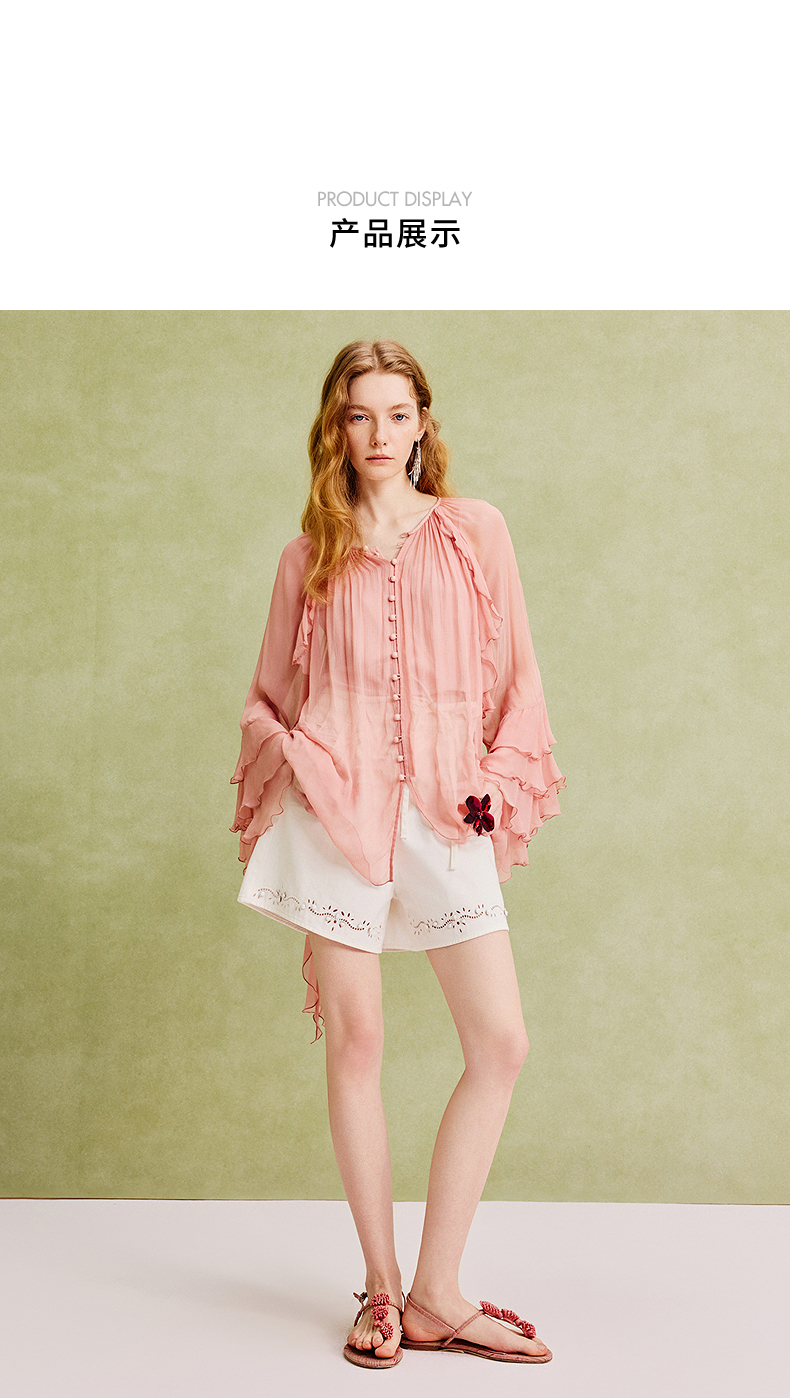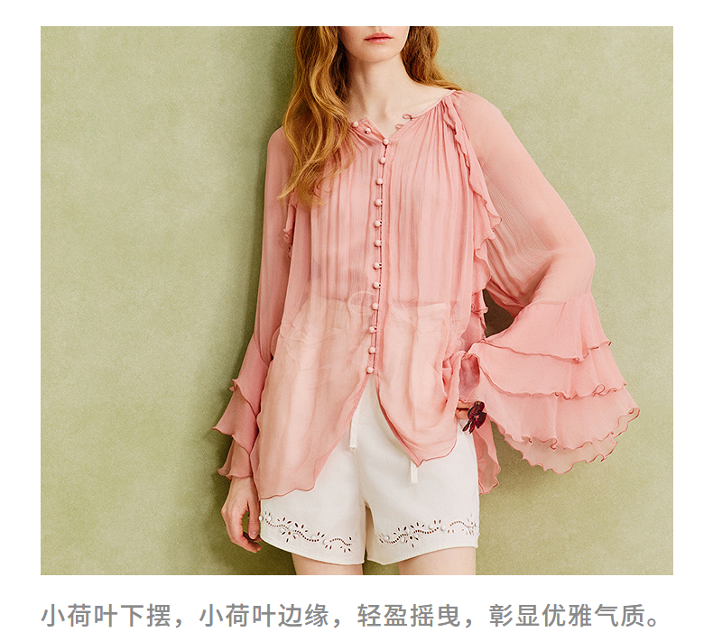 【商场同款】MAXRIENY精致复古v领垂感雪纺衫上衣女长袖夏季薄款(货号:MC86TP069)