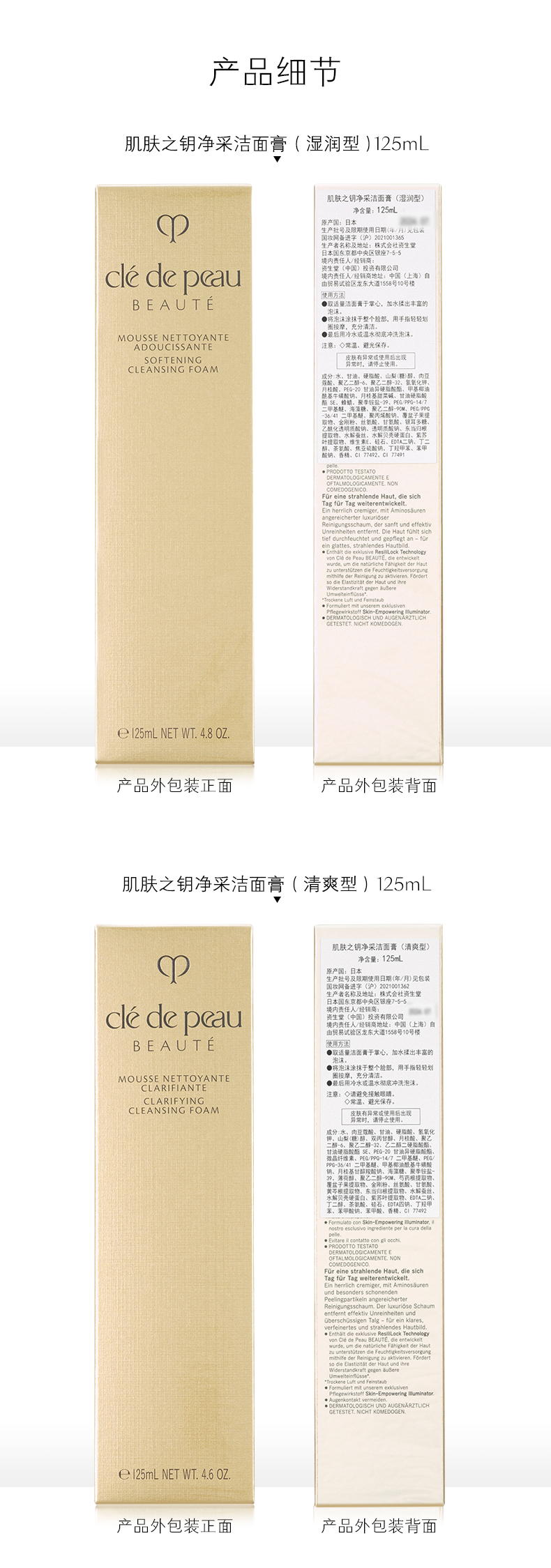 日本资生堂CPB肌肤之钥 光采洁面膏洗面奶125g 滋润型清爽型