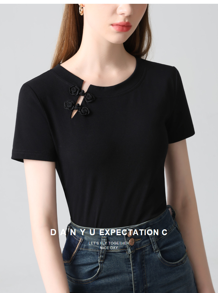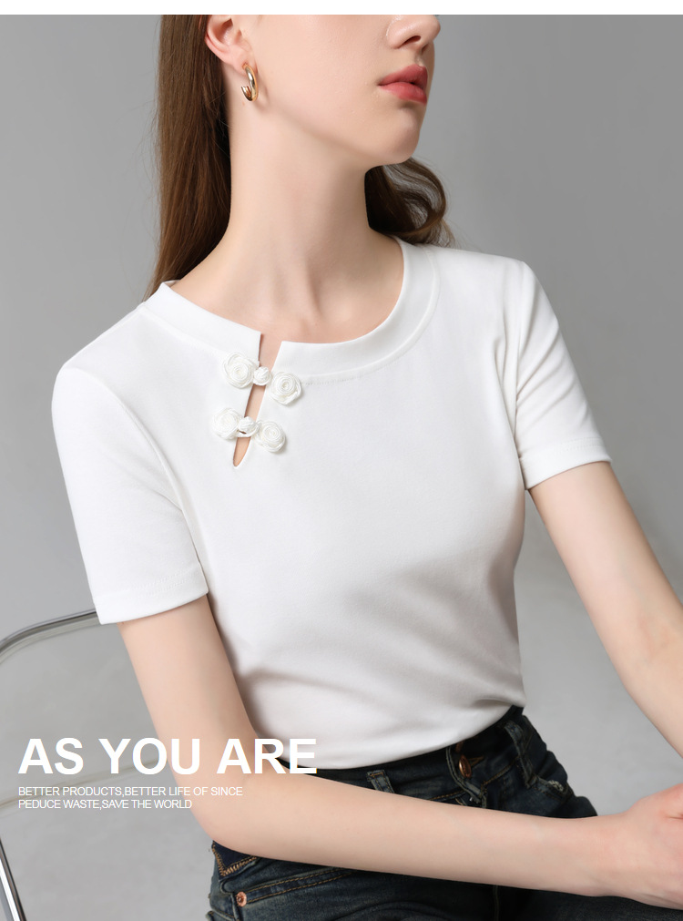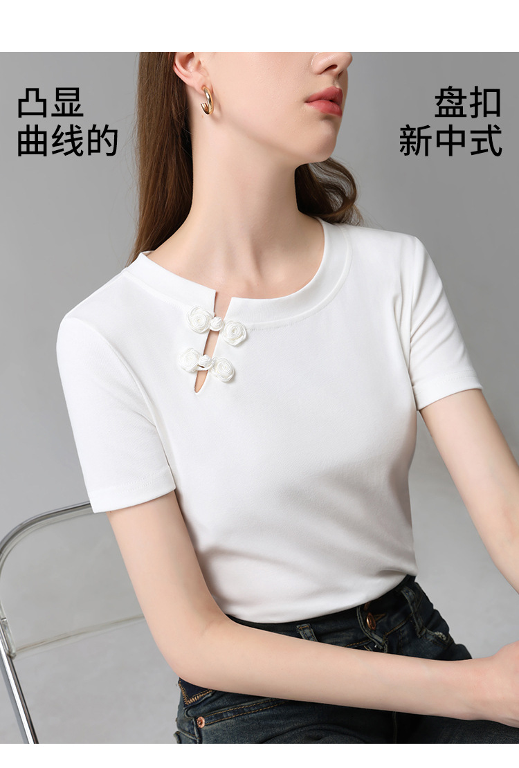 简约百搭,复古盘扣圆领T恤XY-T4X0687-LWS