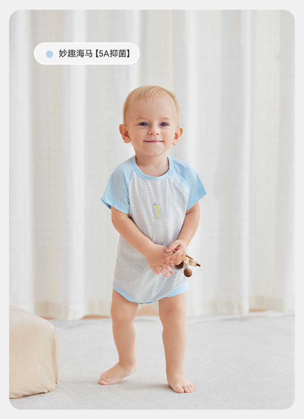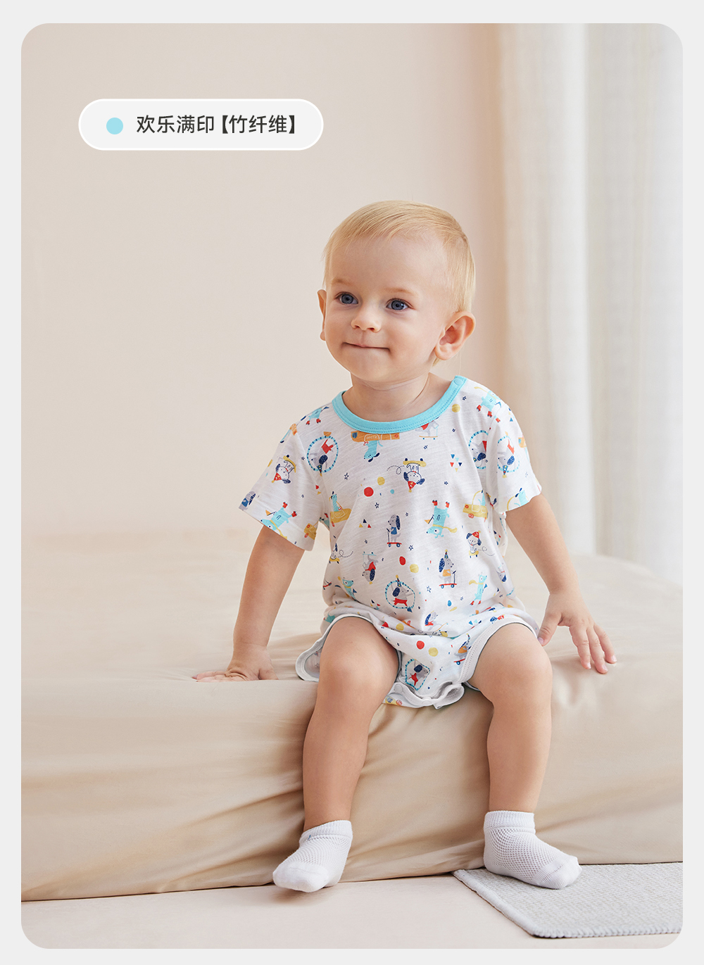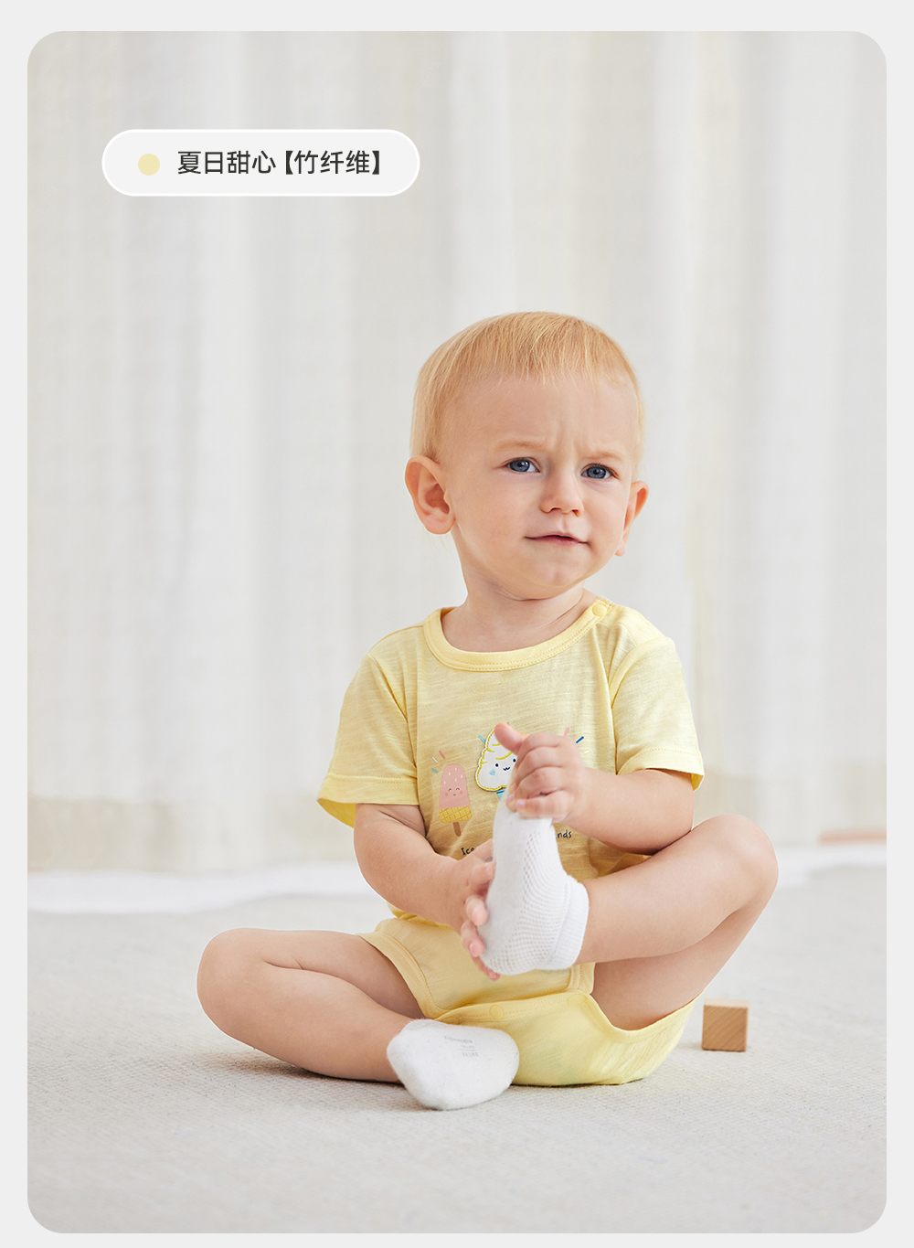 英氏婴儿夏季竹纤维连体衣竹棉包屁衣抑菌宝宝哈衣