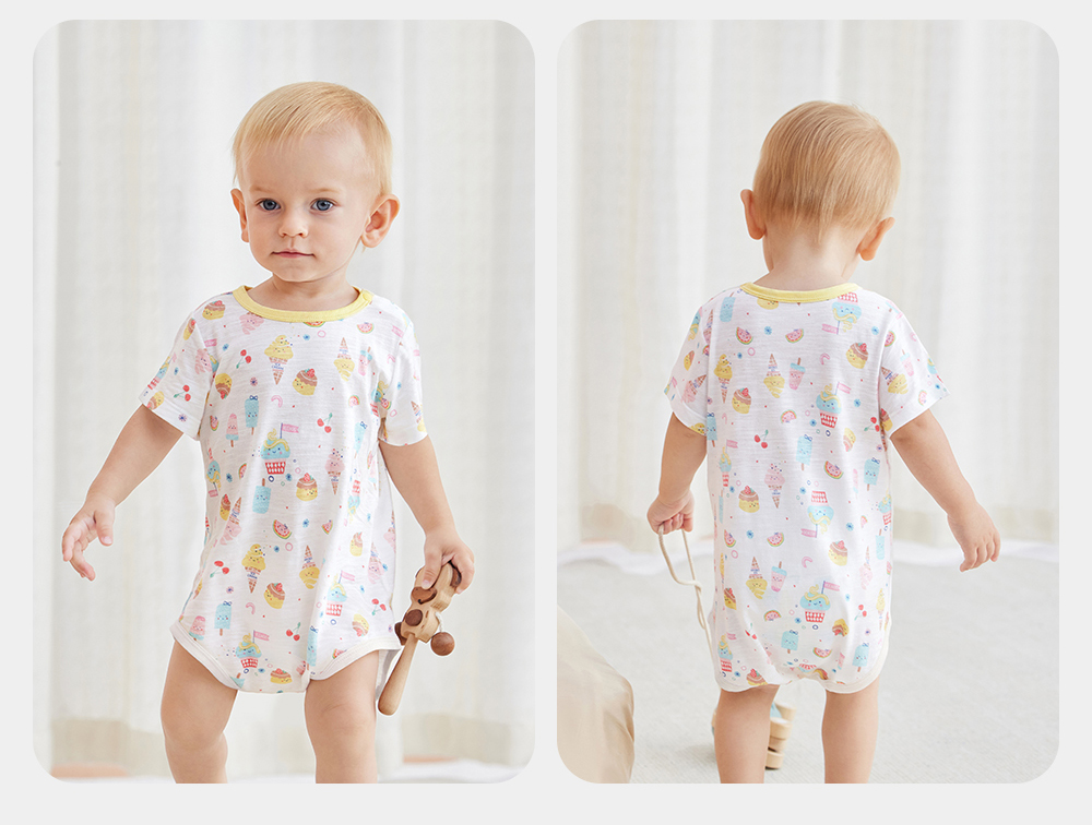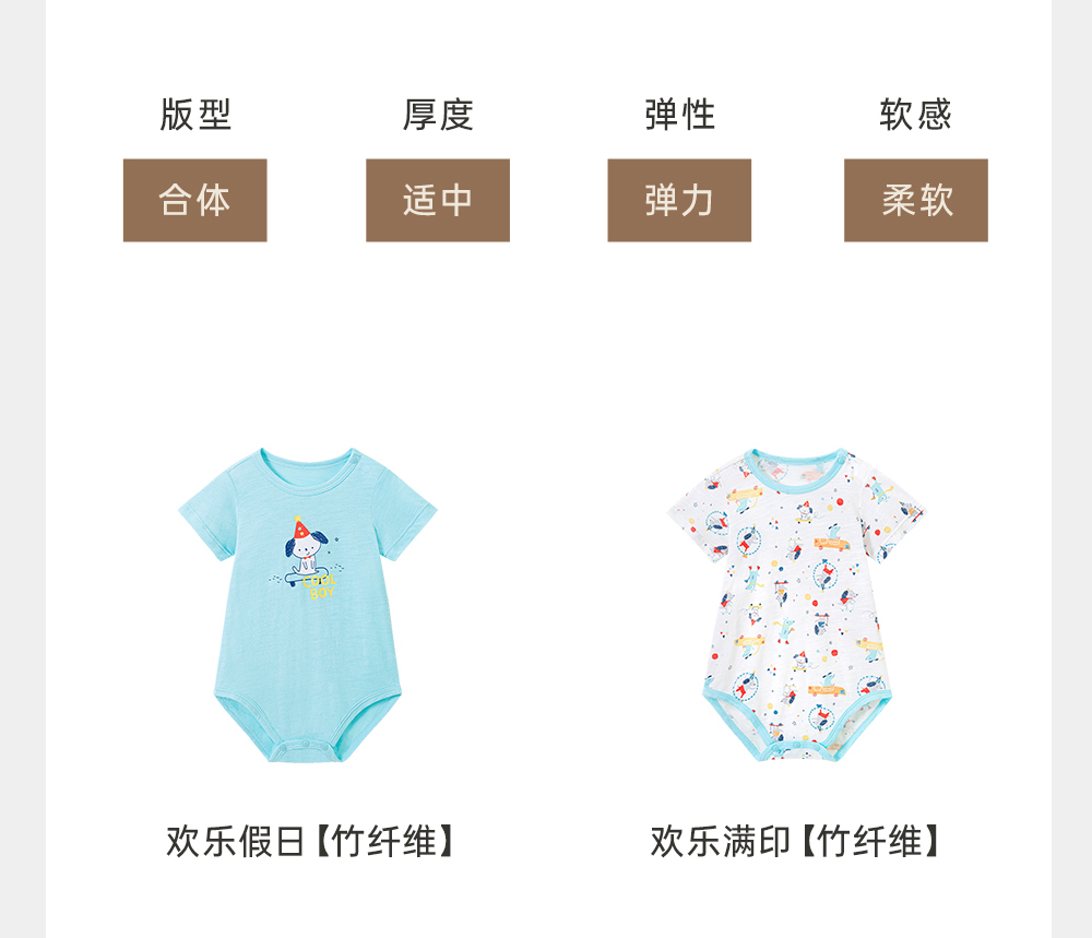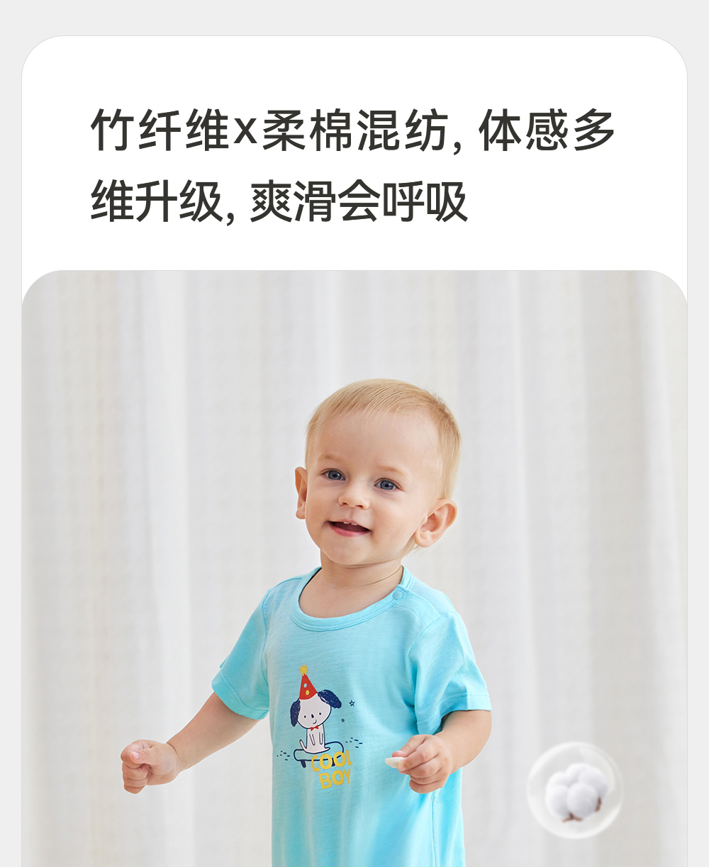 英氏婴儿夏季竹纤维连体衣竹棉包屁衣抑菌宝宝哈衣
