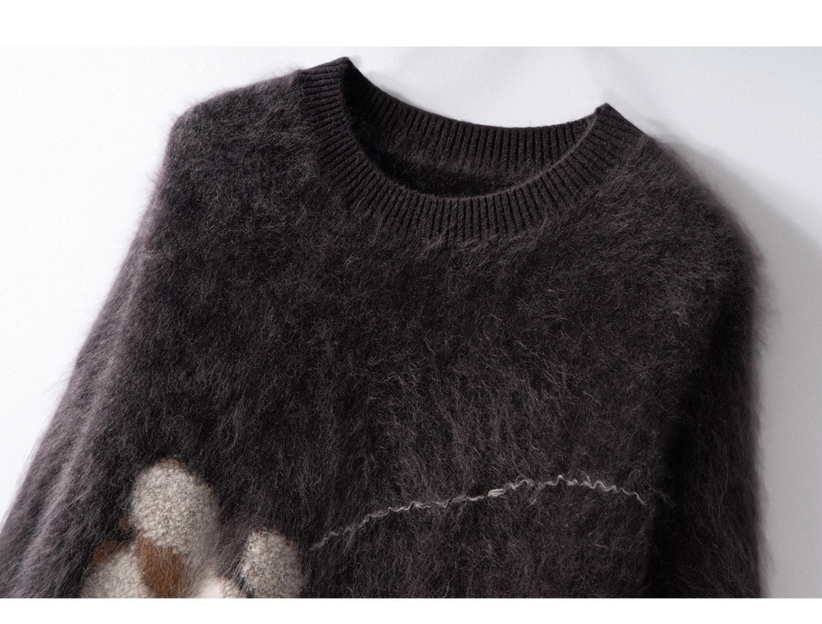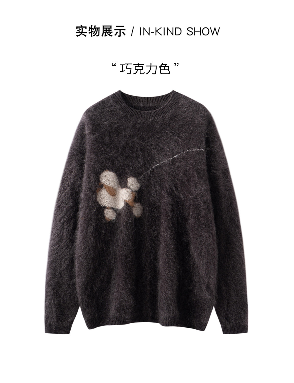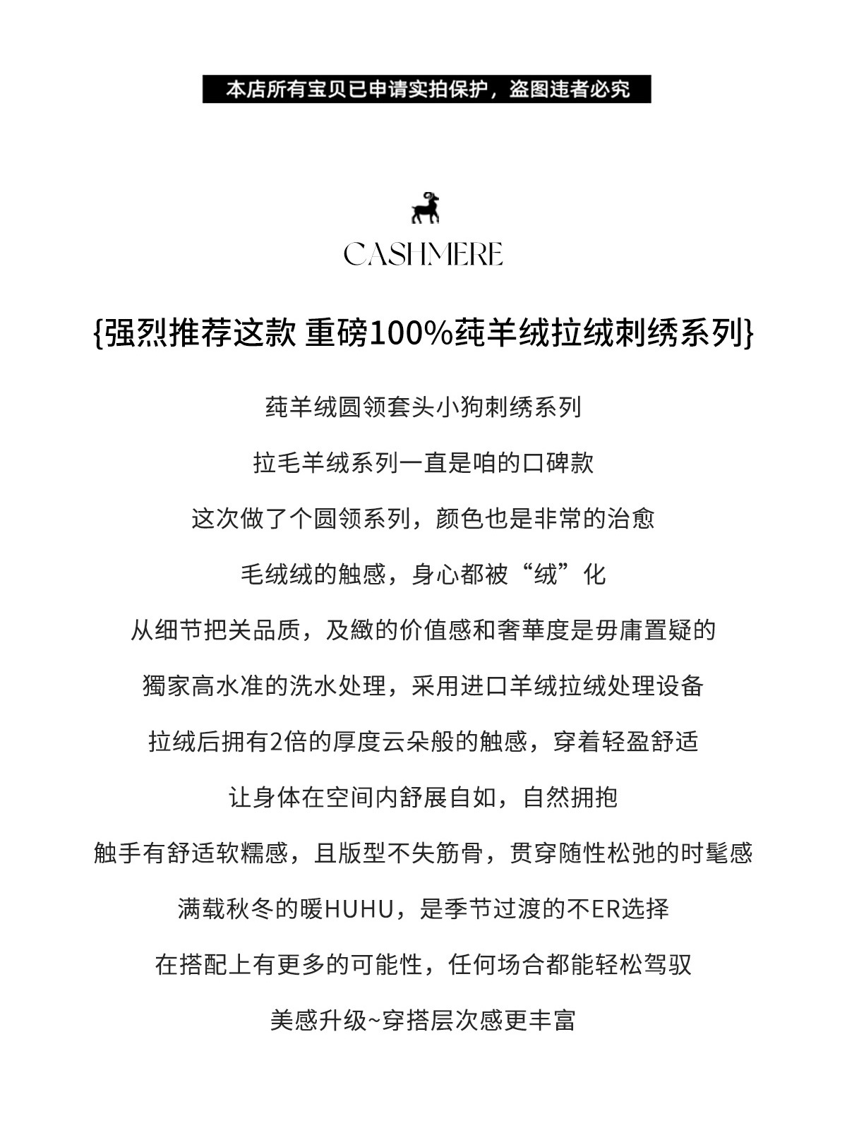 丁摩 100%纯山羊绒重工刺绣拉绒系列针织打底衫圆领女套头保暖上衣保暖