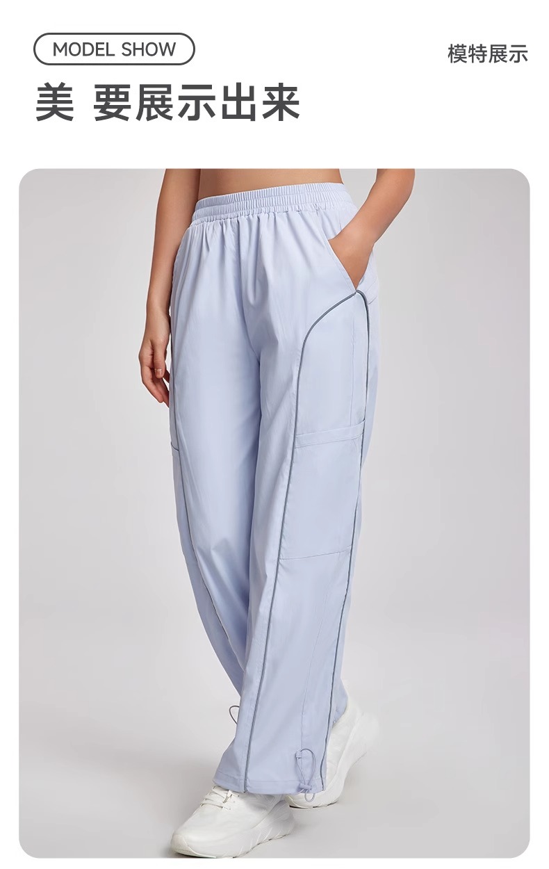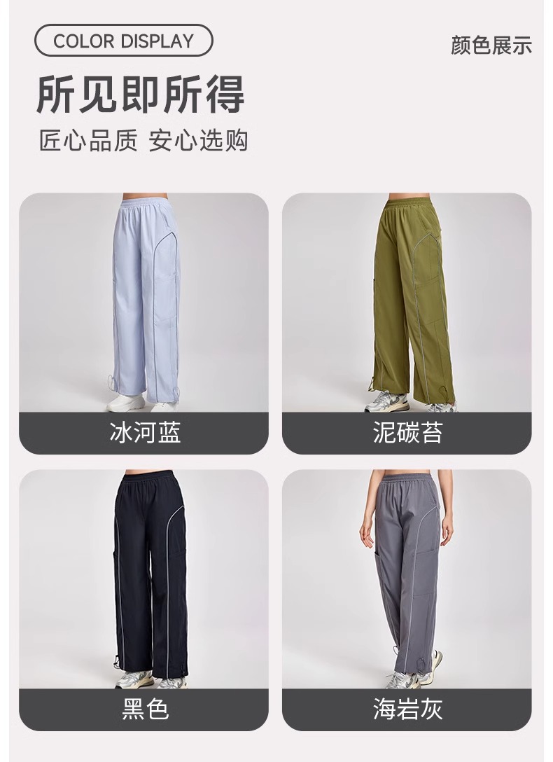 【限时秒】YOGACODE【火树银花系列】宽松运动裤直筒女户外反光工装长裤小个子低腰抽绳阔腿休闲裤DWL115083