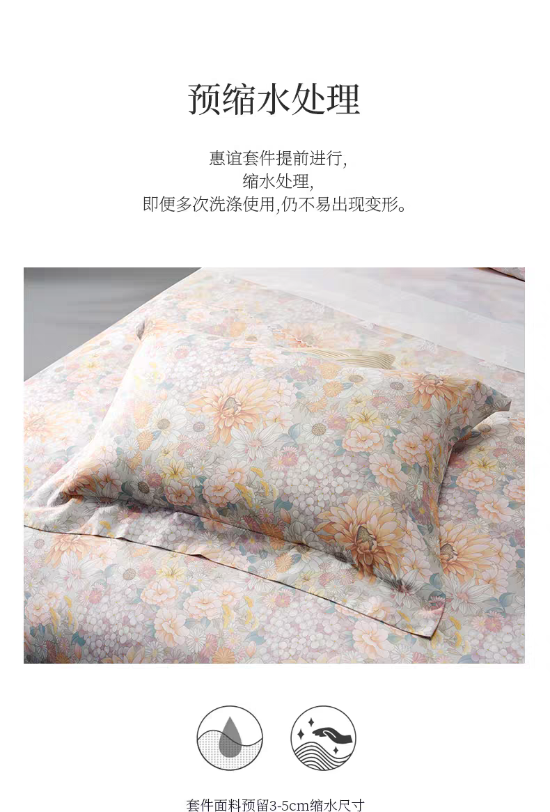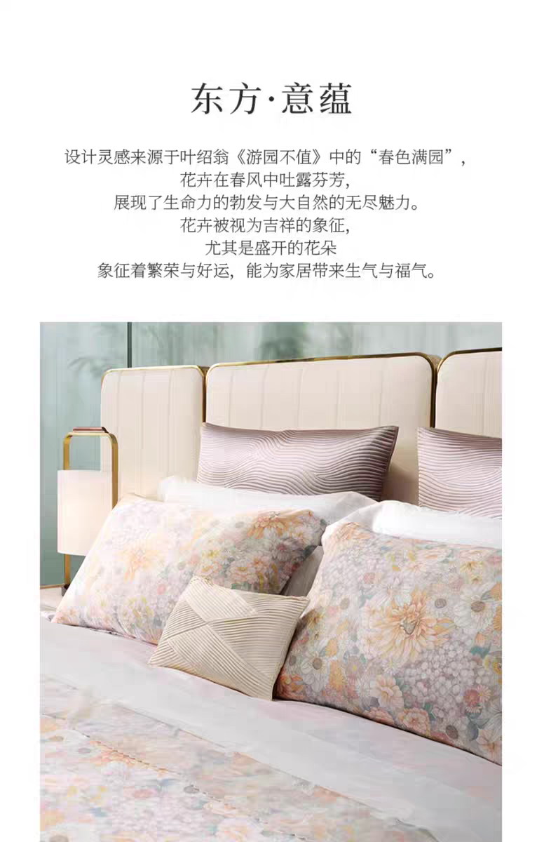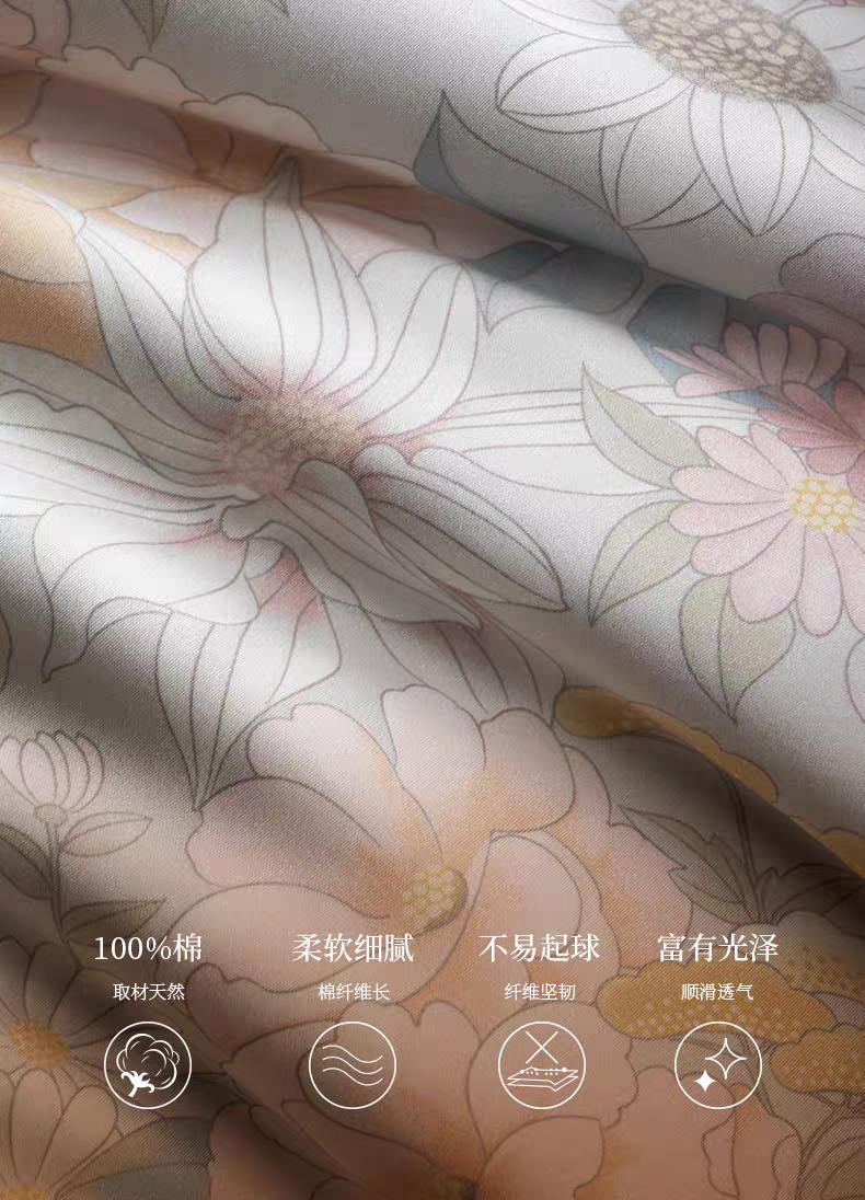 whinny/惠谊 春夏亲肤透气中式全棉长绒棉贡缎印花四件套 锦绣繁花