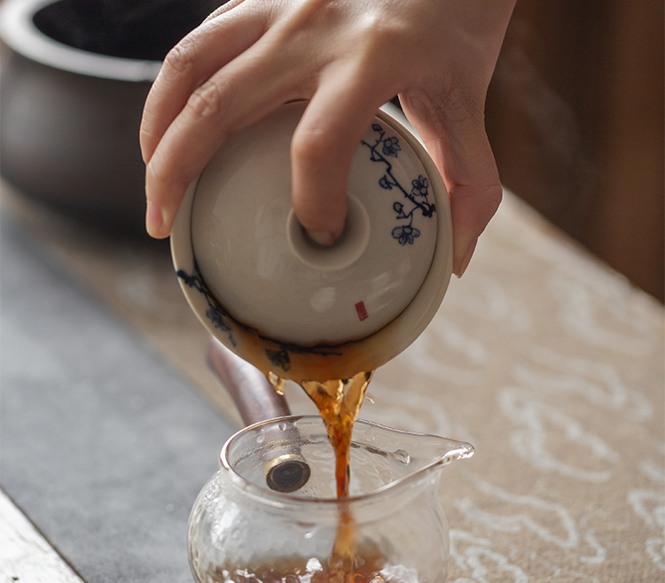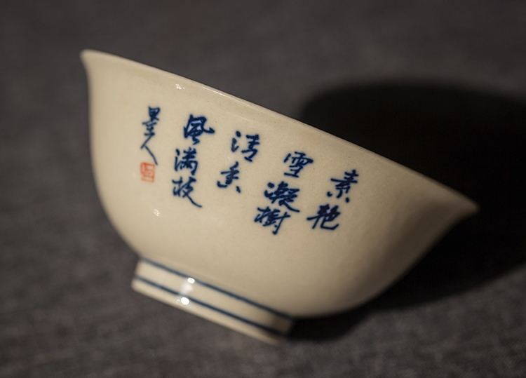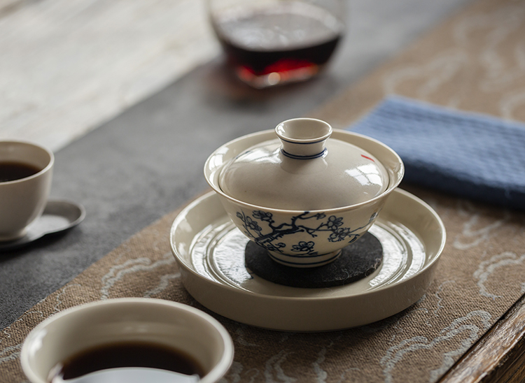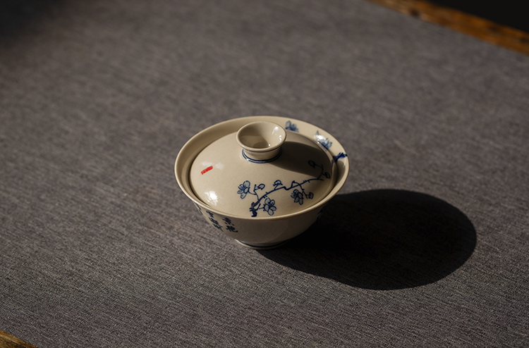 这款青花手绘梅花诗文小盖碗,兼具画意与诗情,