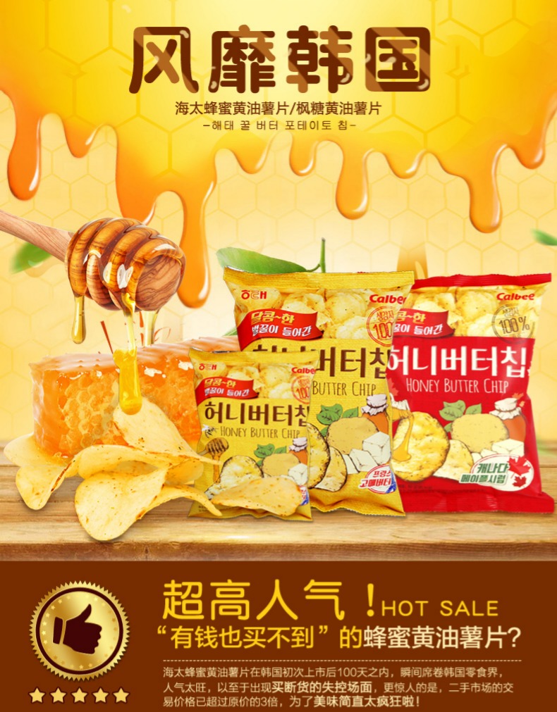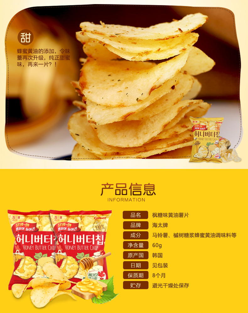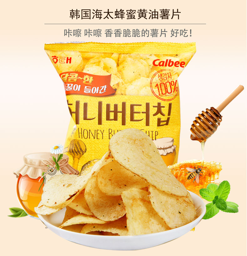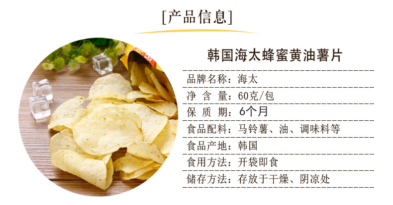 【韩国进口食品】零食海太蜂蜜黄油薯片 膨化烤土豆片香脆马铃薯片 60g