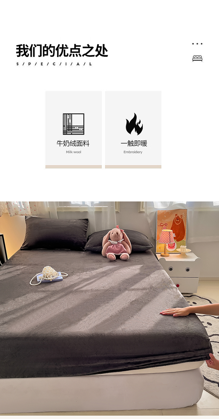 暖意绒绒☀️【京帝 A类加厚纯色牛奶绒床笠】8色可选 高克重面料 一触持久保暖 质感丰盈细腻 不易掉毛起球 抗静电处理 加高围布处理 适用多种床型 360°全包裹