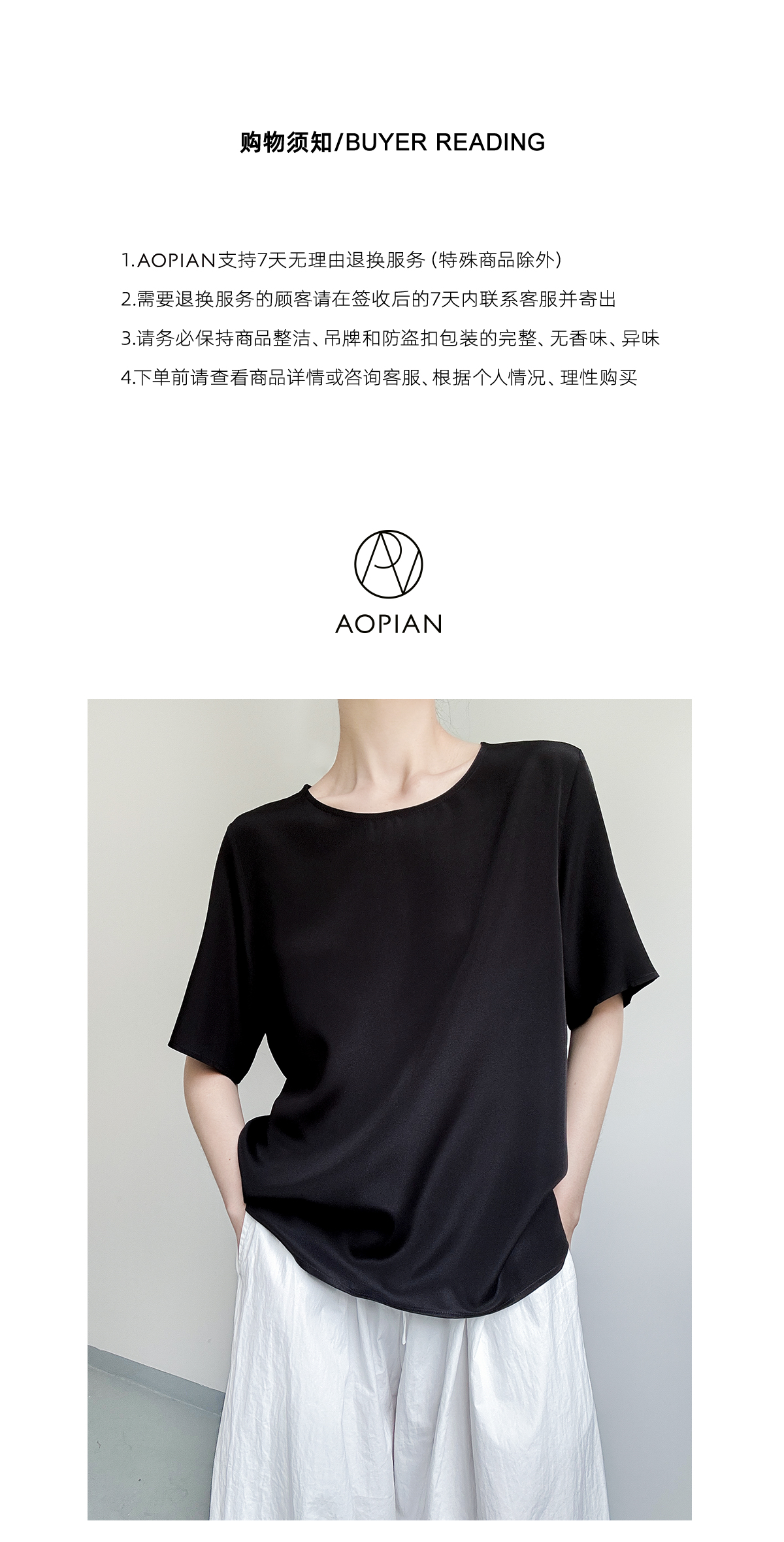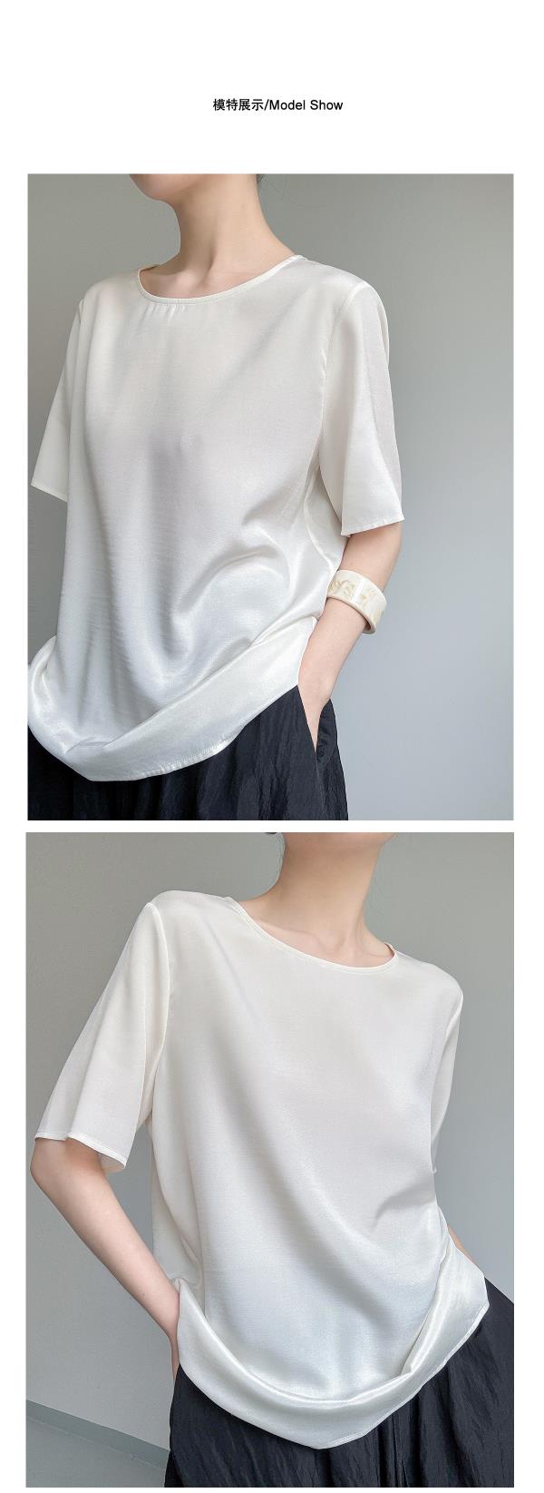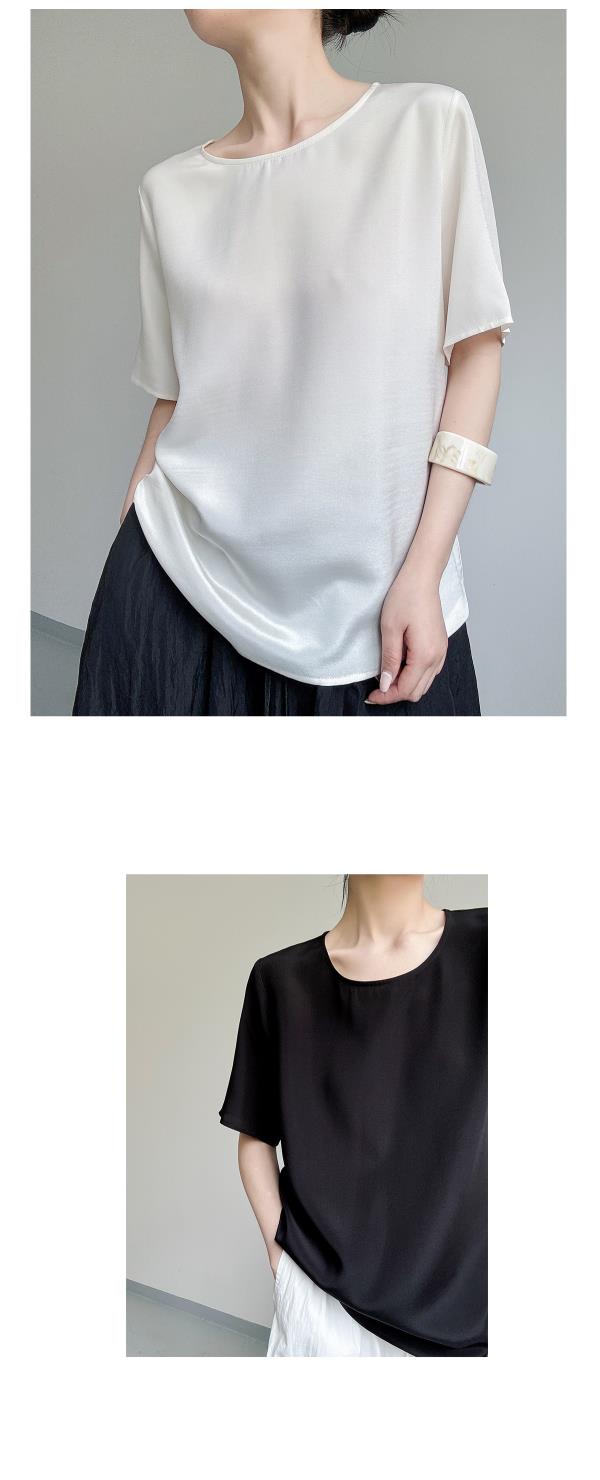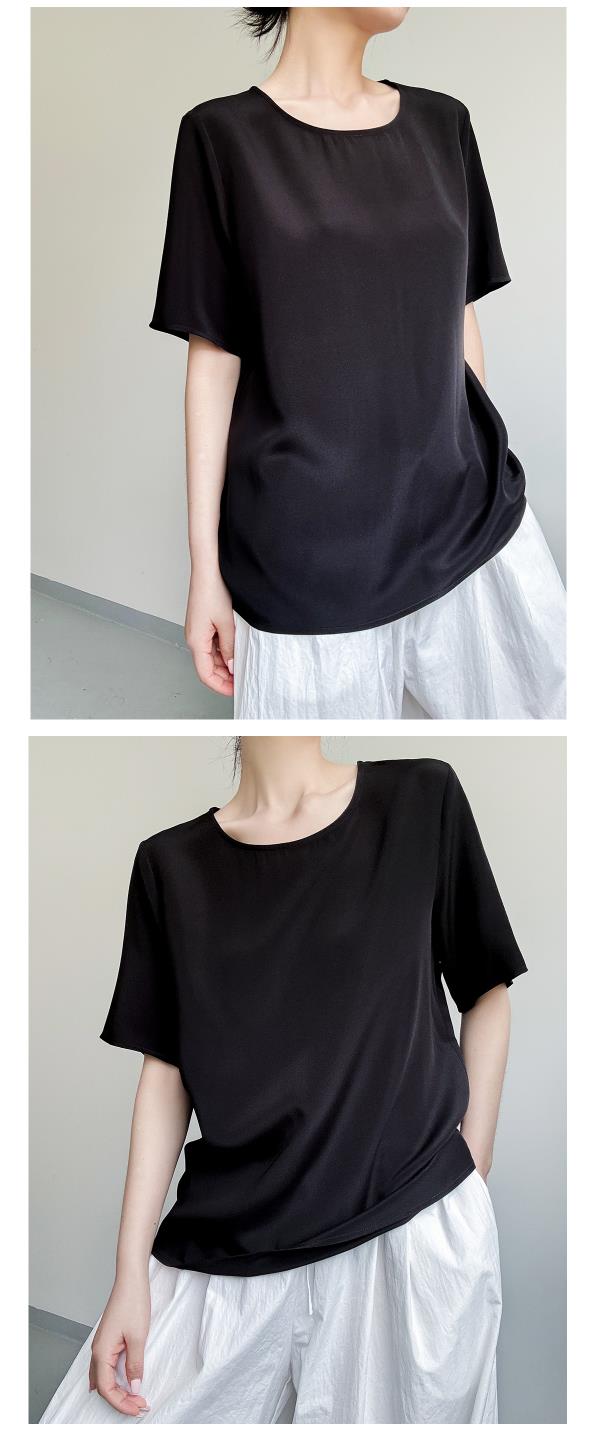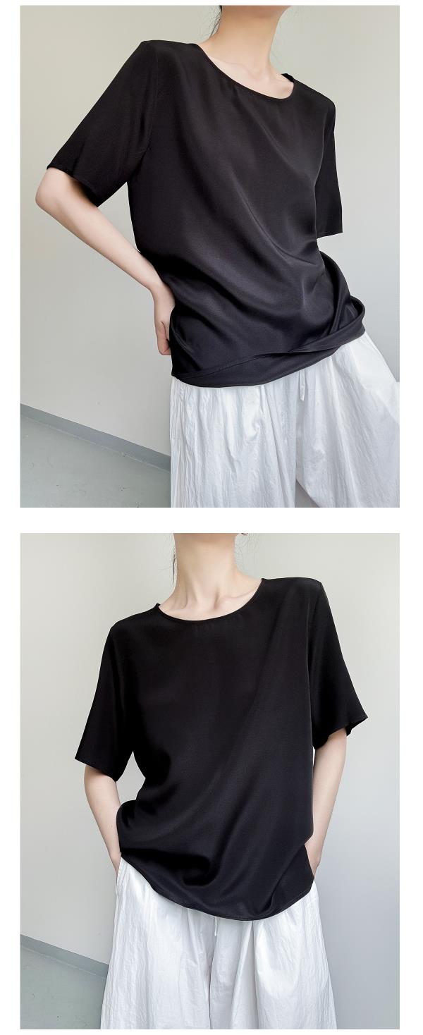 奥篇ZH同款 通勤可休闲22姆米真丝弹力圆领宽松真丝T上衣