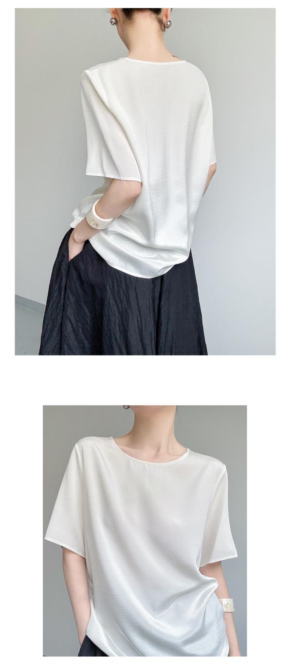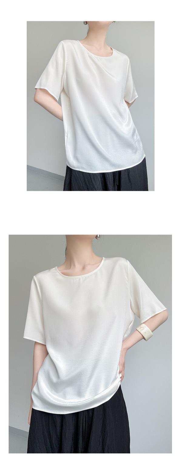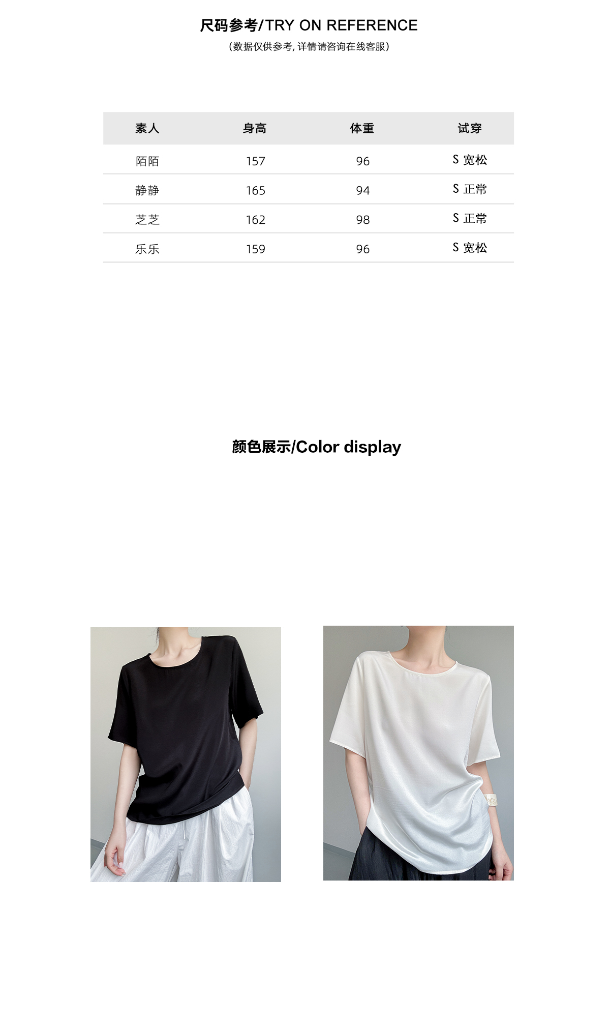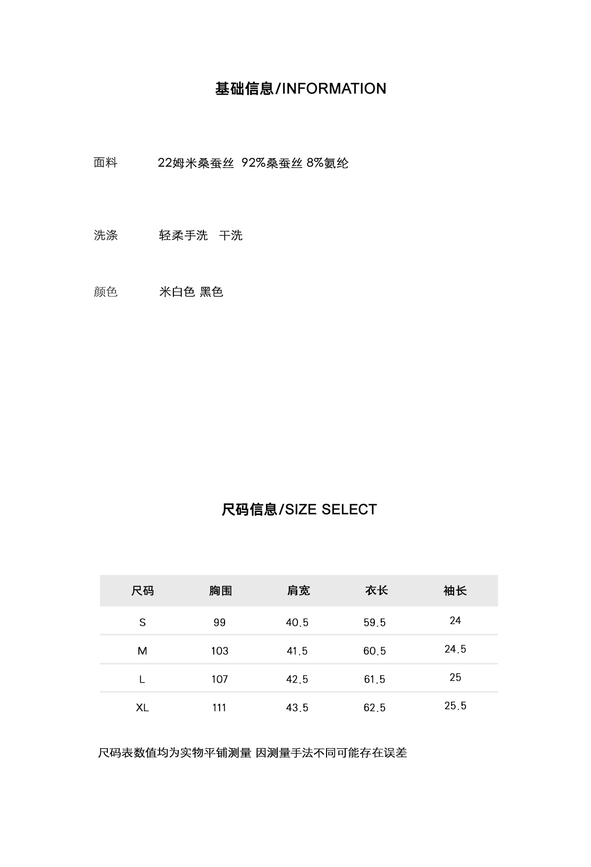奥篇ZH同款 通勤可休闲22姆米真丝弹力圆领宽松真丝T上衣