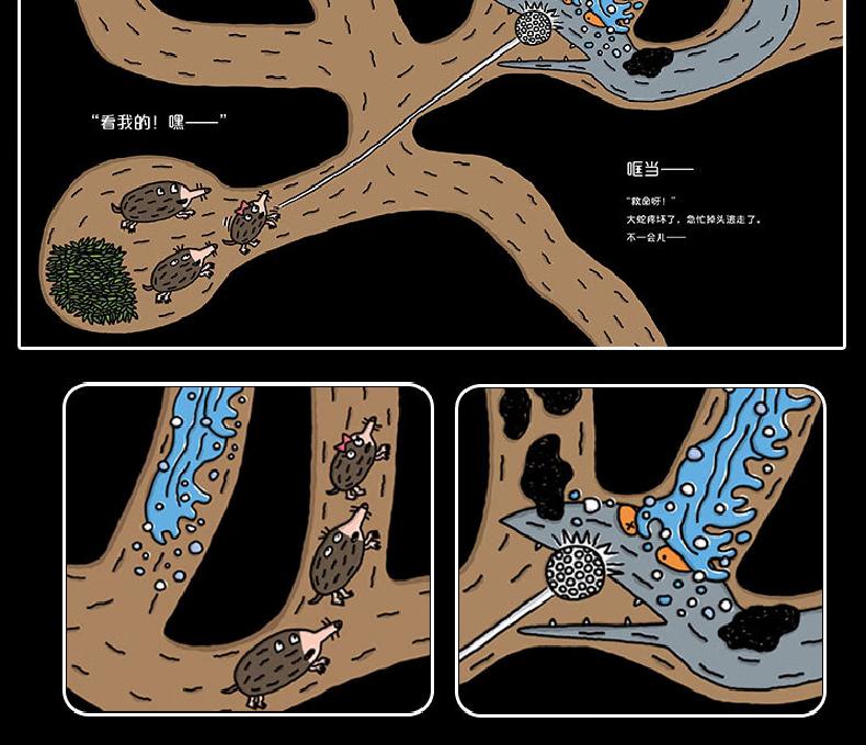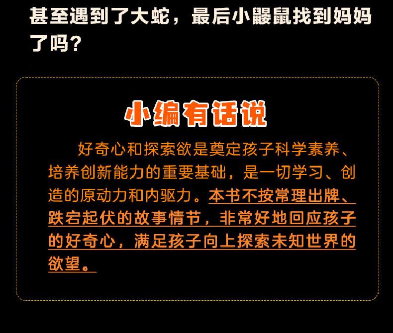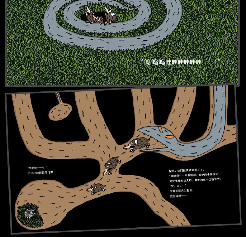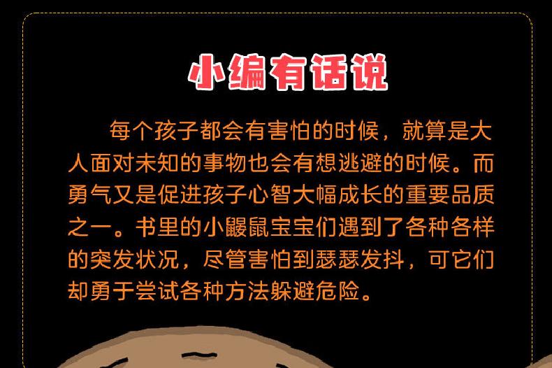这是一本脑洞大开的妙思绘本,宫西达也笔下的鼹鼠兄妹,遇到了不同的危险。面对不同状况,小鼹鼠兄妹开动脑筋,想办法解决问题,终化险为夷的有趣故事。