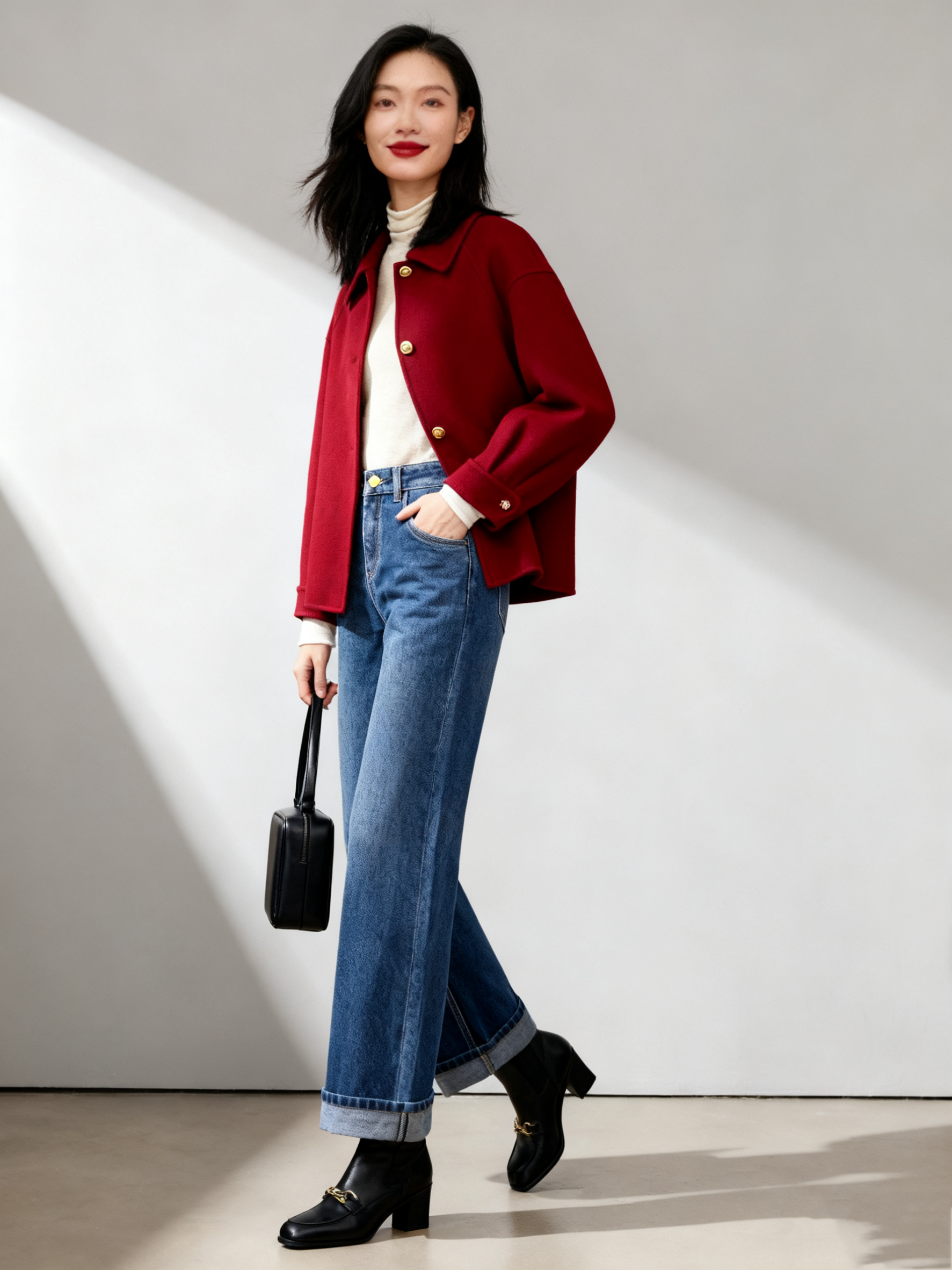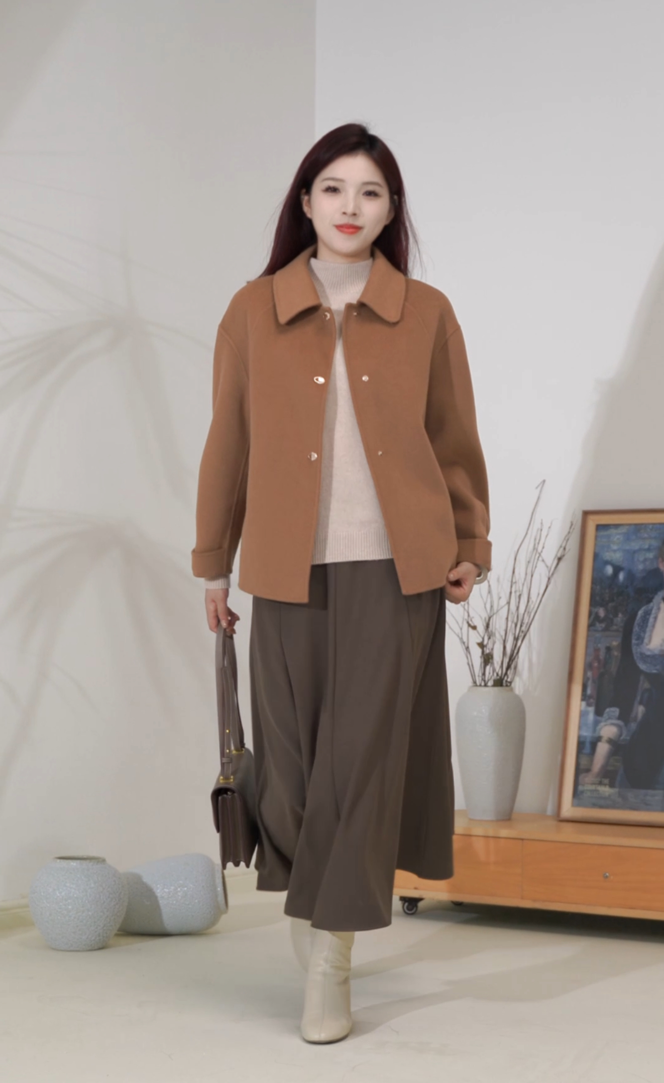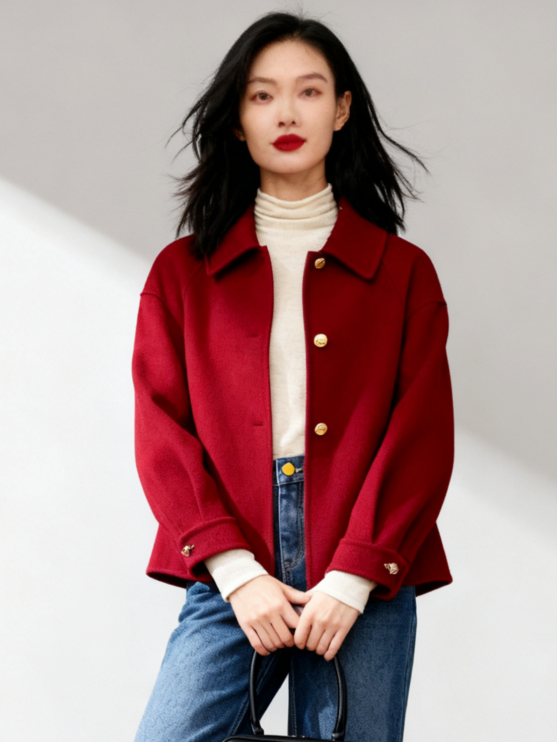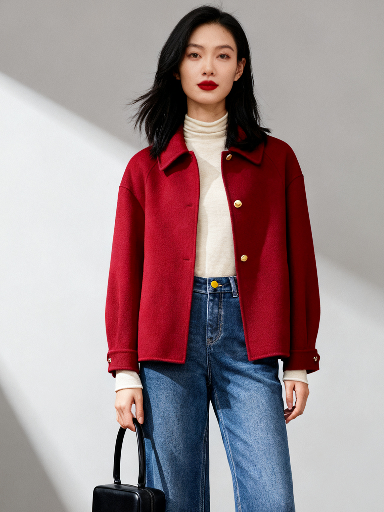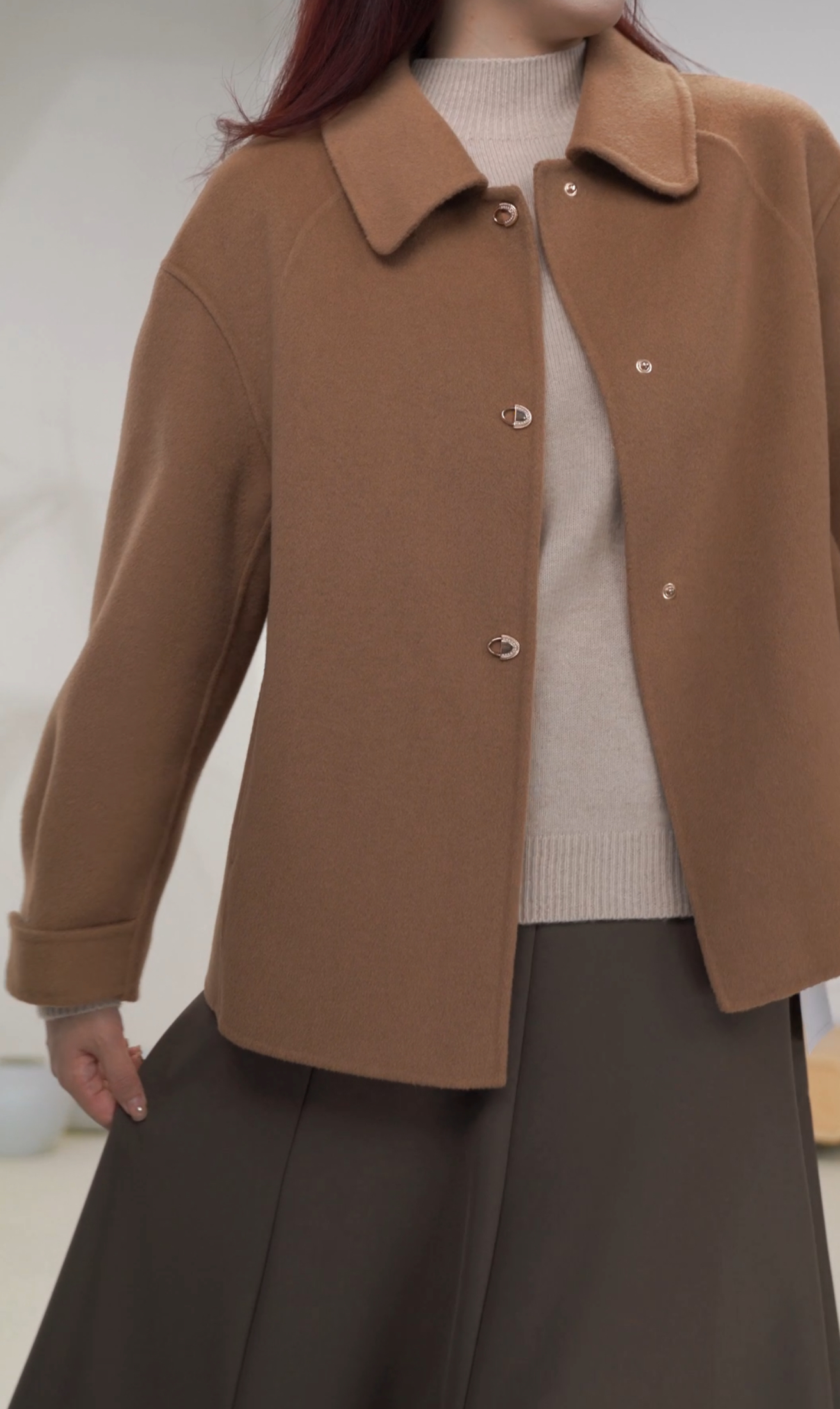 【现货】 臣禾 100%澳毛(高支) 翻领单排暗扣短大衣9244080280