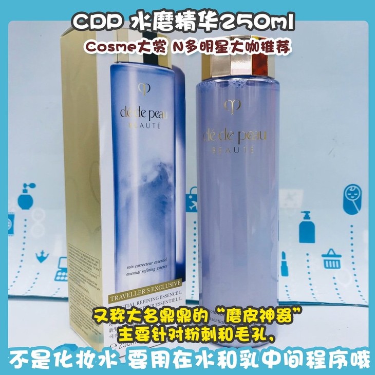 CDP 水磨精华250ml 03/20👍新版本❗Cosme大赏,N多明星大咖推荐🔥,又称大名鼎鼎的“磨皮神器”!👉主要针对粉刺和毛孔,有效的解决肌肤粗糙和凹凸不平的小粉刺,更好地改善毛孔问题✅。从而让肌肤变得有光泽一些🌟,也就是我们所说的“抛光”效果,皮肤细腻得像滑滑的水煮蛋🥚。内含薄荷露,清清爽爽的。水磨是精华水💧,不是化妆水,要用在水和乳中间程序哦!