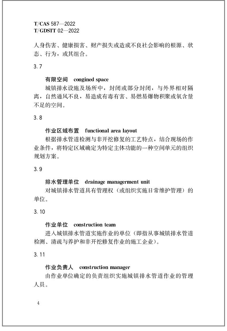 书名:城镇排水管道检测与非开挖修复安全文明施工规范T/CAS587-2022T/GDSTT02-2022