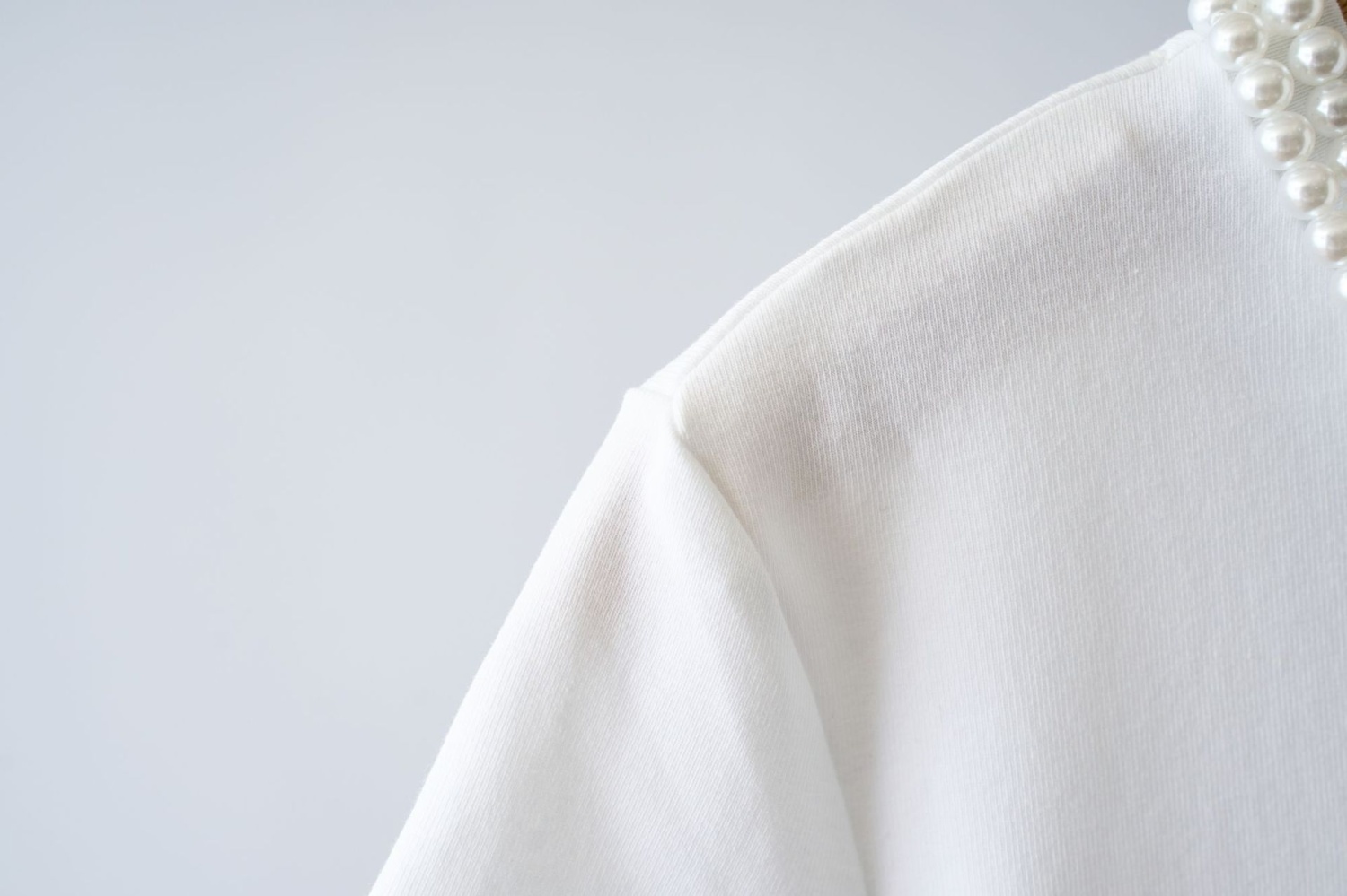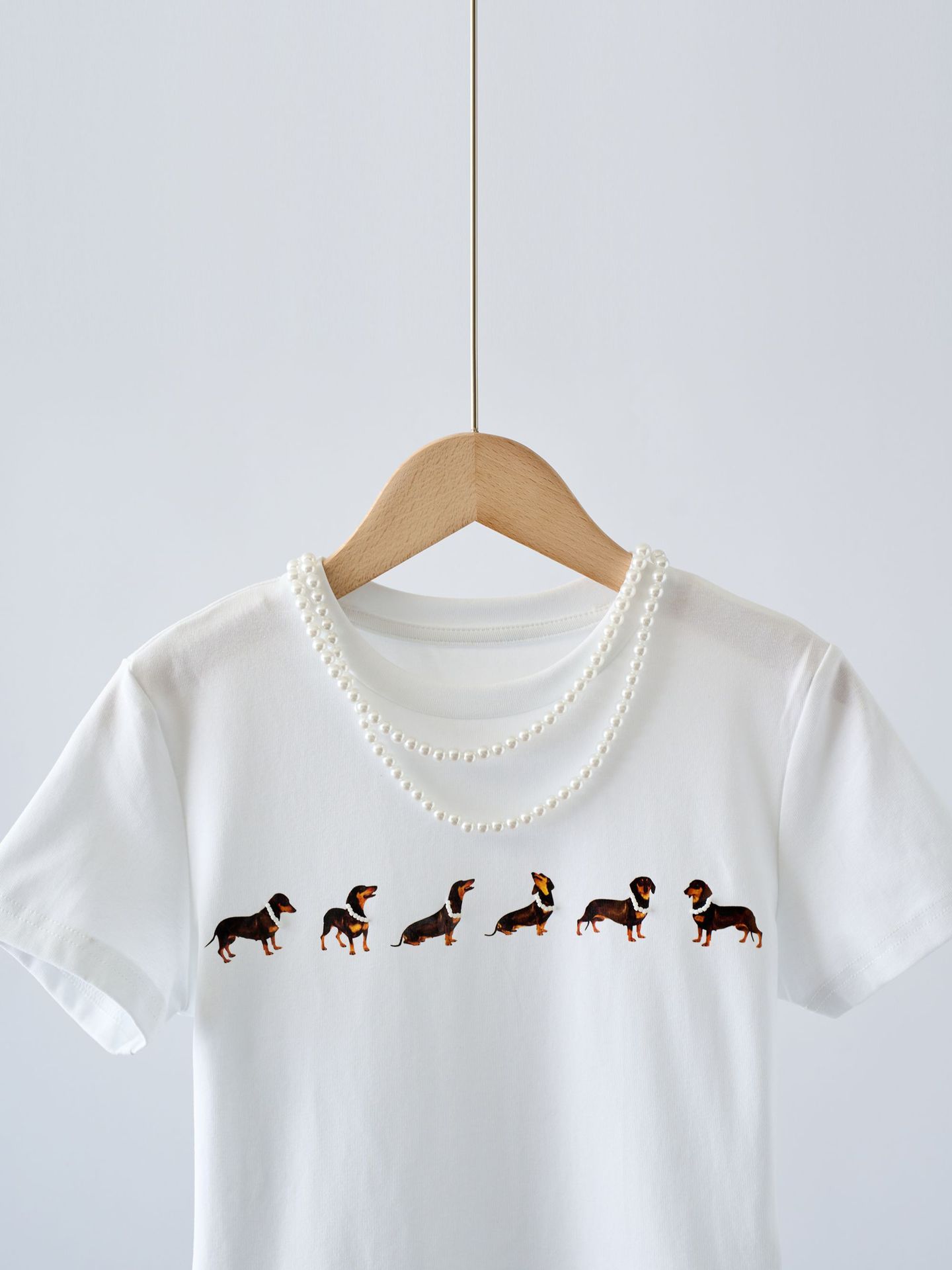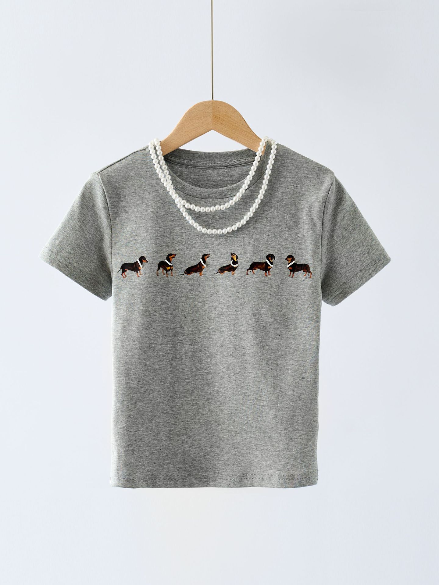 「自」全新升级【铂金会员146/天猫189/差价43】(21255)洛诗琳气质印花弹力棉质珍珠项链修身正肩圆领短袖T恤女