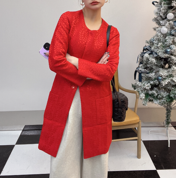 臣禾无领中长款外套9253820130
