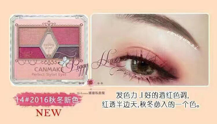 日本CANMAKE2016年秋冬新色五色眼影#14 超级断货🔥🔥井田五色眼影✨14號是16年冬季新色號,✨一出來就被搶瘋了,🌹無論是軟妹還是御姐,這個色號都搭,紫紅色系列很適合亞洲人膚色。🌺 細膩顯色⭐ ,👇🏻包裝很小巧 方便攜帶 ,👌🏻自帶刷子,只需花一點時間塗上眼影就能感受到完妝後的不同肌膚透出亮麗淡紅色澤👣,而且效果持久。🎄 無論是耀眼的眼妝或是含蓄的妝感✌ 最後迭上透明的亮粉讓雙眼如寶石般璀璨。