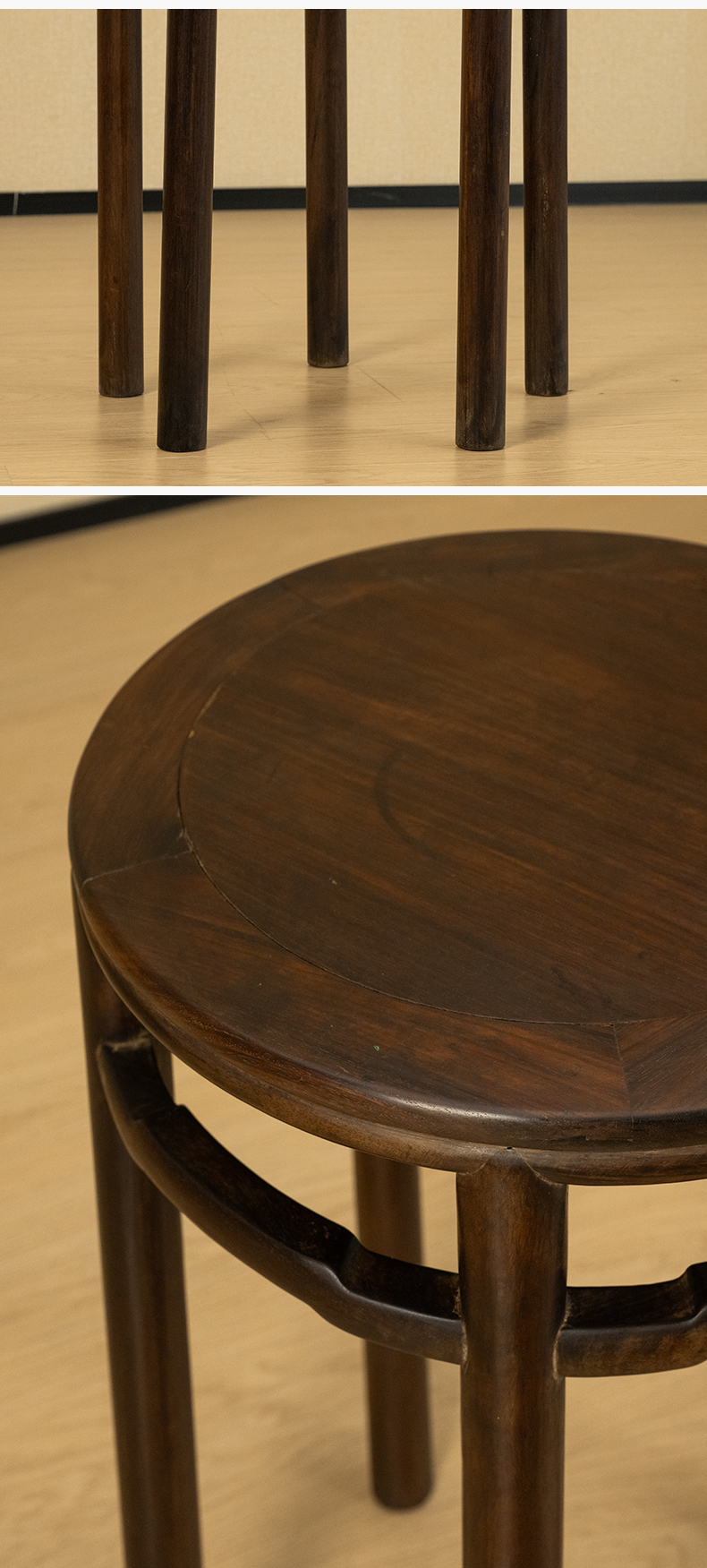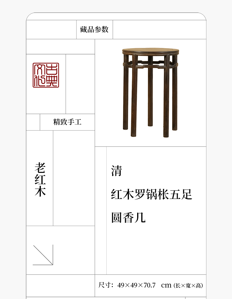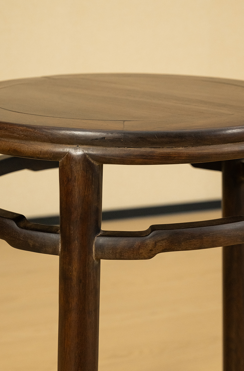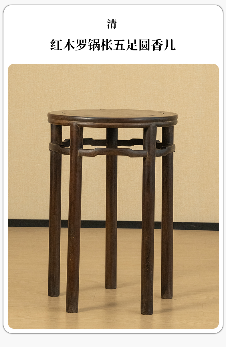 清 红木罗锅枨五足圆香几
