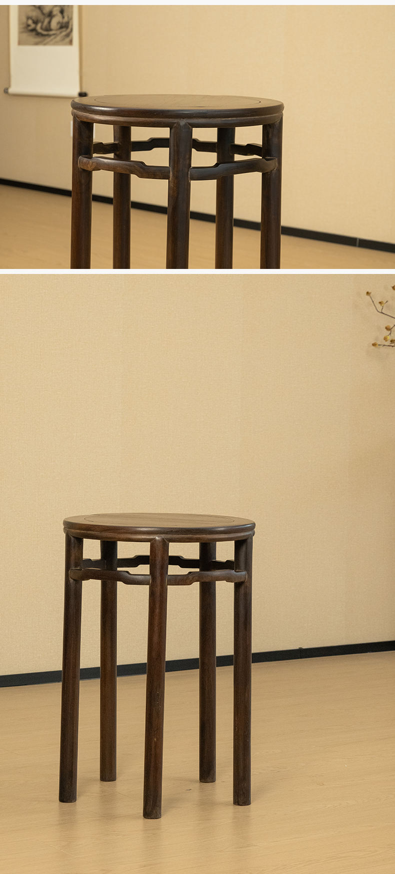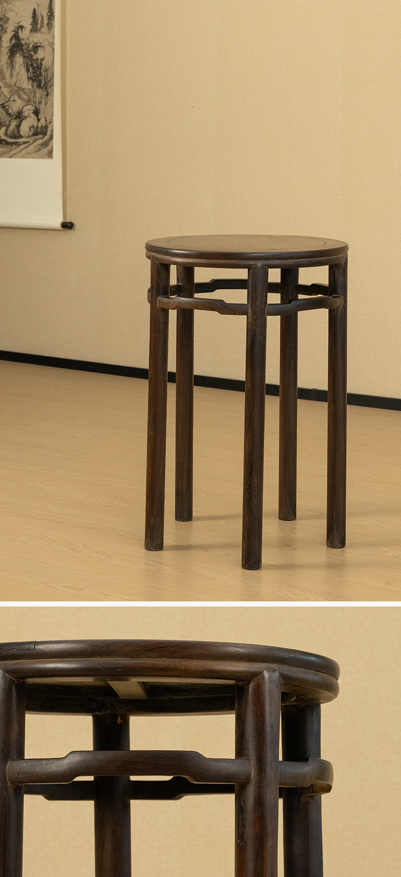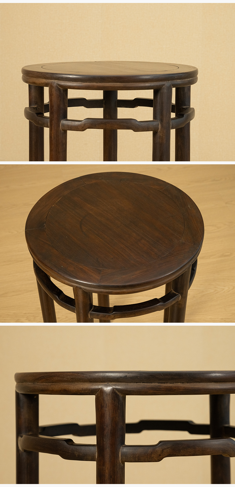 清 红木罗锅枨五足圆香几