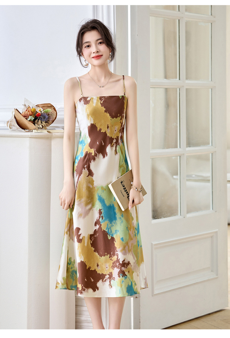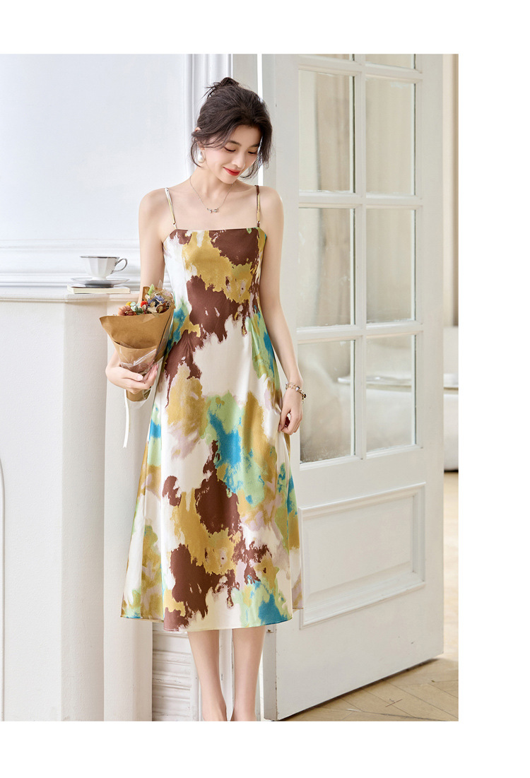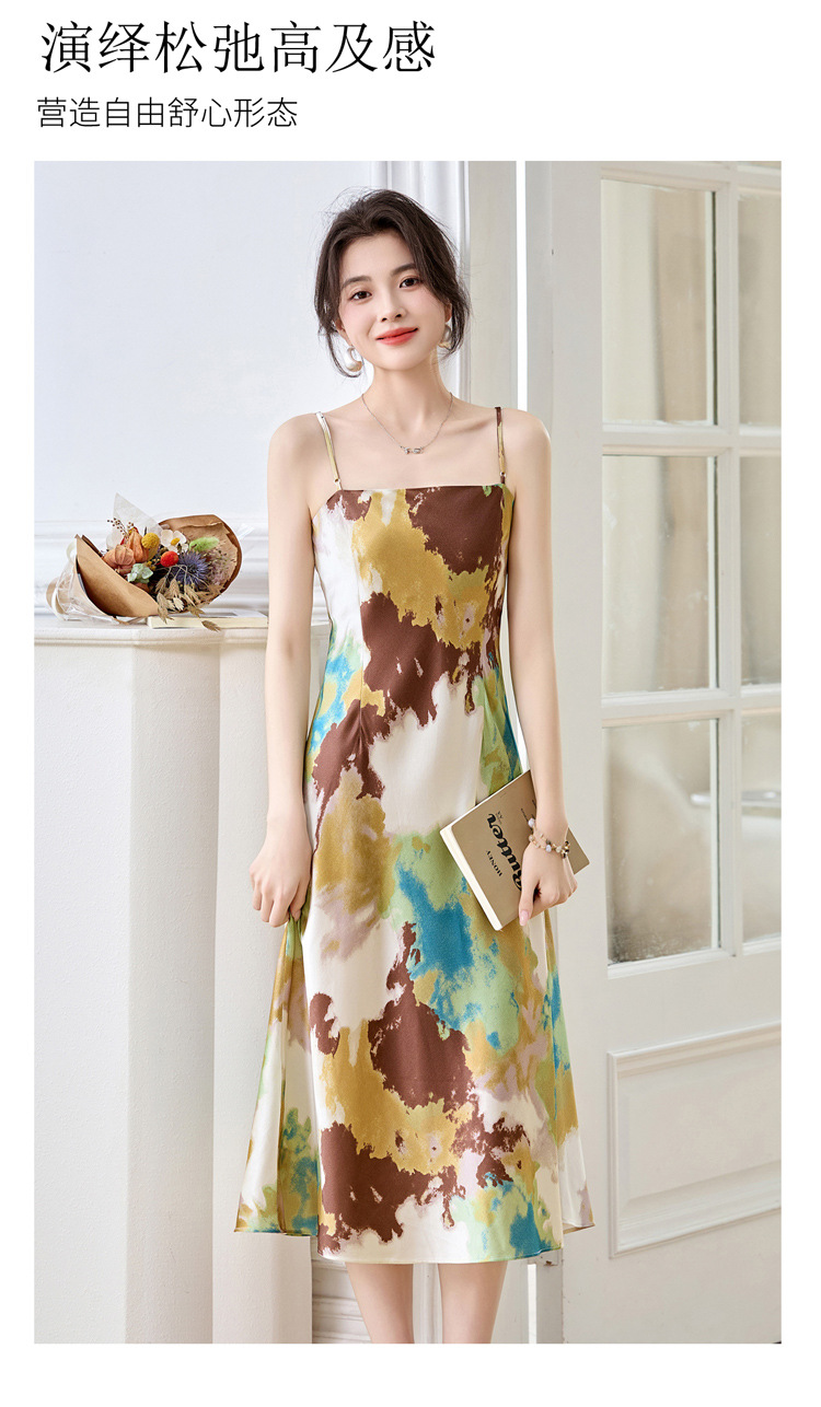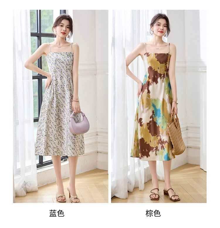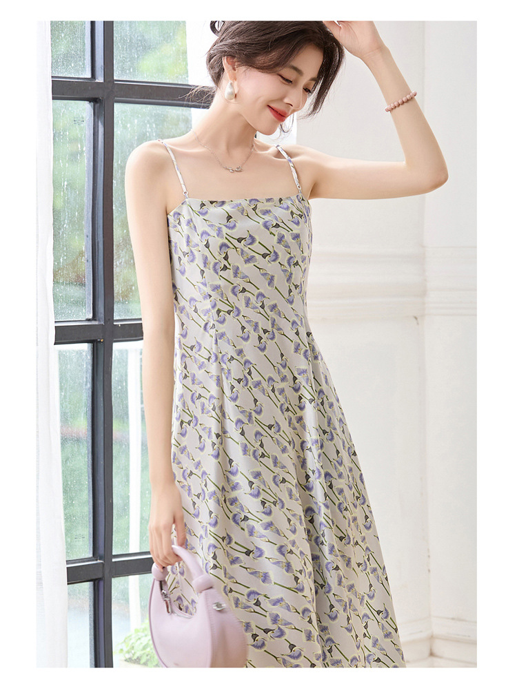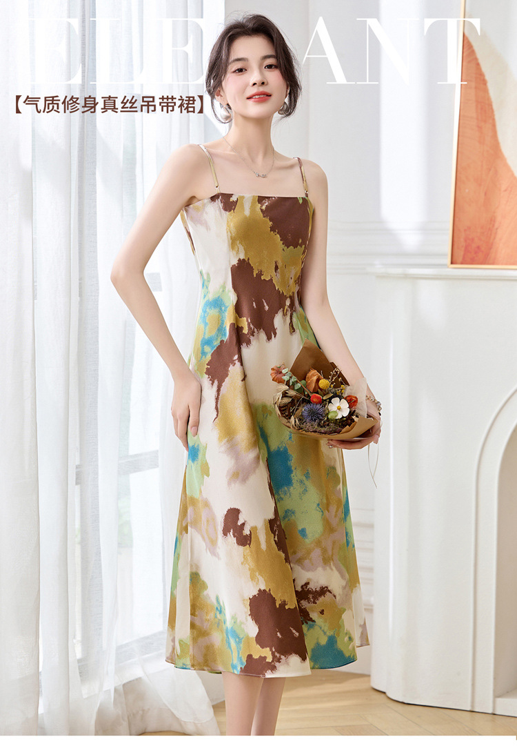 ASE2025夏季新款时尚立体花朵印花吊带桑蚕丝连衣裙小清新法式显瘦裙