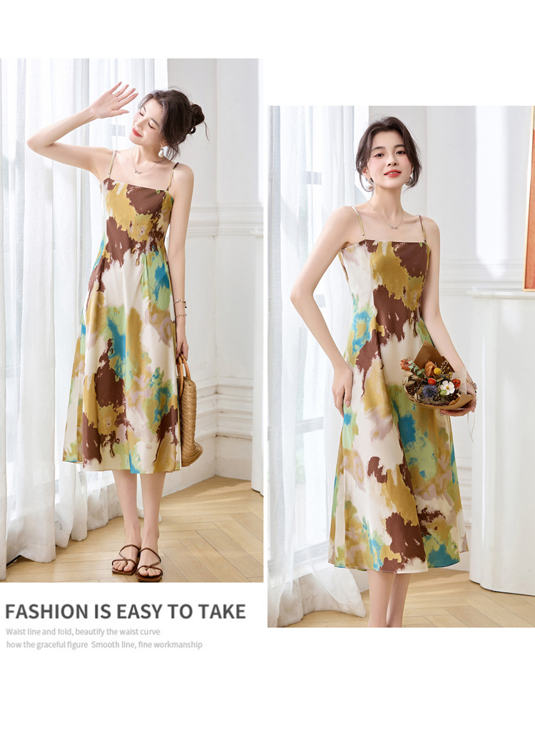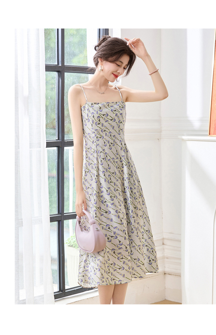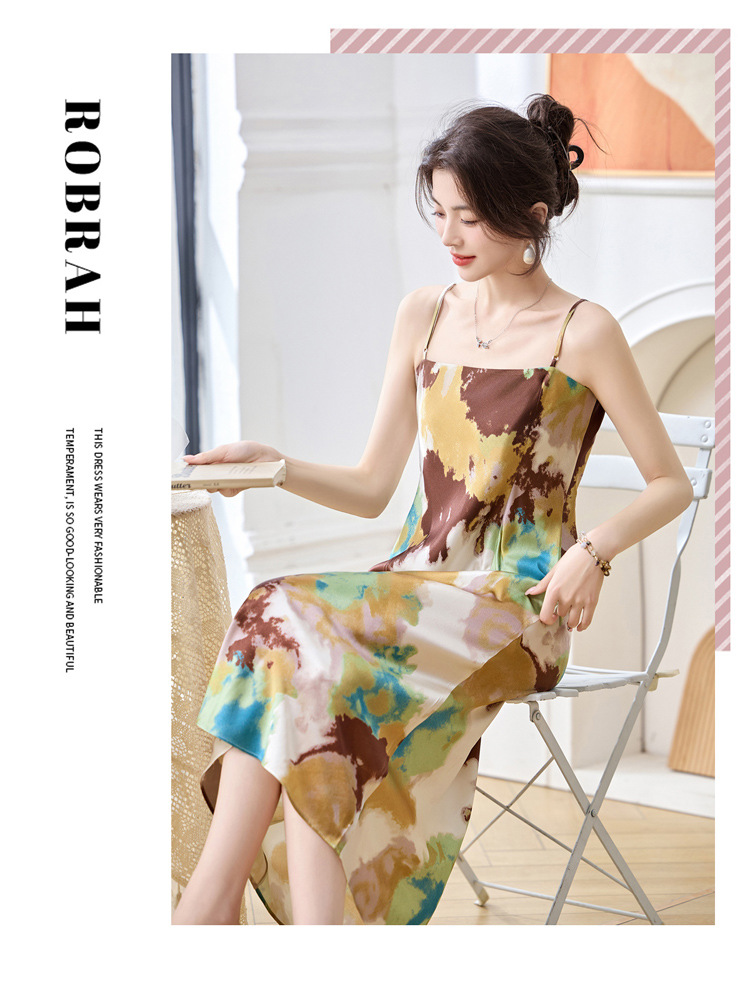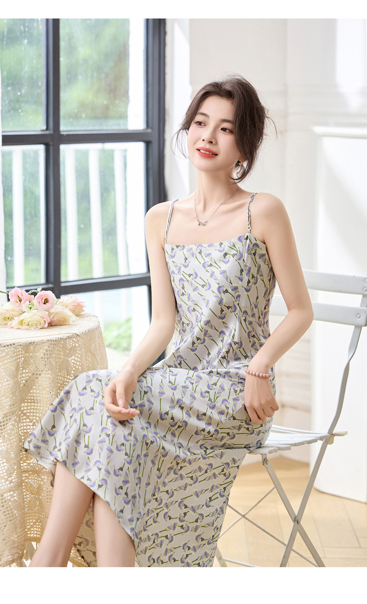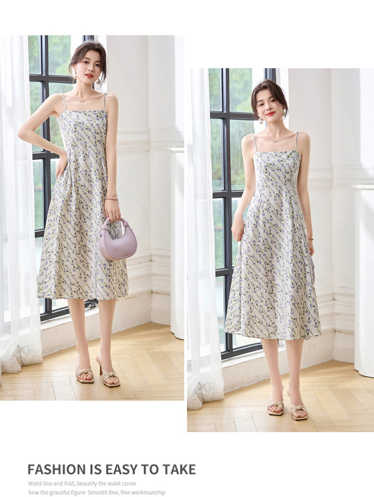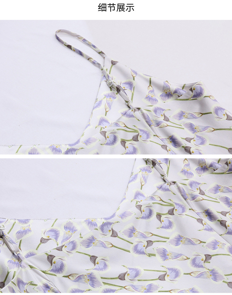 ASE2025夏季新款时尚立体花朵印花吊带桑蚕丝连衣裙小清新法式显瘦裙