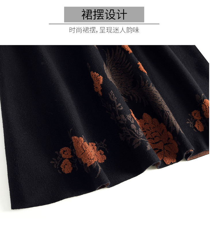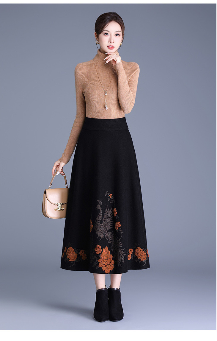 垂坠感针织印花大摆裙,松紧腰通勤高腰A字裙MYX-LXWT-5827-L