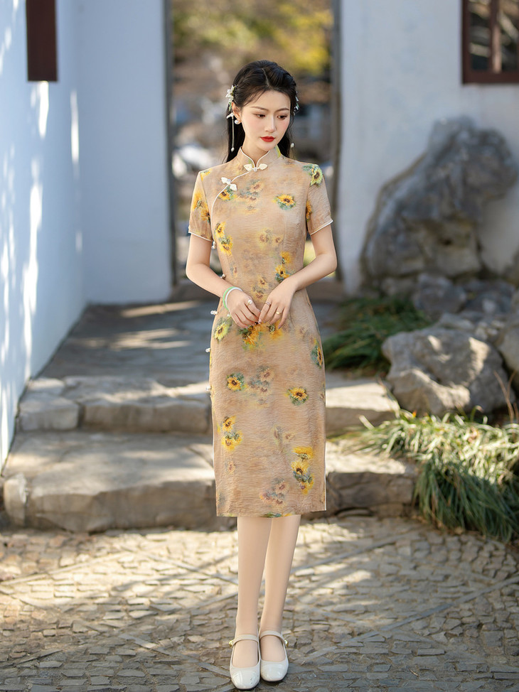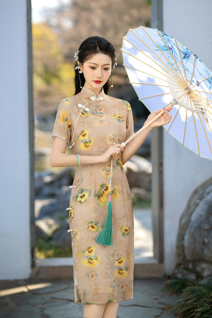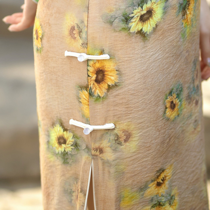 天丝麻年轻款日常复古文艺淑女改良旗袍ZA211