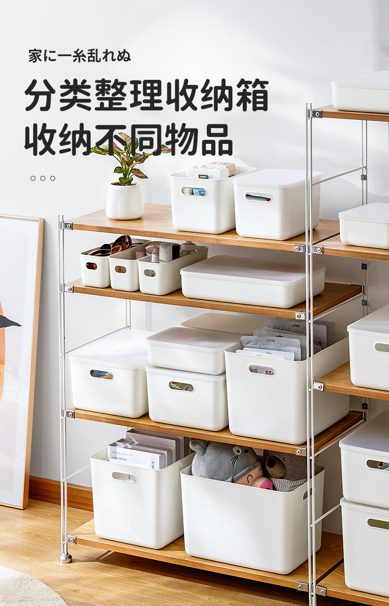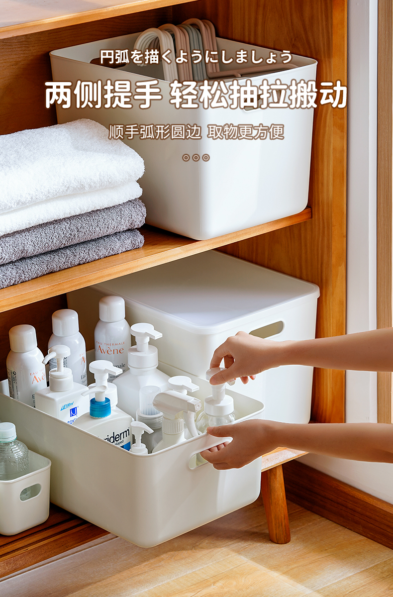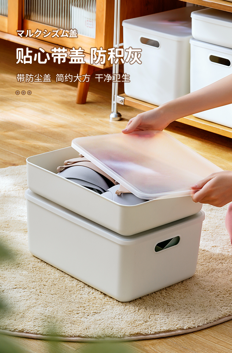 日式手提式储物带盖收纳盒