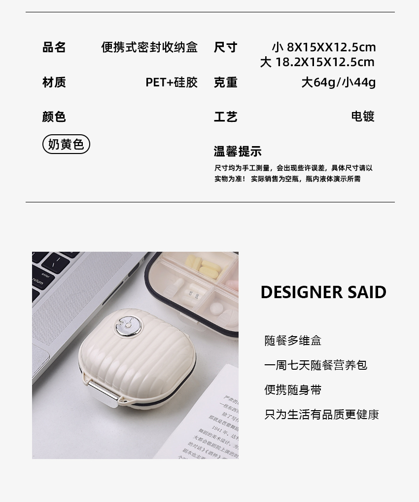 便携式分格收纳盒(药盒)