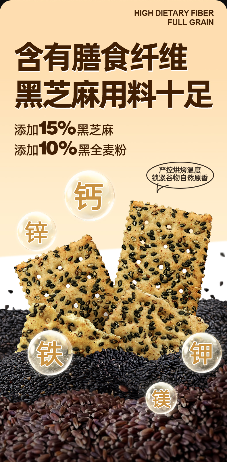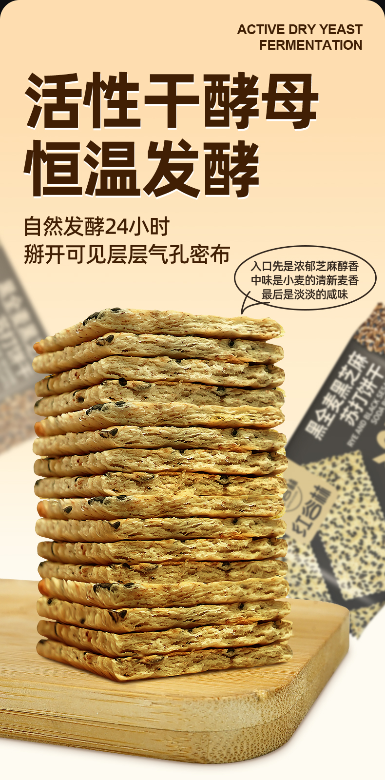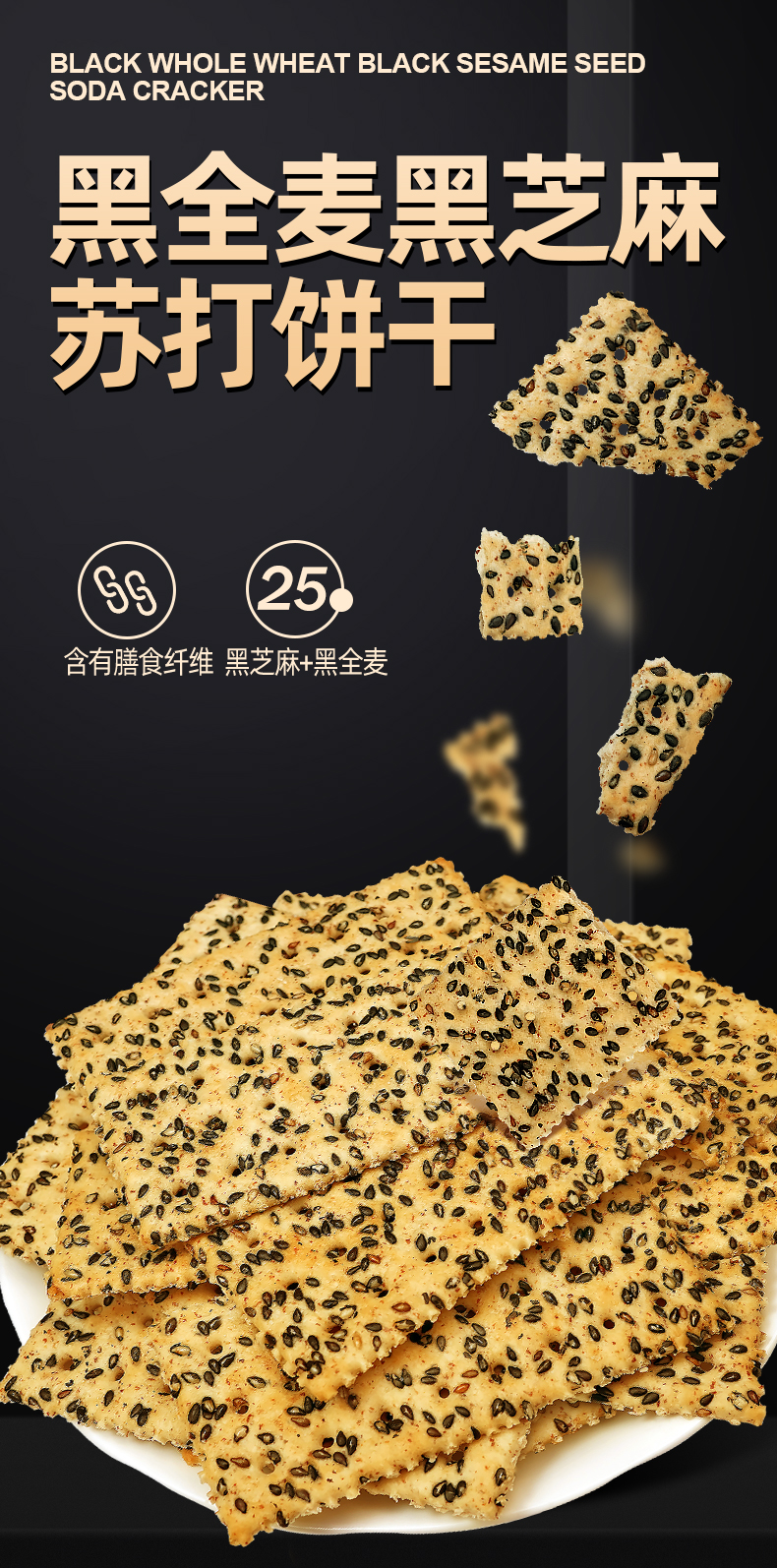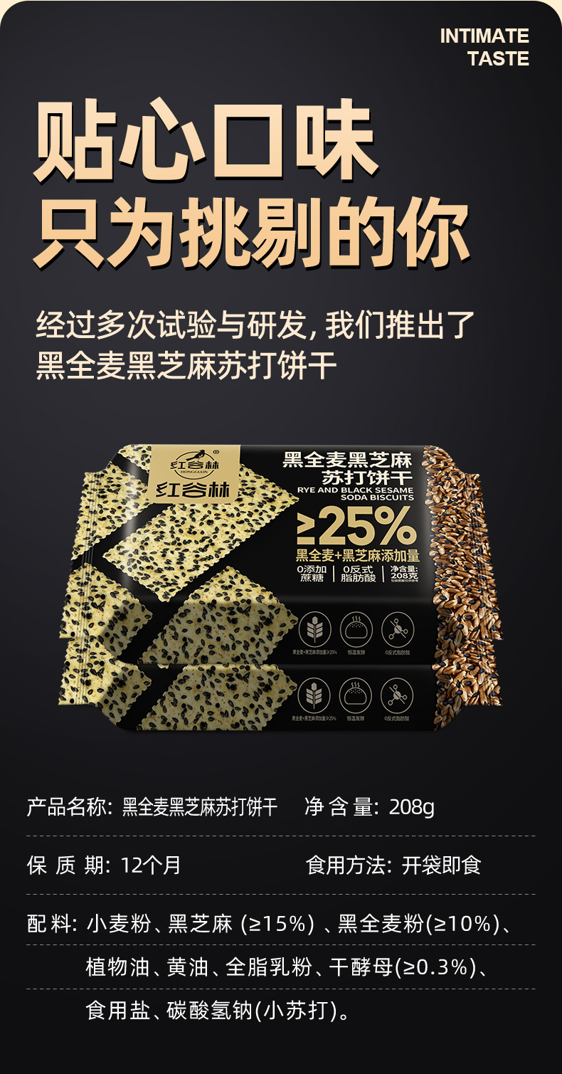 红谷林黑全麦黑芝麻苏打饼干208g碱性饼干咸味零食小吃休闲小零食