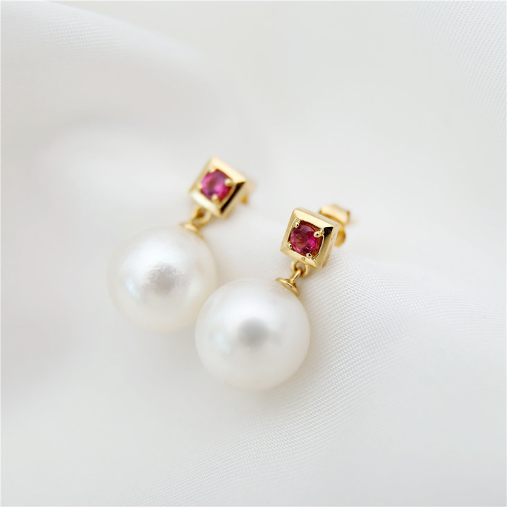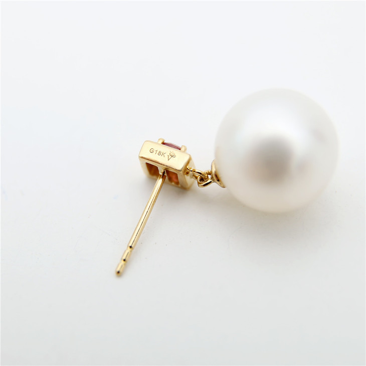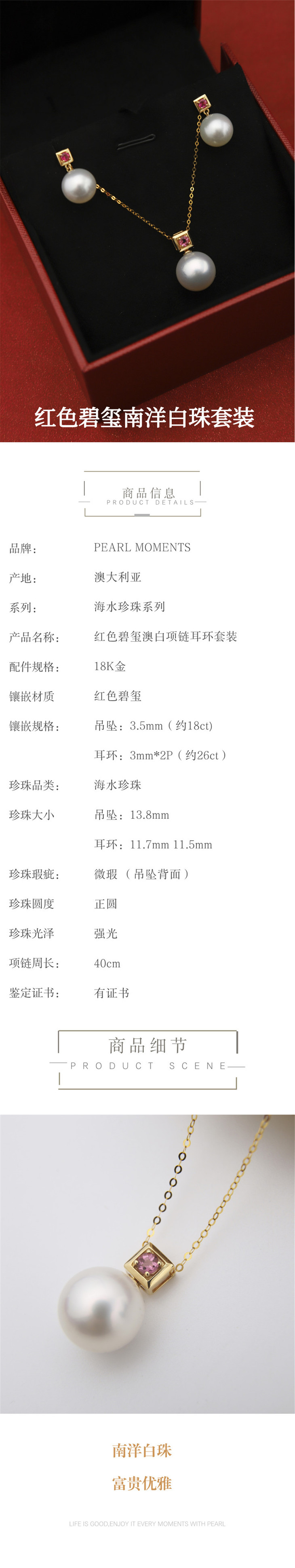 红色碧玺 南洋白珠项链耳环套装