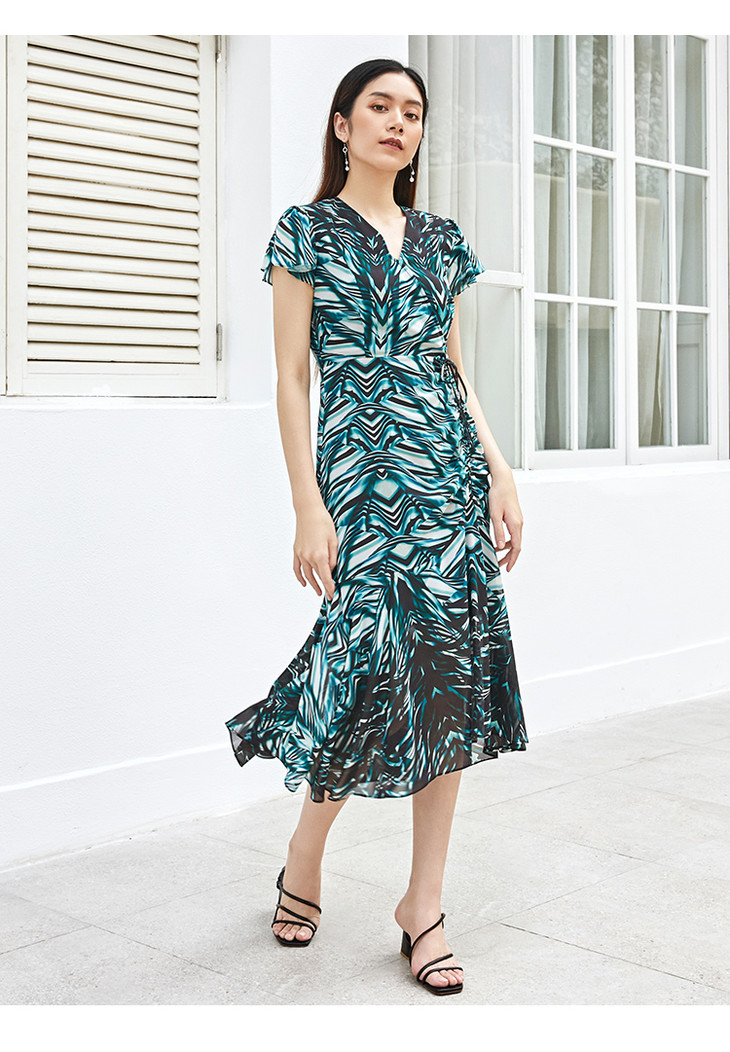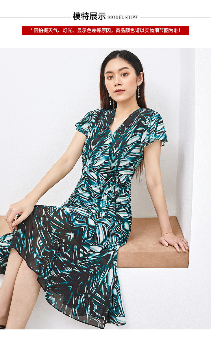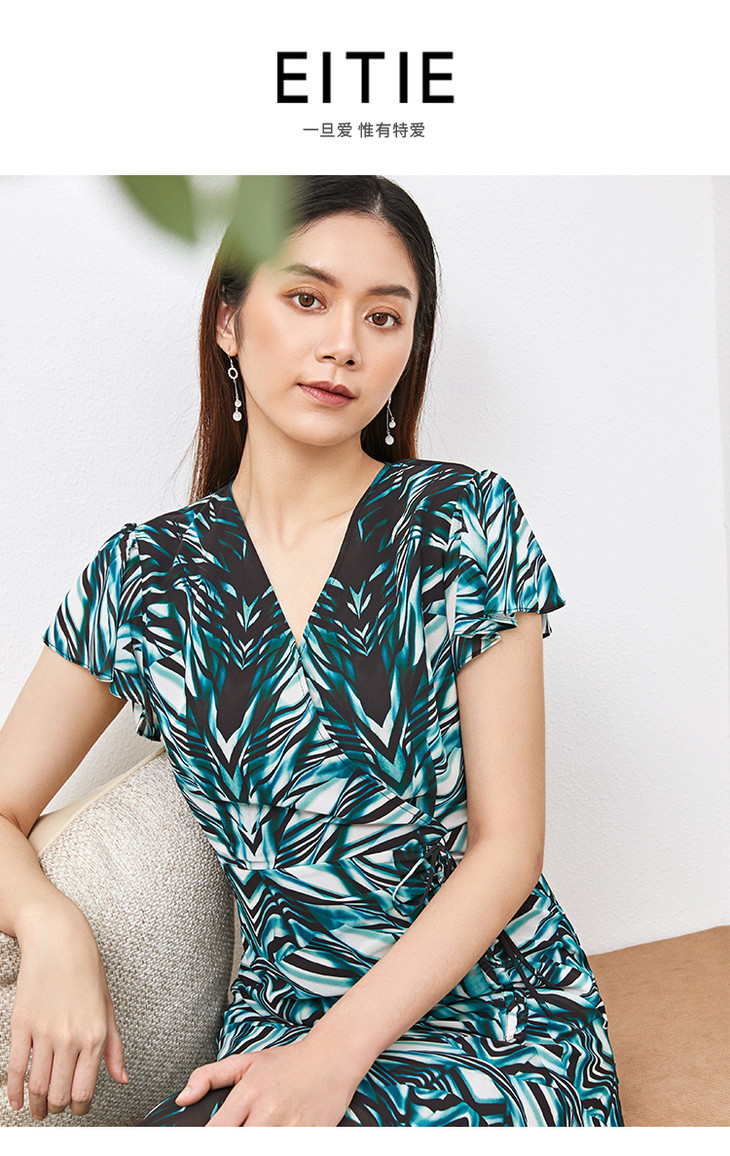 EITIE爱特爱品牌女装春季新款时尚修身高腰圆领连衣裙中裙A1907039