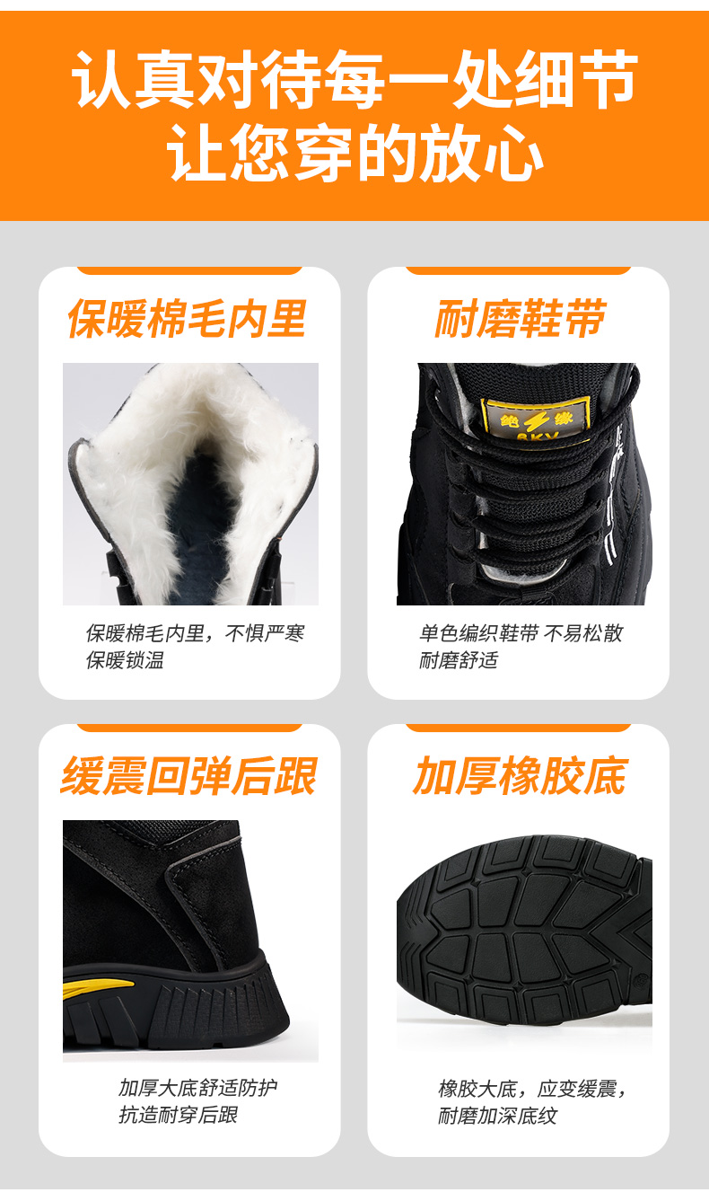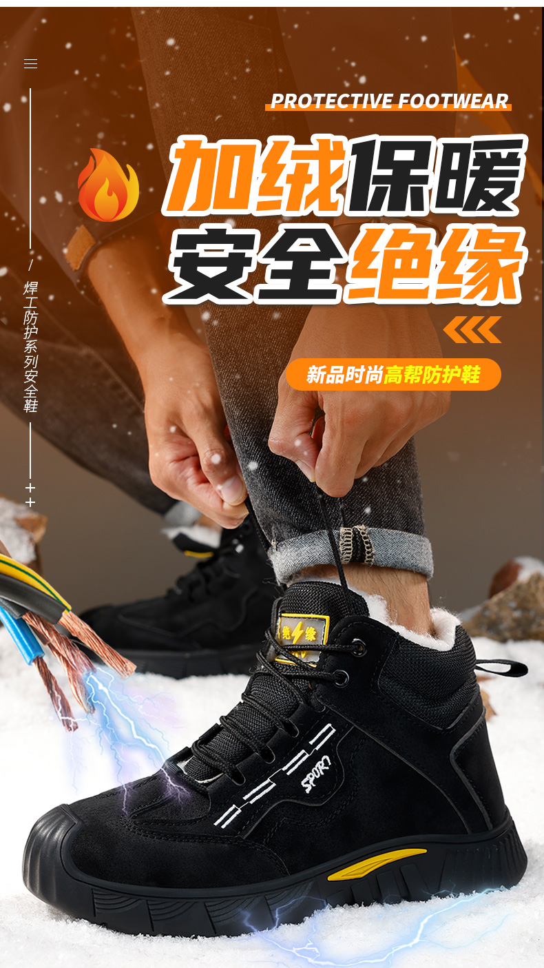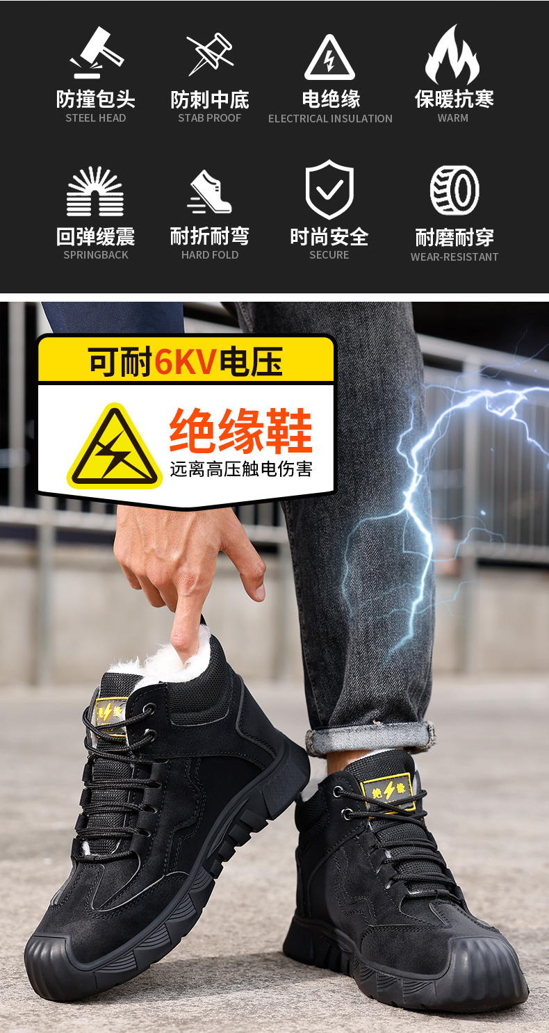 劳保鞋男防砸防刺绝缘塑包头6KV保暖加绒冬季防水安全鞋
