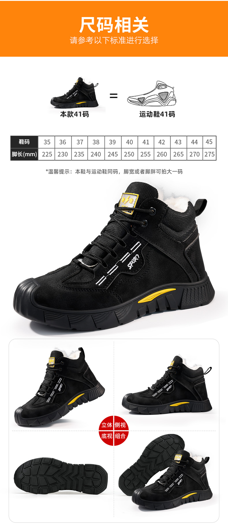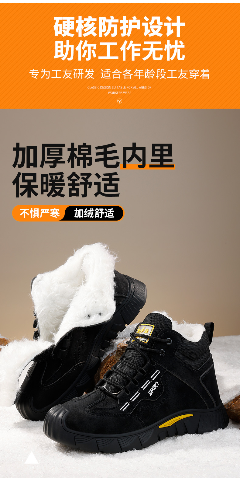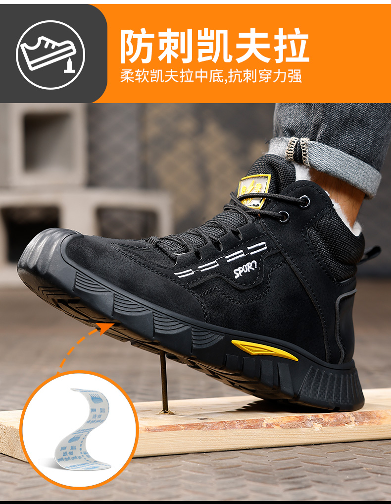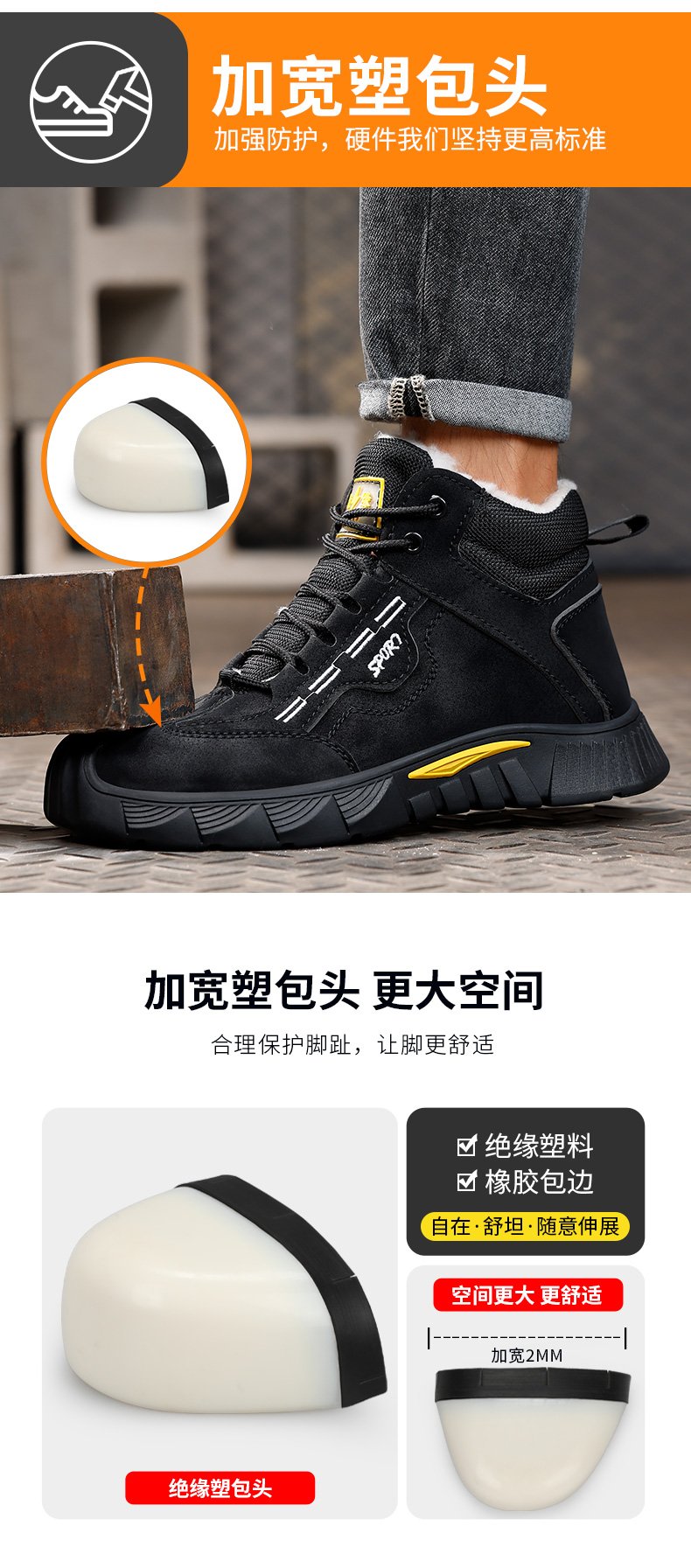 劳保鞋男防砸防刺绝缘塑包头6KV保暖加绒冬季防水安全鞋